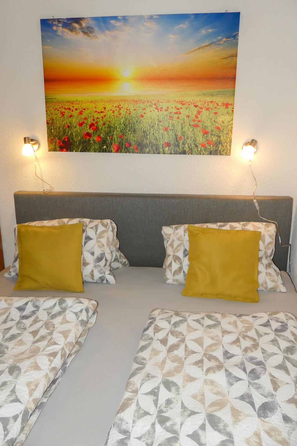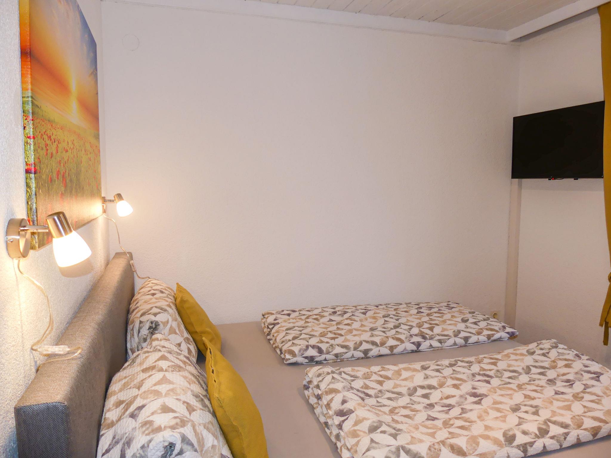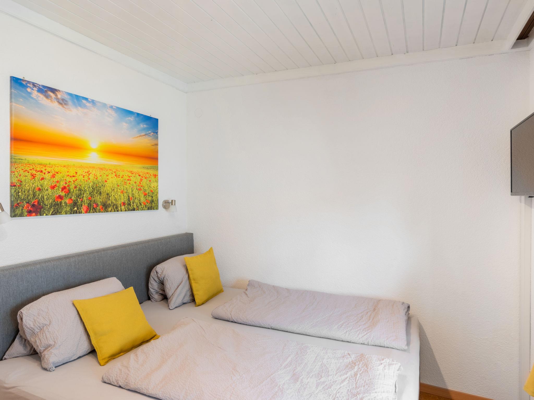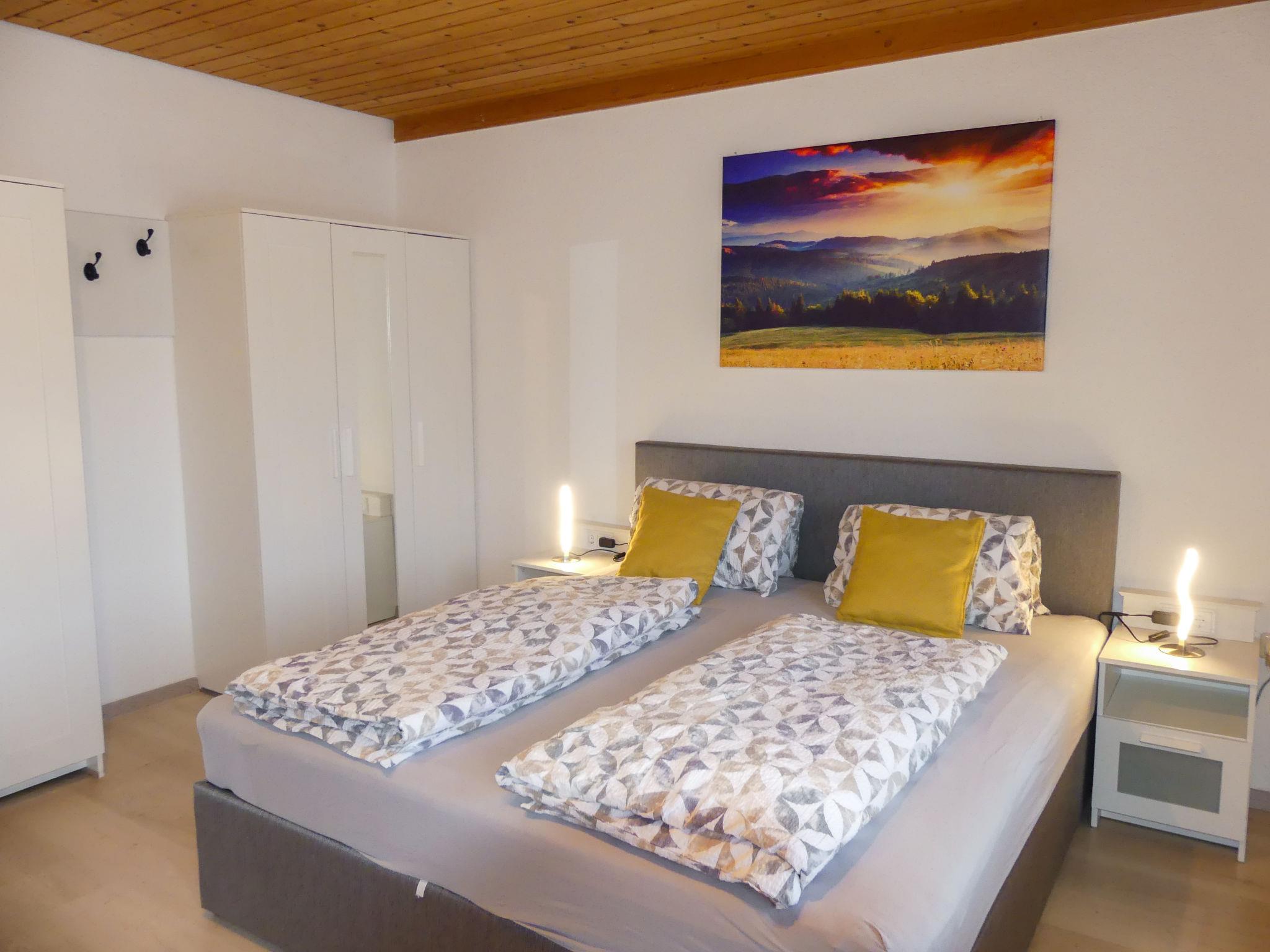 3-room house 90 m2 on 2 levels. Spacious and bright, cosy furnishings: entrance hall. Living/sleeping room with 1 double sofabed, cable TV and flat screen. Kitchen (oven, dishwasher, 4 ceramic glass hob hotplates, toaster, kettle, microwave, freezer, electric coffee machine) with dining nook and TV. Bathroom, shower, sep. WC. Upper floor: 1 double bedroom with satellite TV. 1 room with 1 bed and 1 double bed. Sep. WC. Wooden floors. Balcony 4 m2, large terrace 25 m2. Terrace furniture. Beautiful view of the countryside. Facilities: safe, baby cot for up to 2 year olds, hair dryer. Internet (WiFi, free). Please note: non-smokers only. Maximum 1 pet/ dog allowed. Smoke alarm, fire extinguisher. 50619-006039-2021