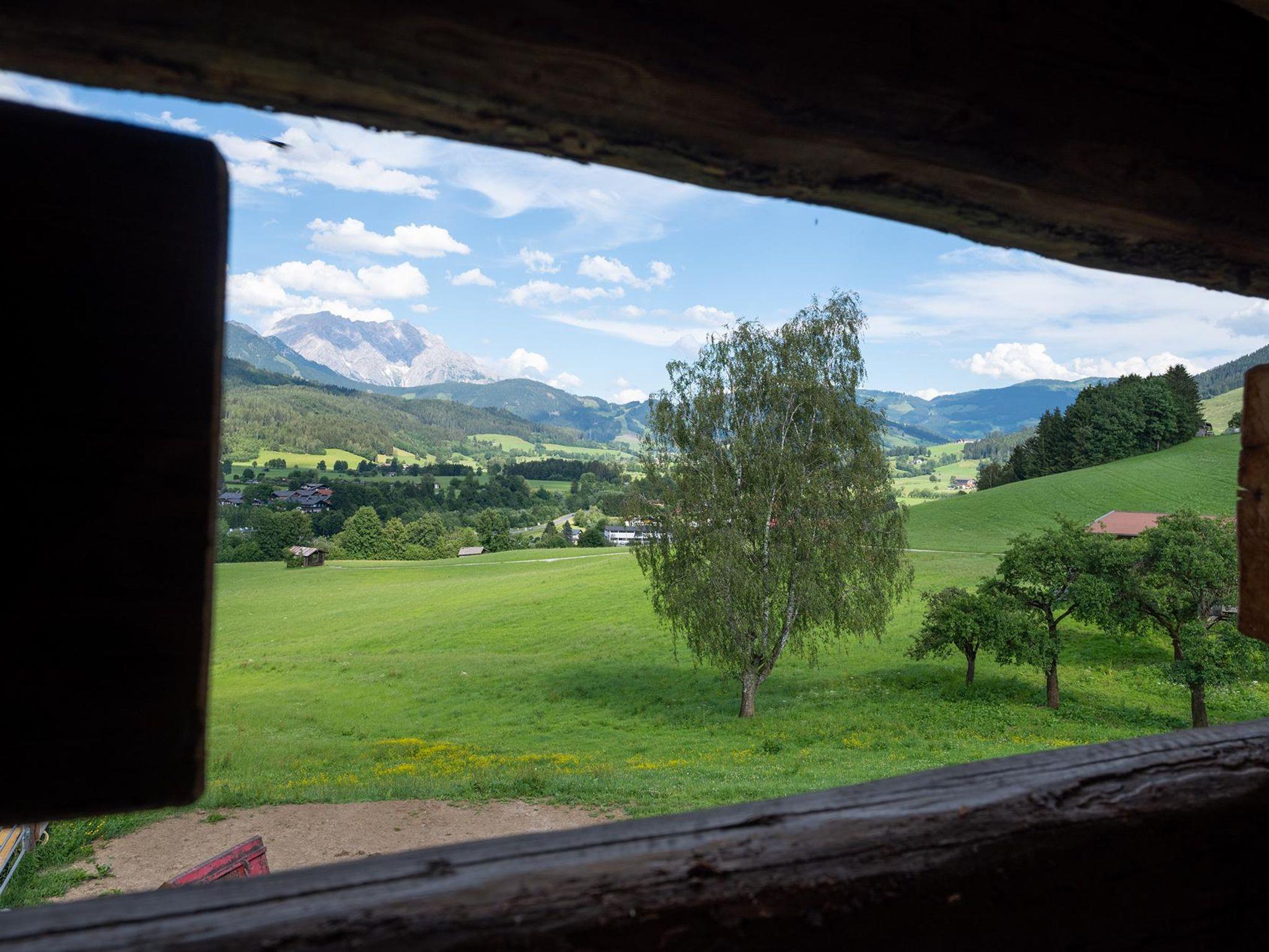 Er befindet sich auf einem der schönsten Plätze in Saalfelden: auf einem kleinen Plateau nur ein paar Gehminuten vom Stadtzentrum entfernt. Zu Füßen des Hofes liegen Wiesen und der Ritzensee. Der Ausblick auf die Gebirgszüge der Leoganger und Loferer Steinberge und das Steinerne Meer ist einfach atemberaubend!