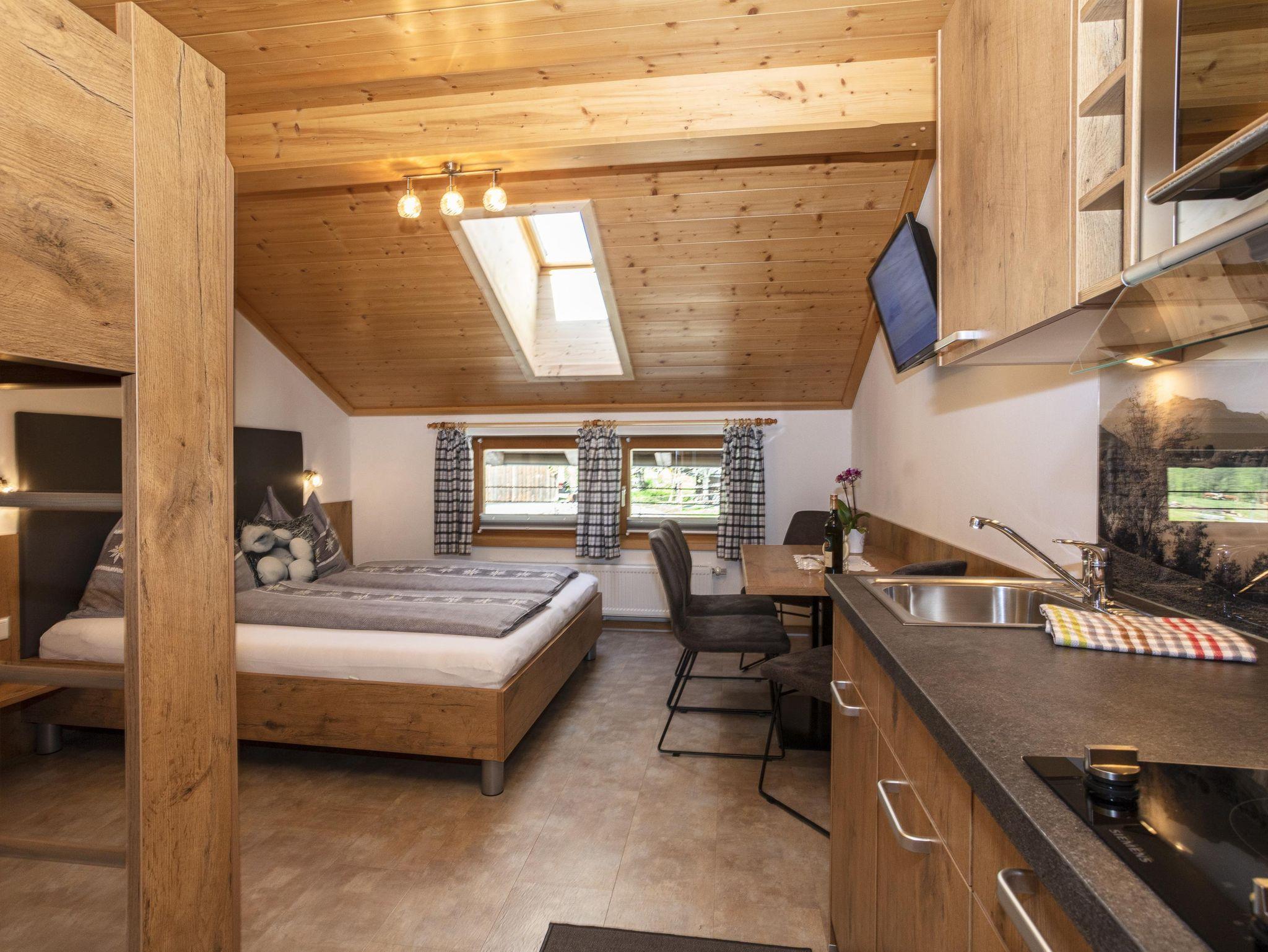 Das ideale Urlaubszuhause für Pärchen und kleine Familien Das Studio Krokus ist liebevoll eingerichtet und verfügt über allen Komfort zum Wohlfühlen. Das Zimmer ist ausgestattet mit einem Doppelbett, einem Hochbett, einem Sitzbereich, einer gut ausgestatteten Küchenzeile und einem Badezimmer mit Dusche/ WC.