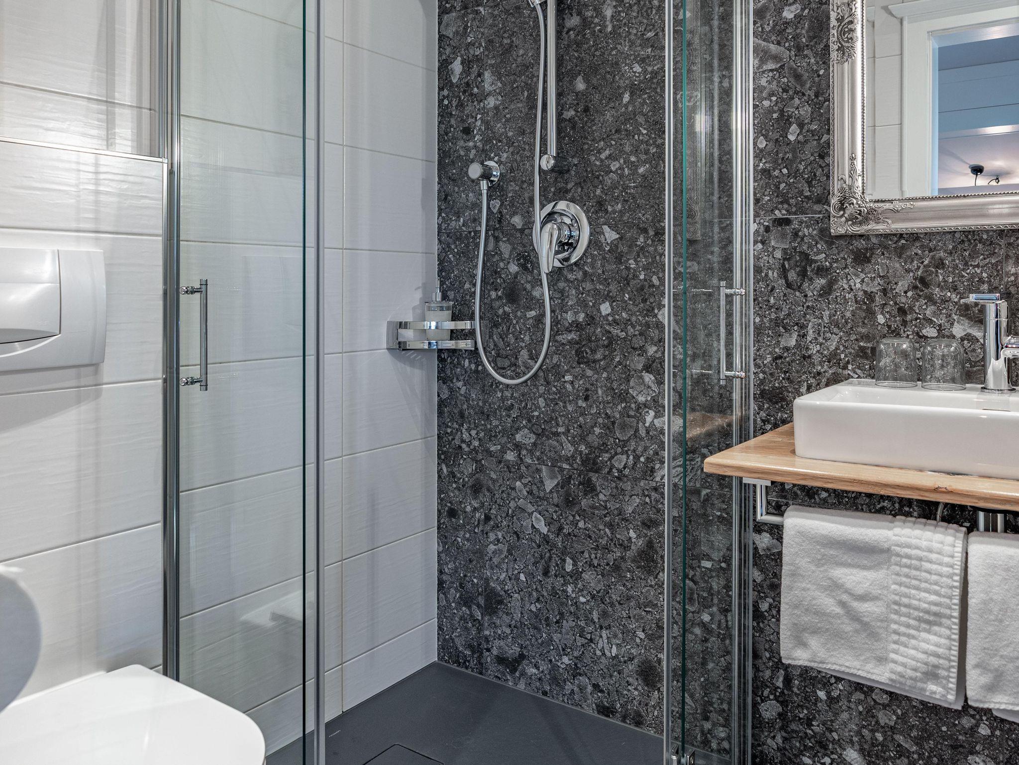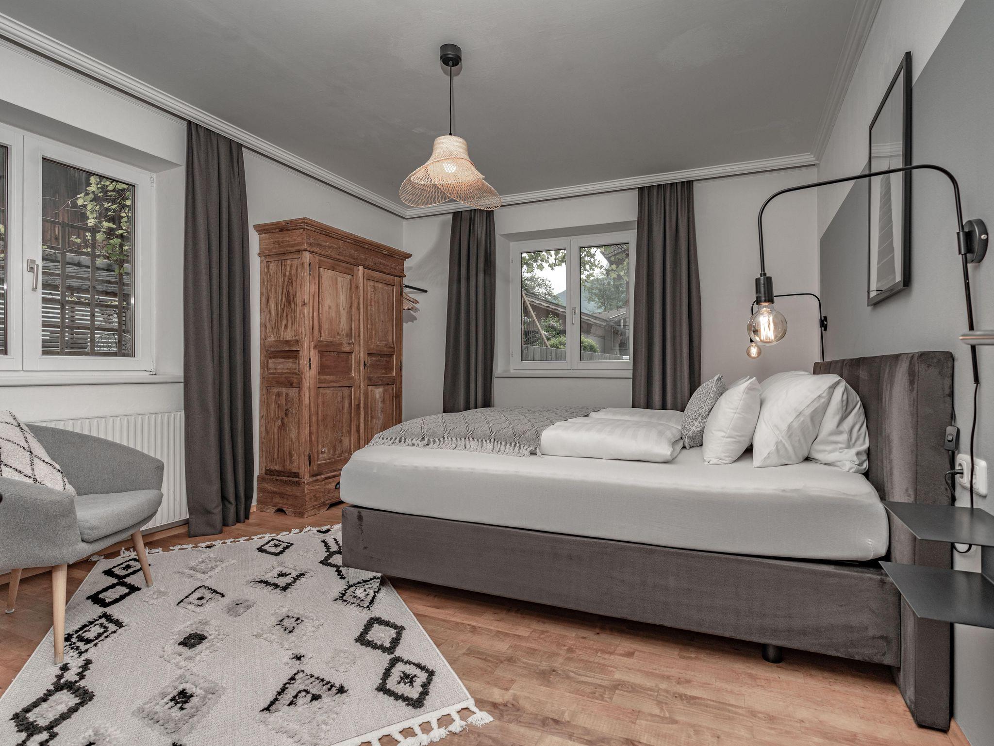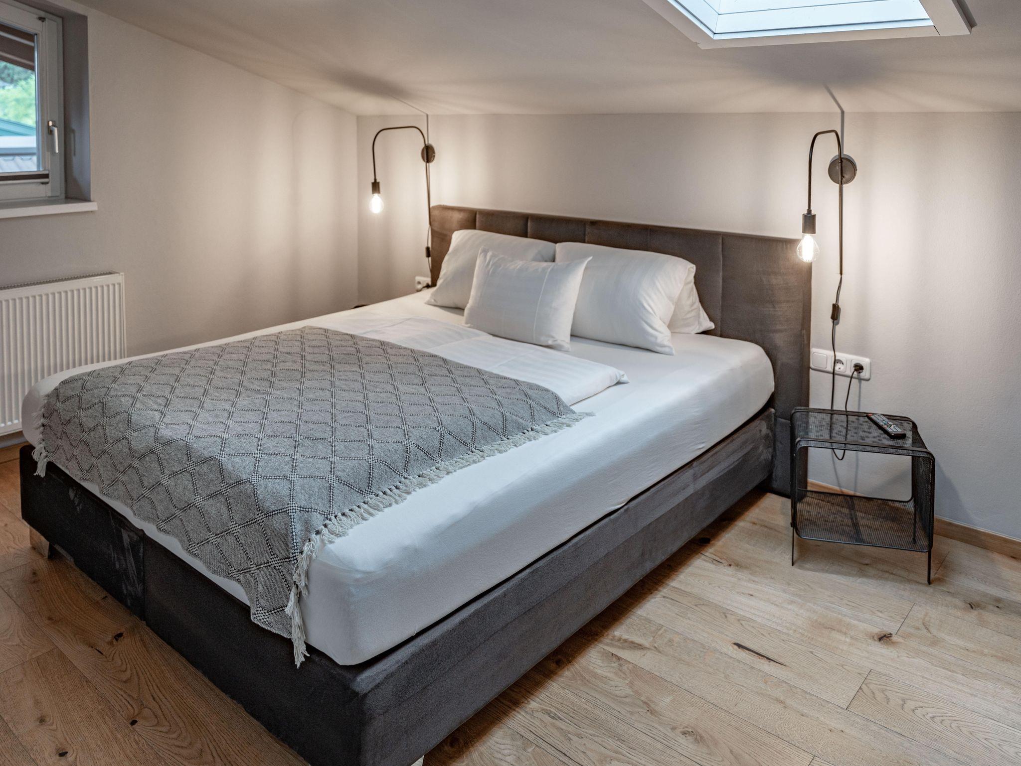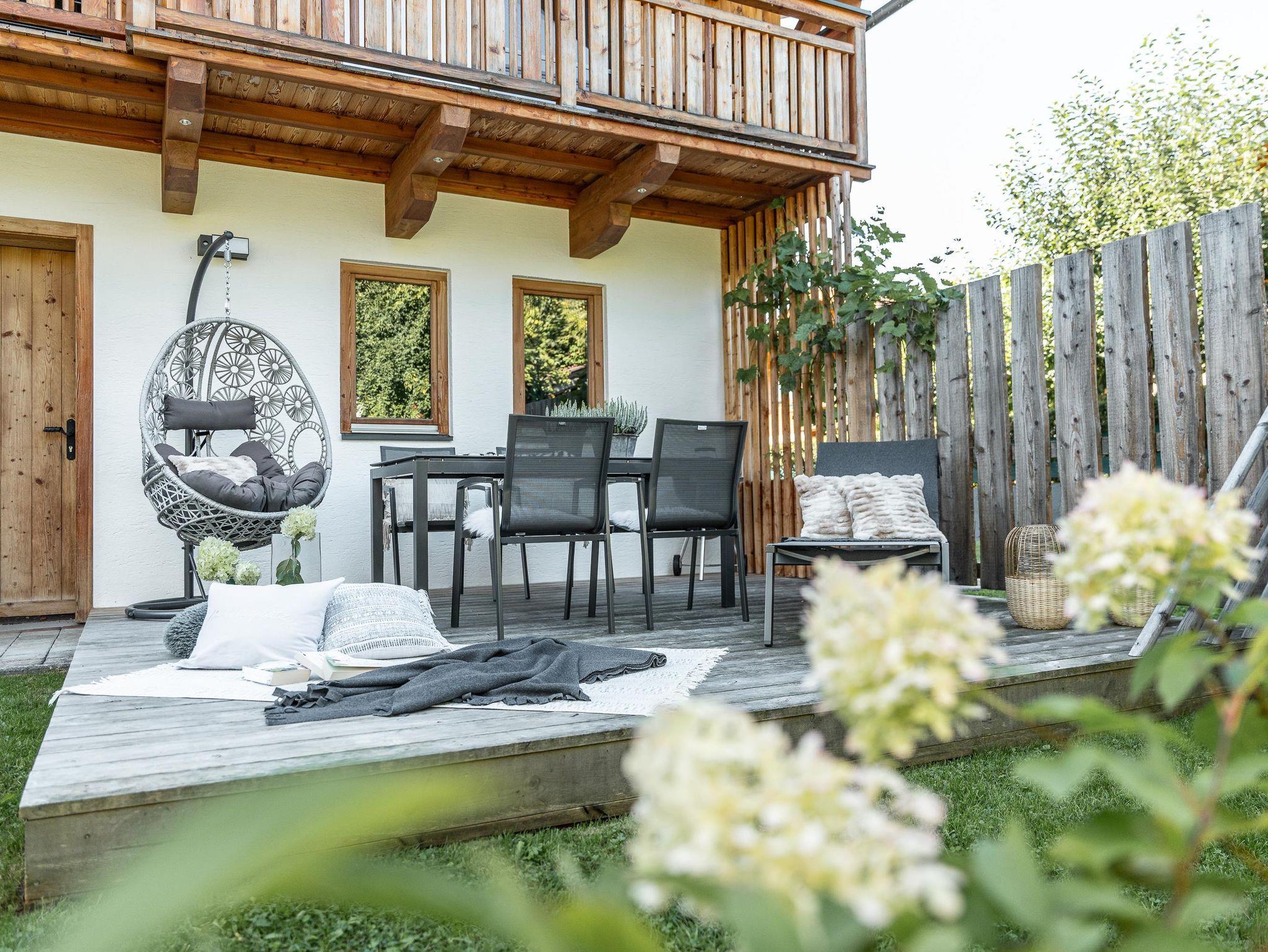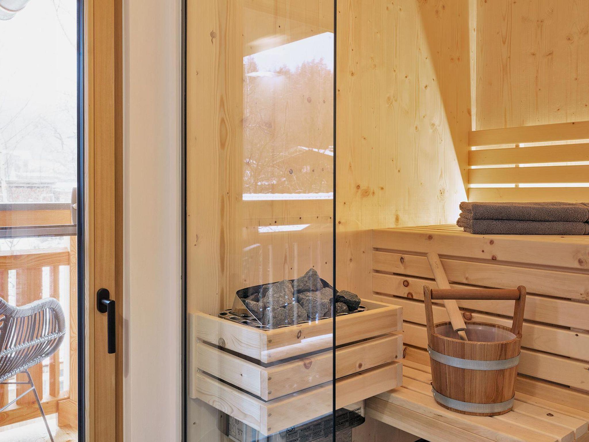 Das Appartement 2 begeistert kleine Familien genauso wie Pärchen, die den Luxus von viel Platz und einer eigenen Sauna schätzen. Der Balkon gibt den Blick in drei Himmelsrichtungen frei und lässt dich in den dazugehörigen Garten gelangen. Damit fühlt sich hier auch der Familienhund pudelwohl.