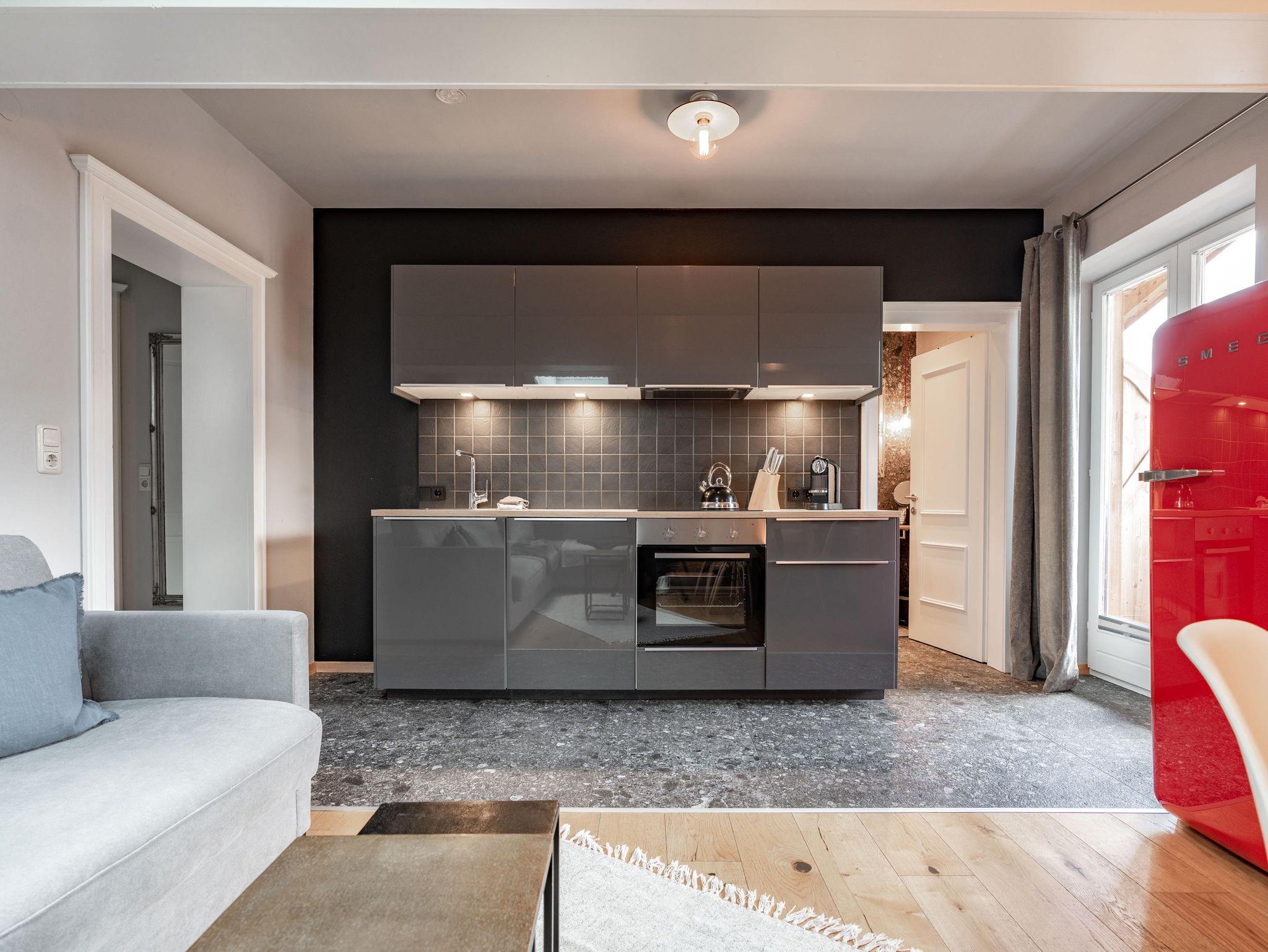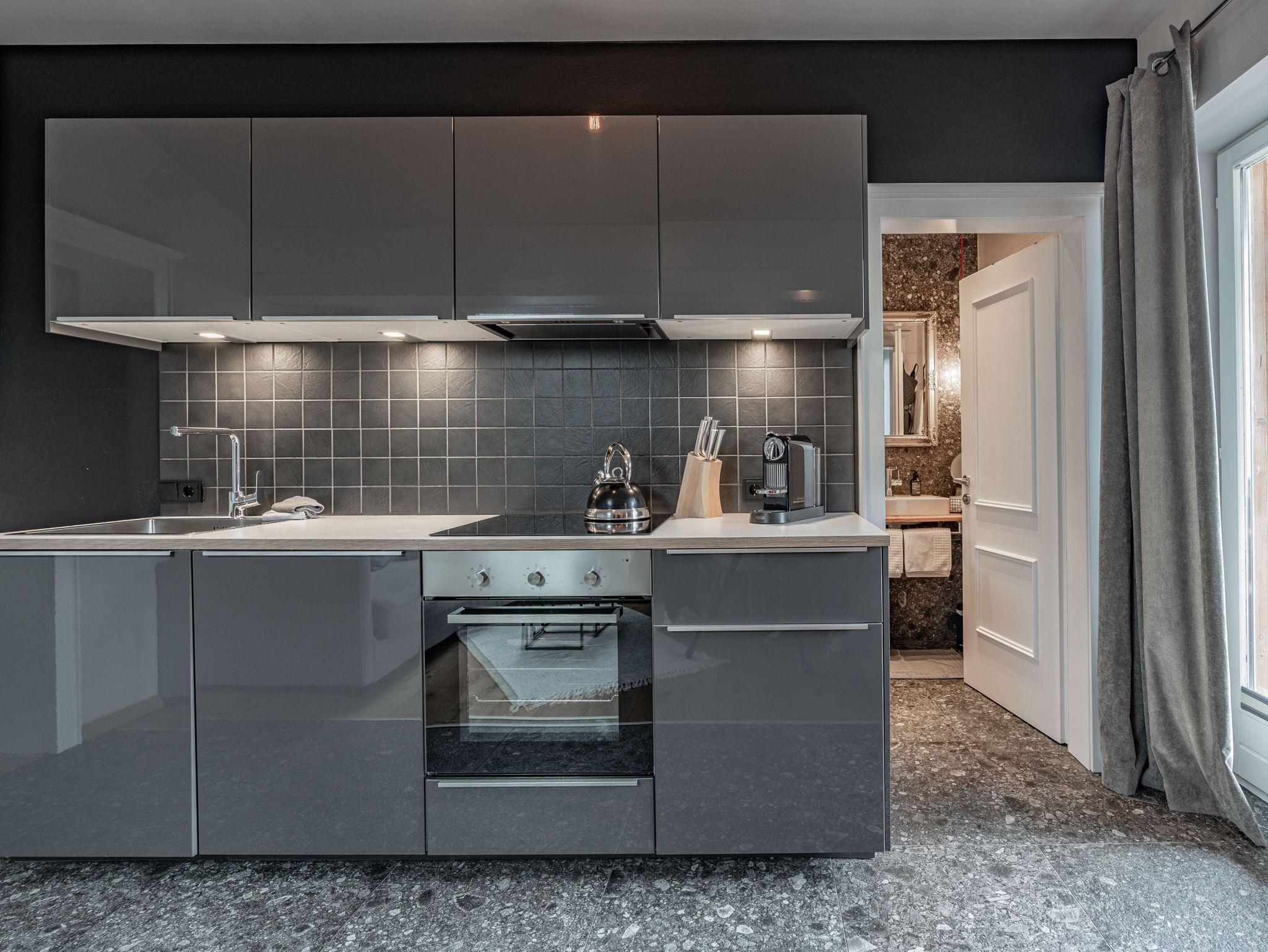 • voll ausgestattete Küche mit Geschirrspüler, E-Herd, Backofen, Toaster, Nespresso-Kaffeemaschine