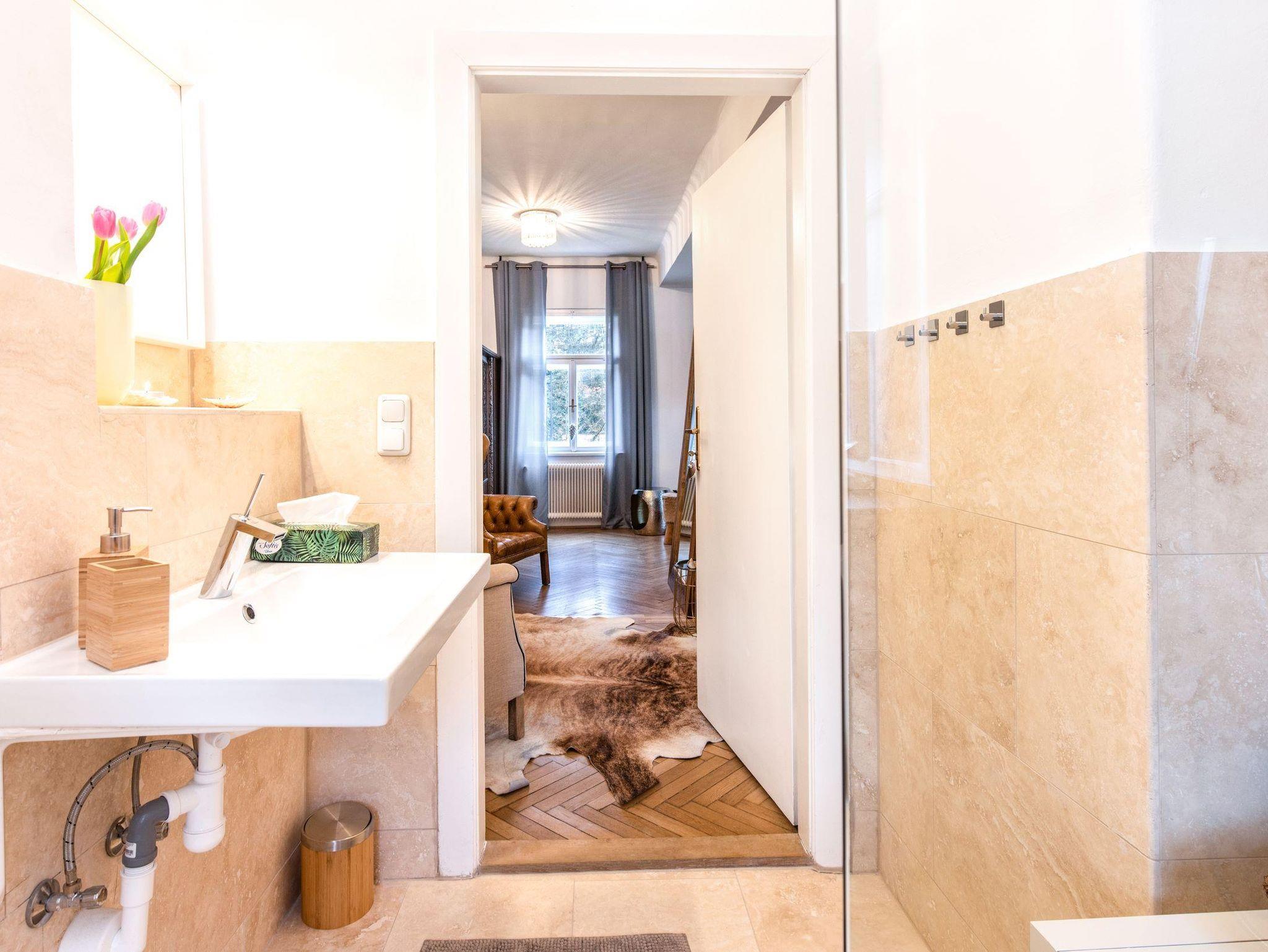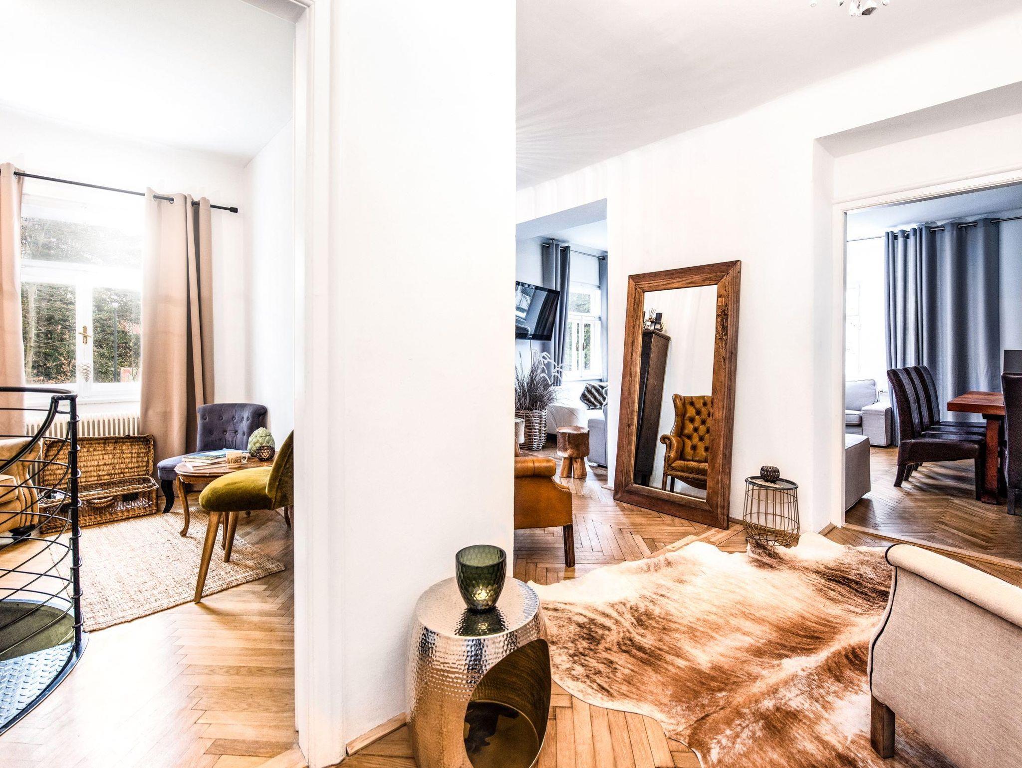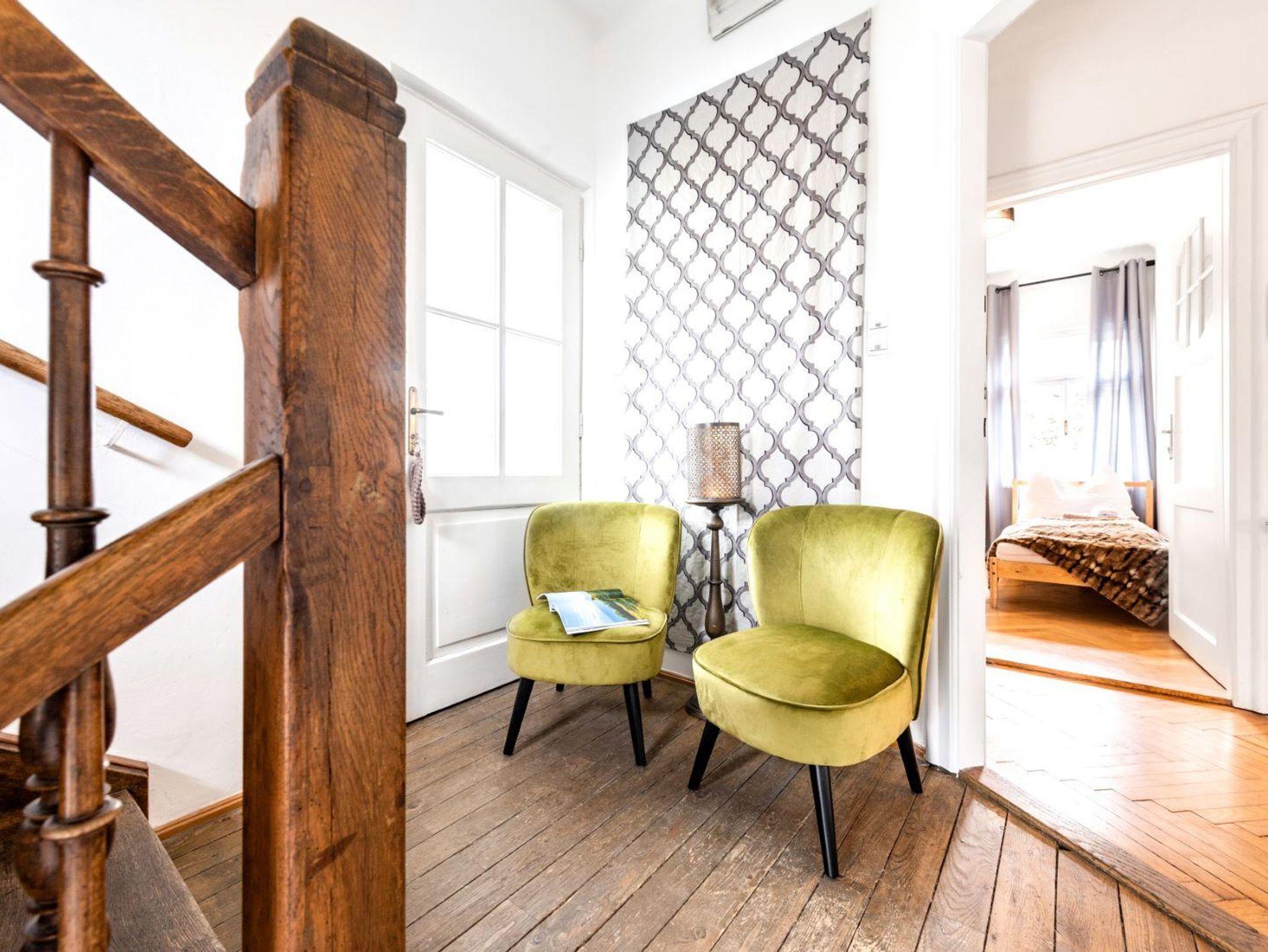 Insgesamt verfügt das Haus über 6-7 Schlafzimmer, zwei kleine gemütliche Stadtbalkone und bietet Deiner Familie und Deinen Freunden reichlich Platz. Vier Bäder mit teils Badewanne oder Dusche bieten Zeit für Romantik oder Entspannung. Außerdem bedeuten vier Toiletten im Haus auch genug stille Orte für Ruhe und Privatsphäre.