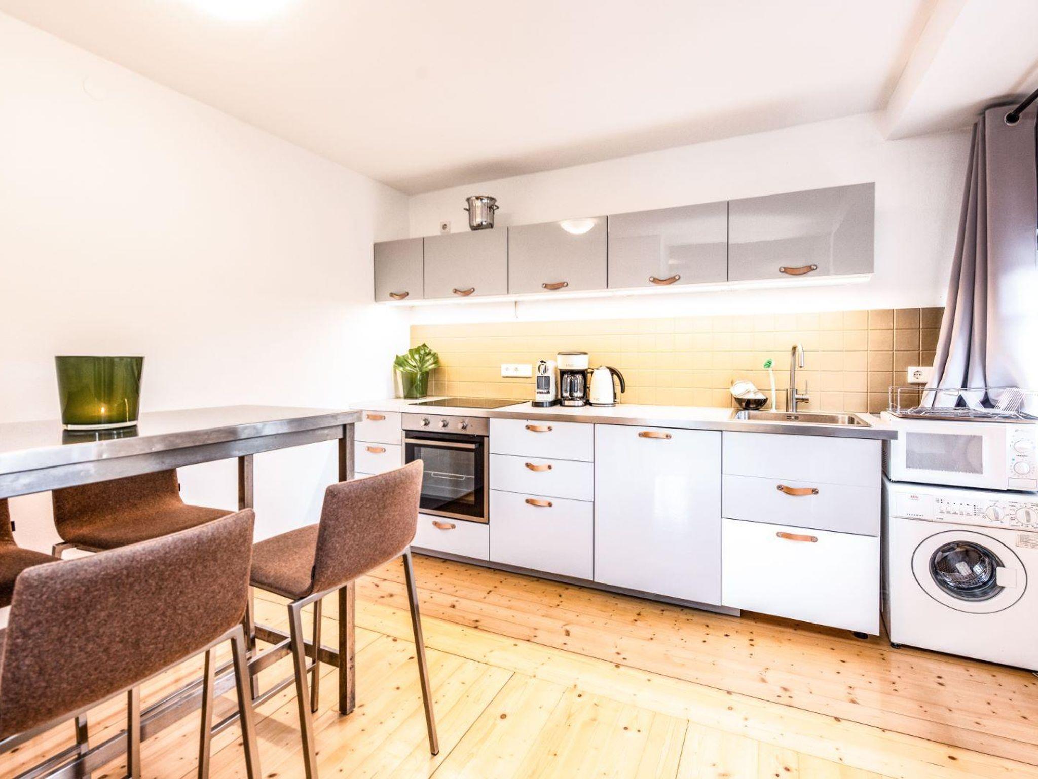 Manchmal will man morgens, vor dem ersten Kaffee nicht weit gehen, deshalb haben wir uns gedacht eine zweite Küche passt hervorragend in die dritte Etage. Neben zwei weiteren Schlafzimmern habt Ihr hier einen eleganten kleinen Essbereich und auch ein gemütliches Wohnzimmer mit Flat TV. Im Badezimmer findest Du eine Badewanne, Dusche und Toilette. Am dazugehörigen kleinen Balkon schmeckt das Frühstück in der Sonne gleich doppelt so lecker mit Aussicht auf unsere imposante Salzburger Burg.