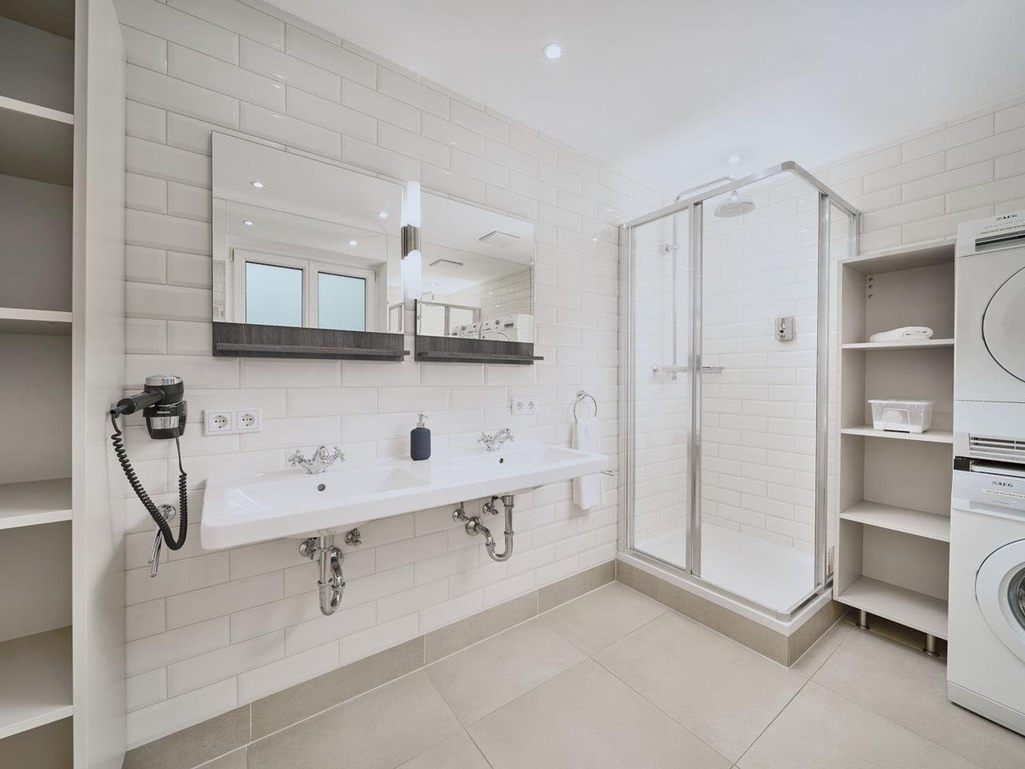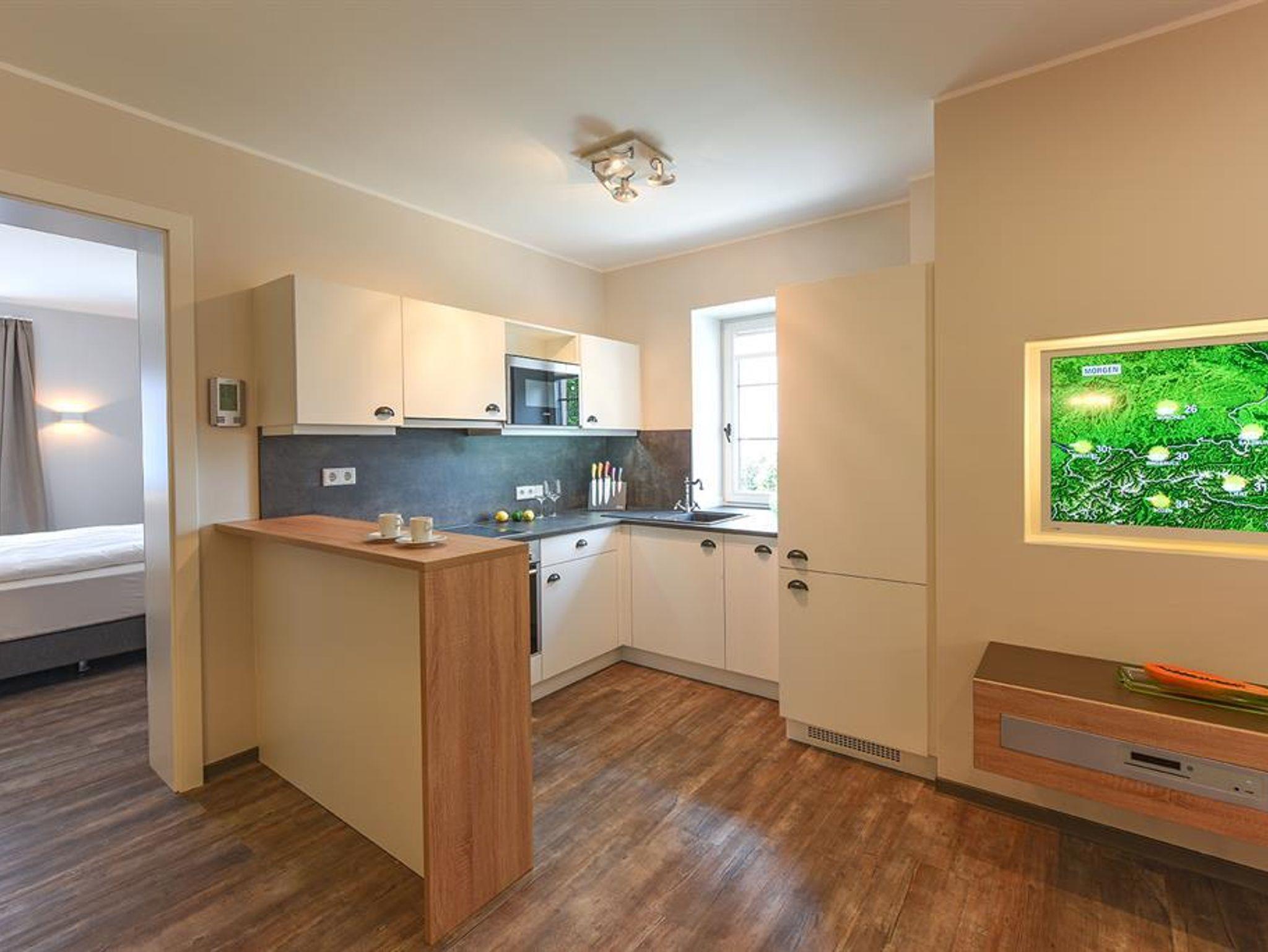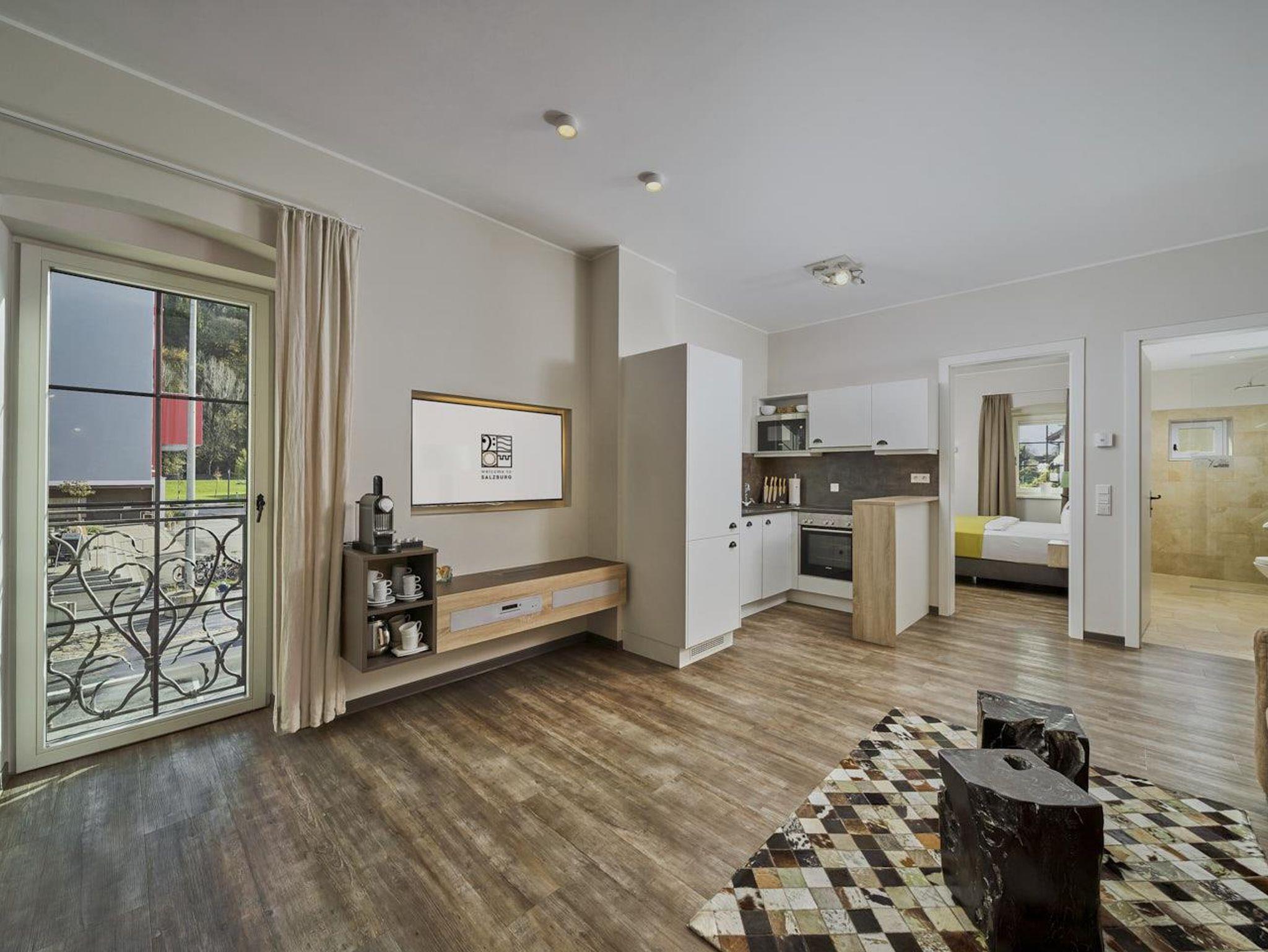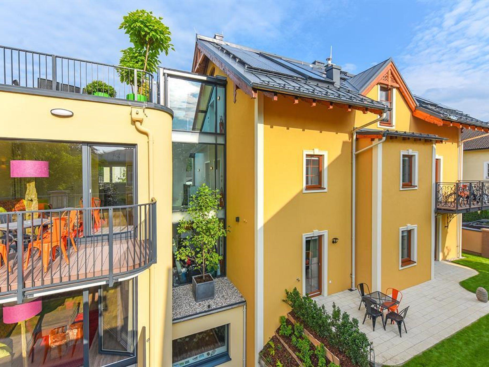 Ferienwohnung Mirabell Auf ca. 50 m² bietet die Ferienwohnung Mirabell ein ganz besonders elegantes Wohnerlebnis. Die Wohnung befindet sich im neu renovierten Altbau der Villa und ist mit edlen Möbeln und exklusiven Materialien eingerichtet. In der Ferienwohnung finden Sie eine geräumige und gemütliche Wohnküche, sowie ein Schlafzimmer mit Doppelbett und ein Badezimmer mit Dusche, WC und Pissoir. Für eine zusätzliche Person kann die hochwertige, ausziehbare Hotelcouch im Wohnzimmer zu einem Zusatzbett umgebaut werden. Das hat die Ferienwohnung zu bieten ca. 50 m² für 2-4 Personen 1 Schlafzimmer mit Luxus-Boxspring-Doppelbetten gemütliche Wohnküche mit hochwertiger, ausziehbarer Hotelcouch für 2 Personen Entertainmentcenter mit HIFI-Anlage und DVD & Blu-ray Player UHD Flat TV im internationalen Sendern über Satellit (Astra) komplett ausgestattete Küche Badezimmer mit Dusche, WC mit Pissoir, Haarfön, zuschaltbare Infrarotheizung und Handtüchern Safe teilweise Gartenzugang oder Terrasse Benützung der allgemein zugänglichen, sonnigen 70 m² großen Dachterrasse mit Liegestühlen und Lounge-Möbeln kostenloses W-Lan kostenloser Parkplatz Die Küchenausstattung im Detail WMF Töpfe Berndorf Besteck Design Porzellan Nespresso Kaffeemaschine Melitta Toaster, Kaffeemaschine, Stabmixer und Wasserkocher Siemens Küchengeräte - wie beispielsweise Herd, Geschirrspüler, Mikrowelle, Hochkühlschrank mit Tiefkühlfach etc. Babystuhl und Flaschenwärmer