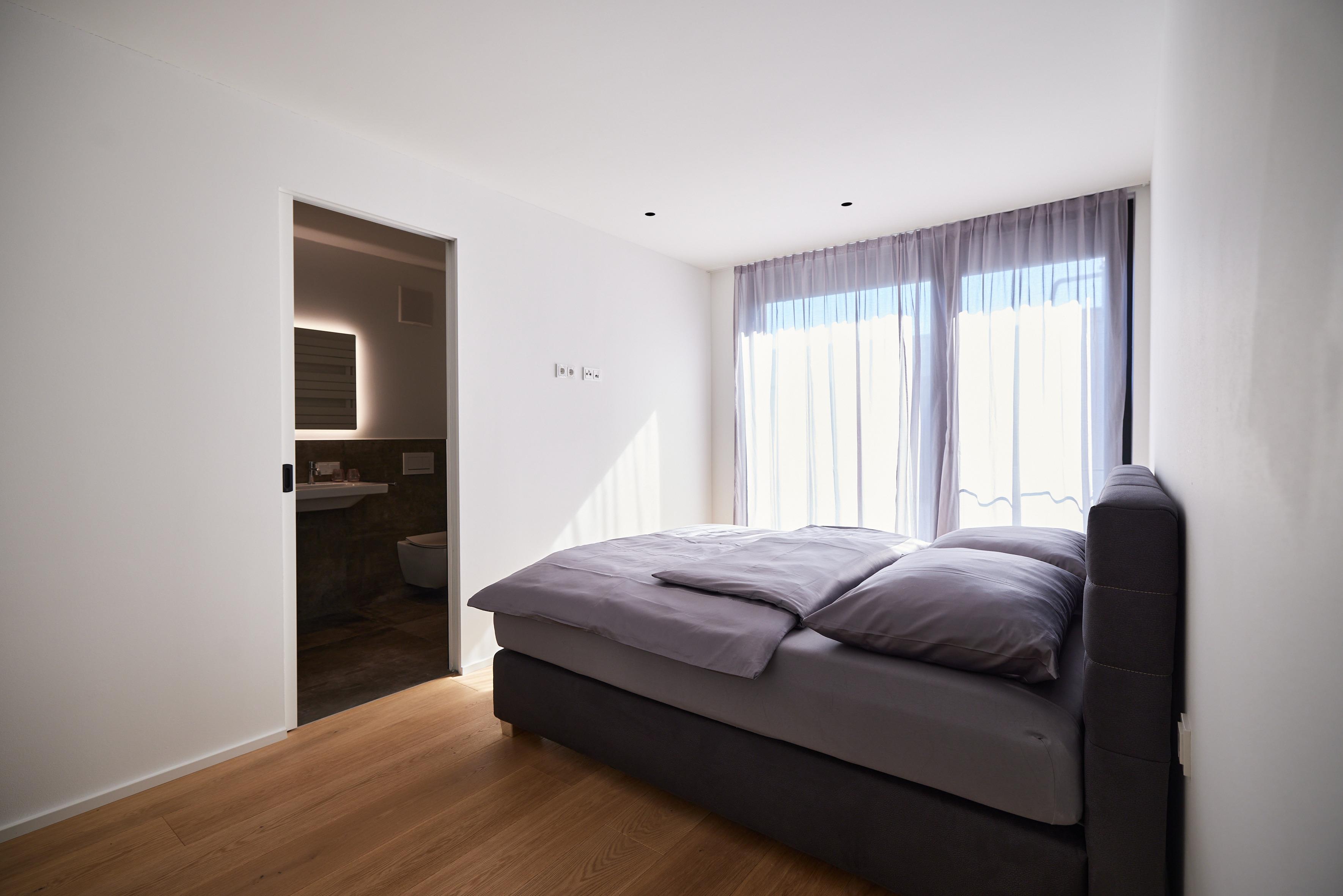 Mit drei Schlafzimmern, ausgestattet mit gemütlichen Boxspringbetten, bieten das Apartment Platz für bis zu 6 Personen. Ein Kinderbett kann auf Wunsch beigestellt werden. Weiters stehen Ihnen zwei Badezimmer mit einer Badewanne oder einer Regendusche sowie ein separates WC zur Verfügung.