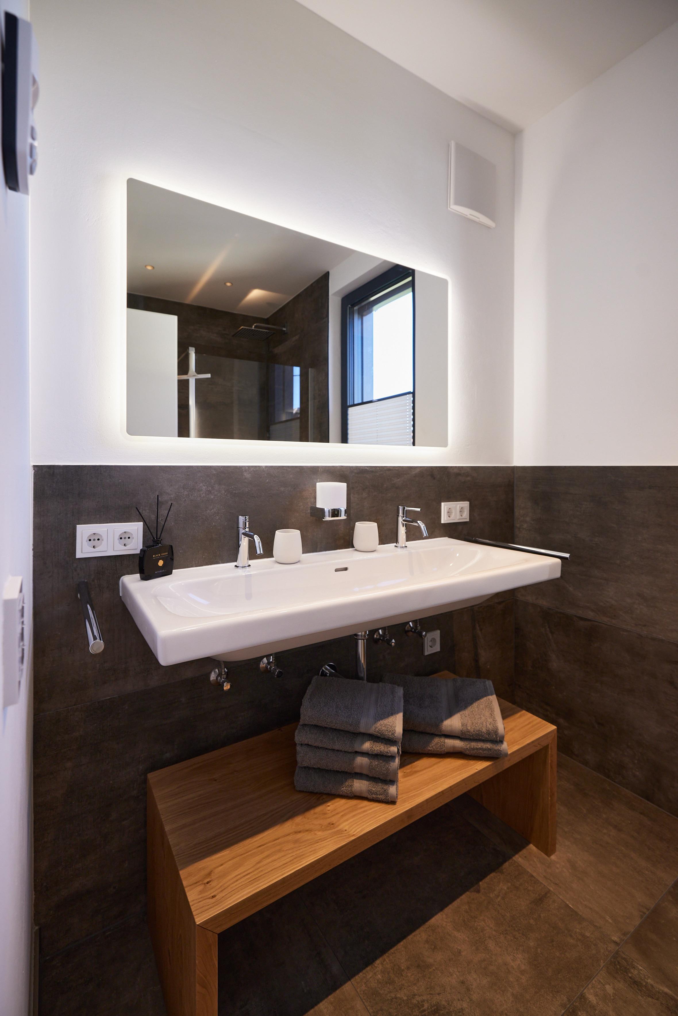 1 Badezimmer mit Doppelwaschtisch und Walk in Dusche/Regendusche