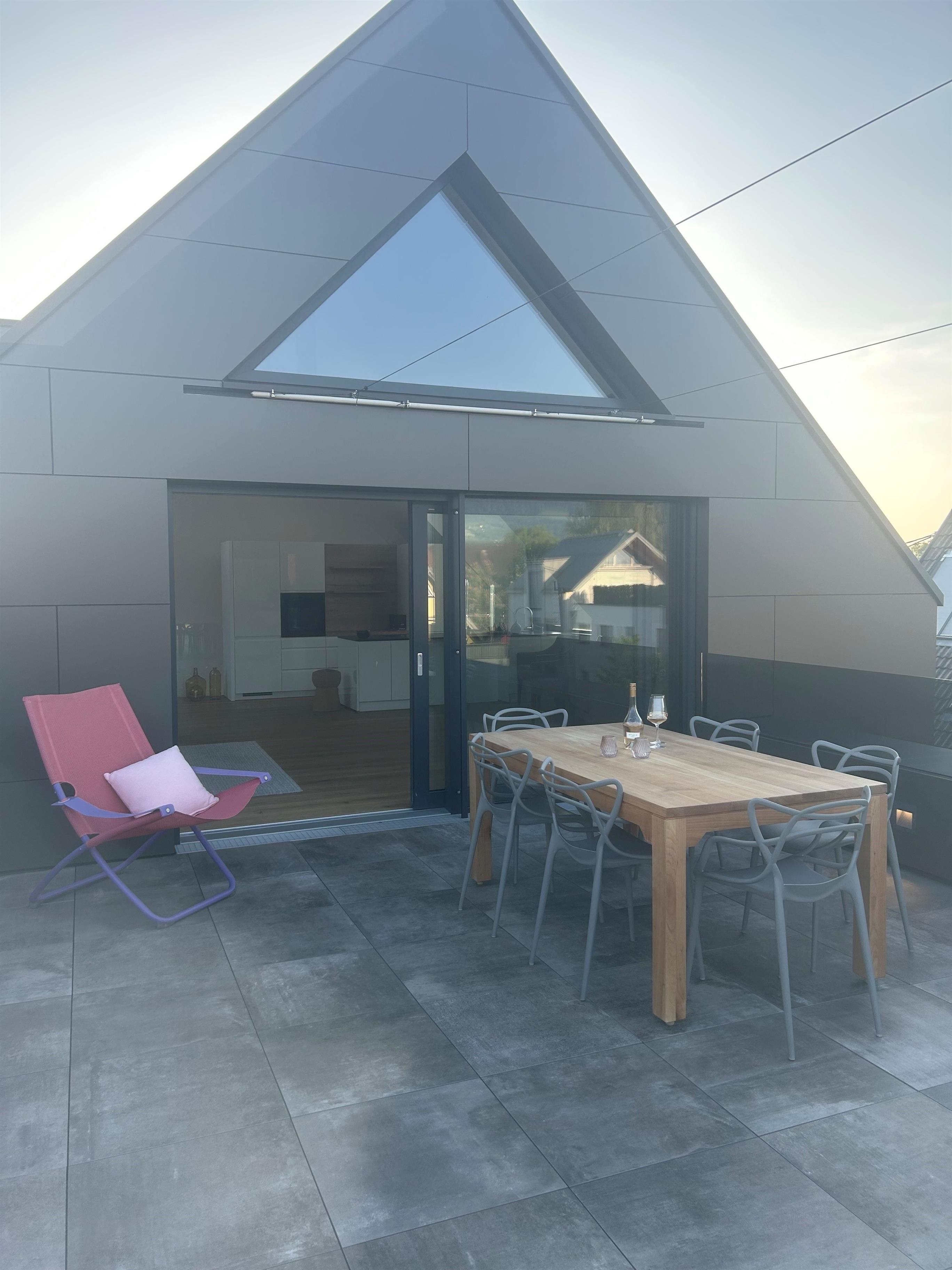 Die große Panoramaterrasse lädt dazu ein, die Schönheit von Salzburg zu genießen, während Sie in privater Atmosphäre entspannen. Ob Sie den Sonnenuntergang beobachten oder einfach den Ausblick genießen möchten, die Terrasse bietet den idealen Raum dafür.