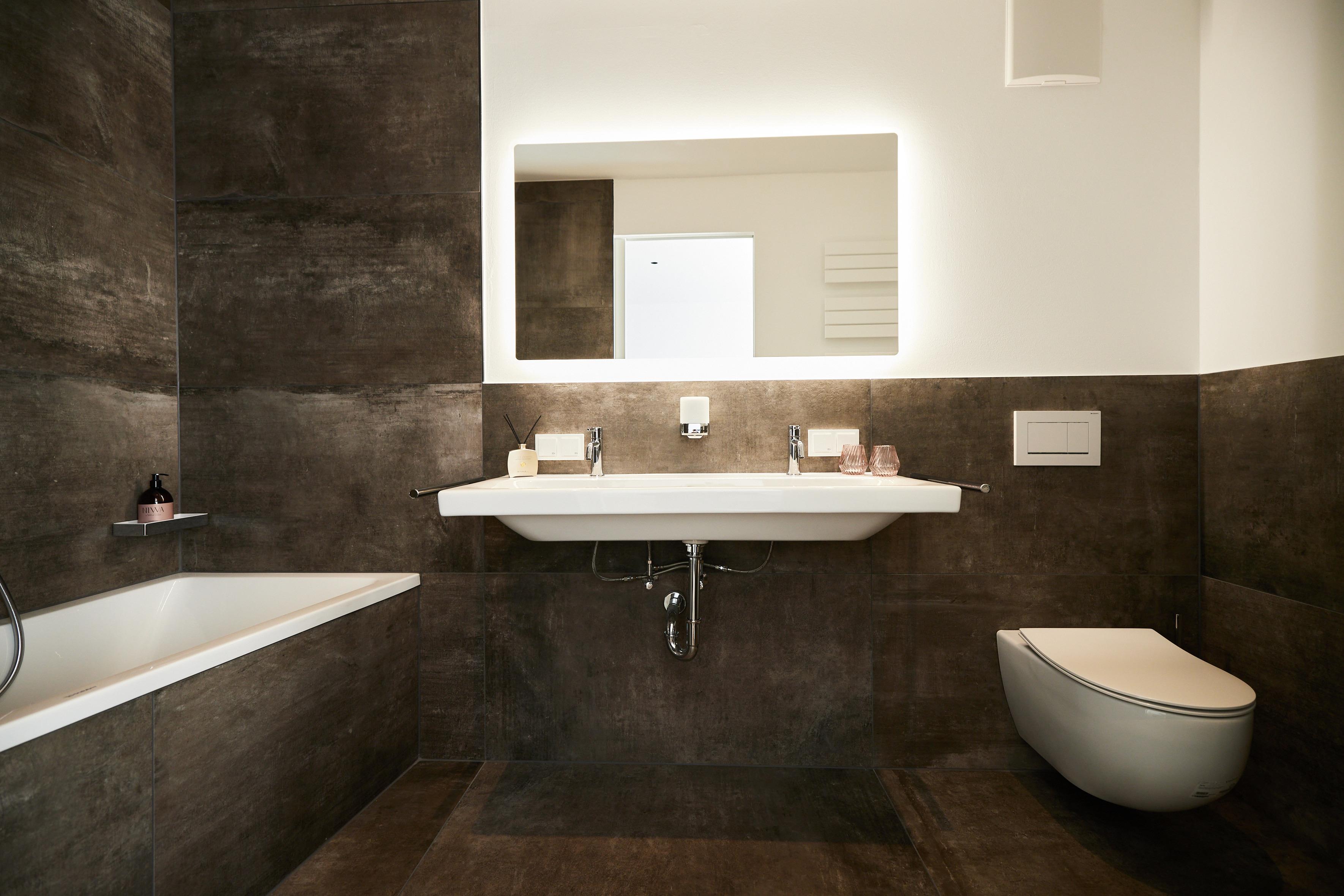 Handtuchheizkörper und LED Spiegel in allen Bädern