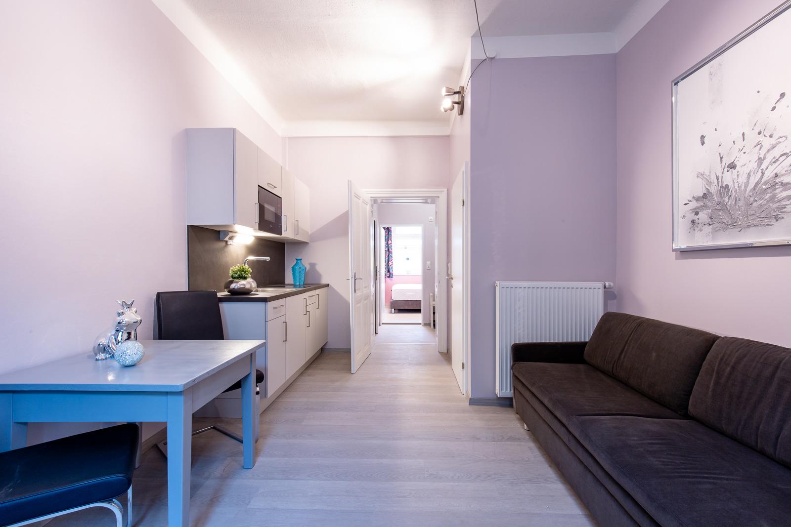 Die Apartments in modernen Stil verfügen über ein komfortables Schlafzimmer mit Flachbild TV, einen gemütlichen Wohn-Essbereich, Dusche und WC und eine gut ausgestattete Küche. Obwohl sich die Salzburg Luxury Apartments inmitten einer pulsierenden Metropole befinden, hat das Apartmenthaus einen ruhigen, romantischen Innenhof mit einer Out Door Lounge abseits von Trubel und Lärm, in der man den Tag ausklingen lassen kann.