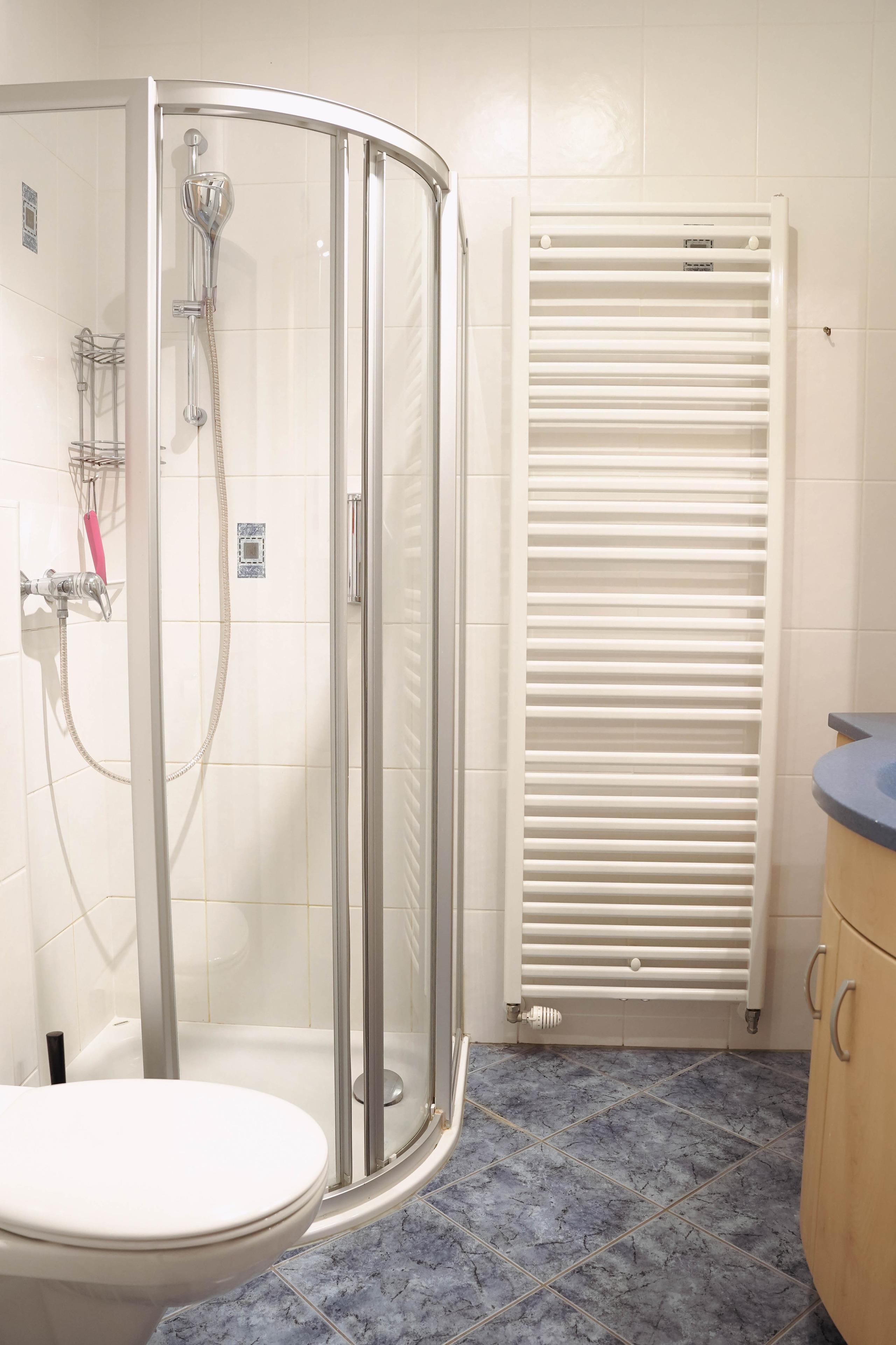 Das Badezimmer ist mit einer erfrischenden Dusche ausgestattet. Es bietet alles, was Sie für einen angenehmen Start in den Tag oder eine entspannende Auszeit benötigen.
