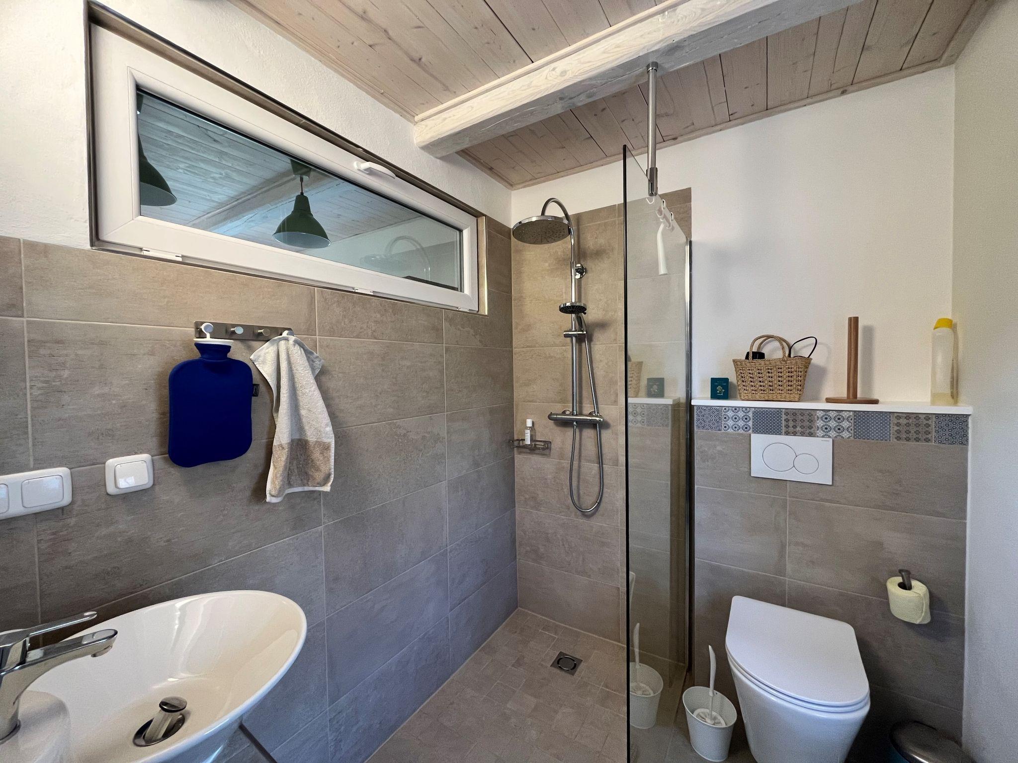 1-room house 33 m2, on the upper ground floor. Object suitable for 2 adults. Partly with sloping ceilings, renovated in 2021, tasteful and cosy furnishings: living/dining room with dining table and shower/WC. Gallery with sloping ceilings with 1 double bed. Kitchenette in the entrance (mini-oven, 2 induction hot plates, kettle). Parquet floors. Facilities: baby cot for up to 2 year olds, hair dryer. Internet (WiFi, free). Please note: non-smoking house. Maximum 1 pet/ dog allowed. Instead of an enclosed bedroom, some sleeping areas are located in an open-plan area (gallery, alcove, etc.).