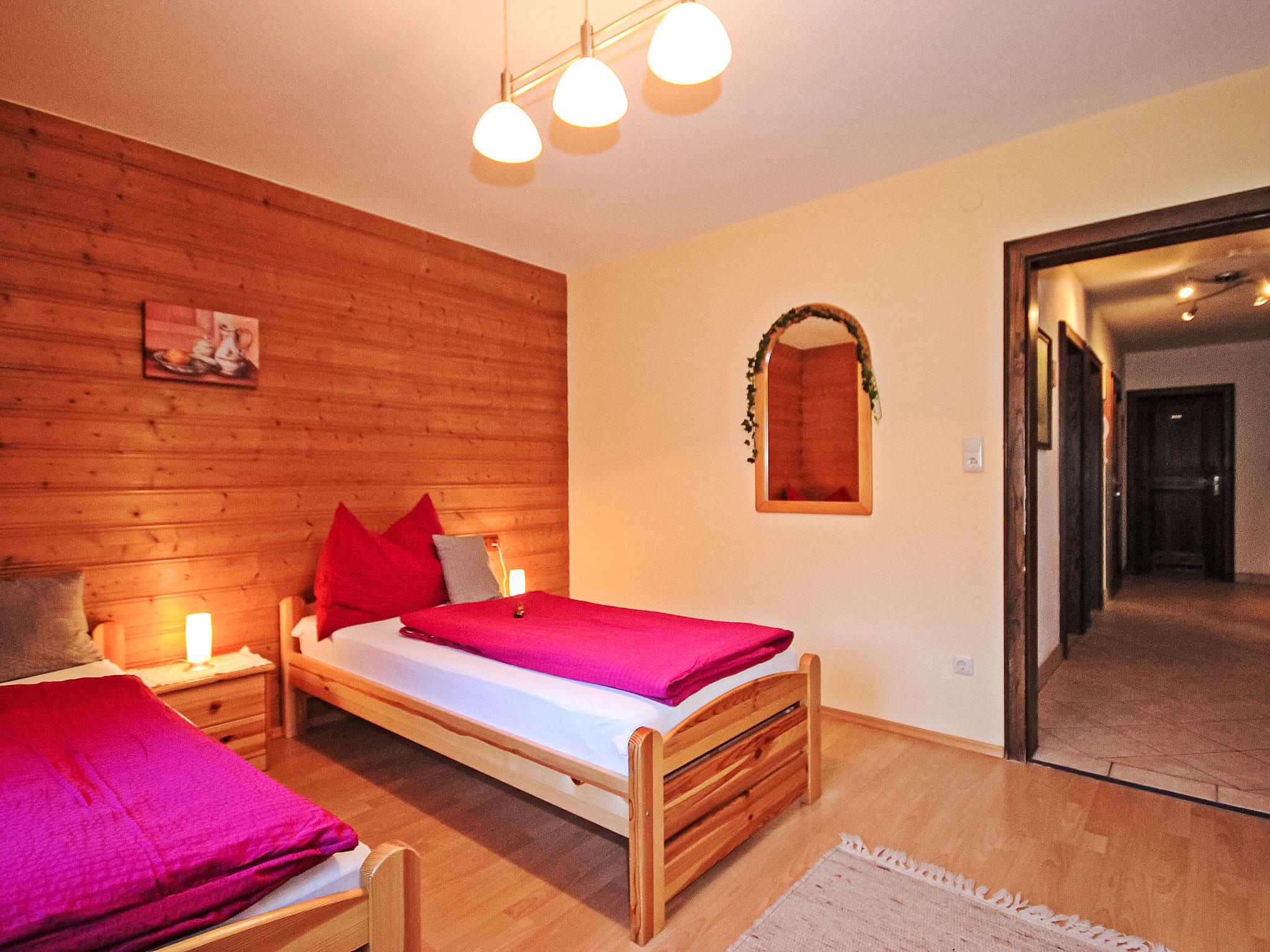 4-room apartment 85 m2, on the ground floor. Comfortable and cosy furnishings: entrance hall. Living room with satellite TV (flat screen), DVD. Exit to the garden, to the balcony. 1 double bedroom. 1 room with 2 beds. 1 room with 1 bed and hand-basin. Kitchen (oven, dishwasher, 4 ceramic glass hob hotplates, microwave, electric coffee machine) with dining nook. Shower, sep. WC. Beautiful view of the mountains. Facilities: Internet (WiFi, free). Please note: non-smokers only. Smoke alarm.