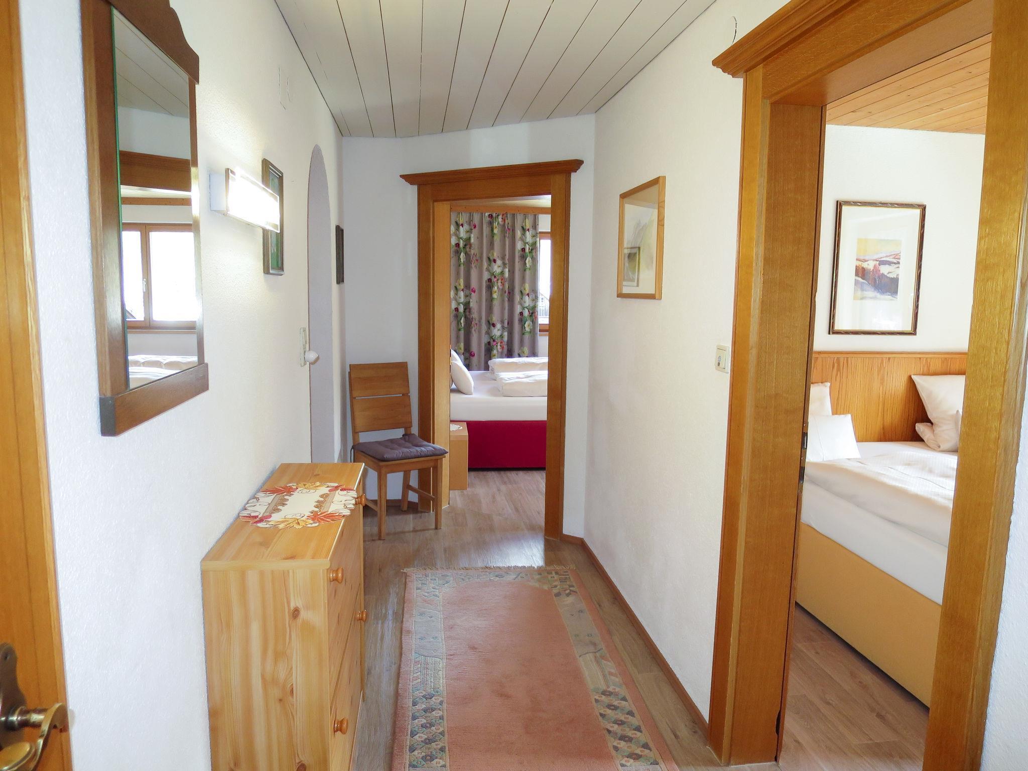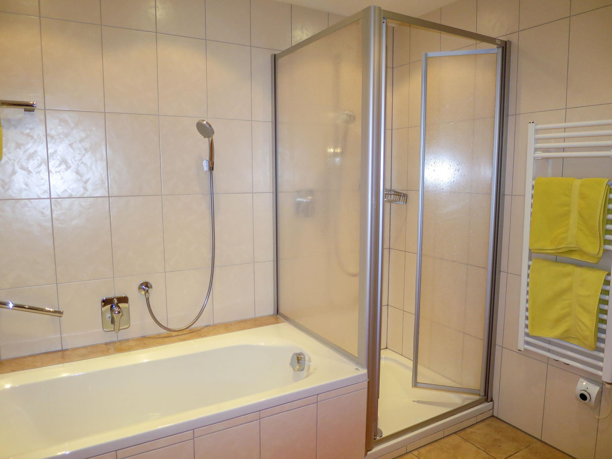 "Am Schönbach", 5-room apartment 90 m2 on 1st floor. Cosy and wooden furniture furnishings: living room with dining table, dining nook, cable TV and radio. Exit to the balcony. 1 room with 1 bed and 1 double bed. Exit to the balcony. 2 double bedrooms. Exit to the balcony. Kitchen-/living room (oven, dishwasher, 4 induction hot plates, toaster, kettle, microwave, freezer, electric coffee machine) with dining nook. Shower, sep. WC, bath/shower/WC, double hand-basin. Heating. Parquet floors. The living room is a farmhouse lounge. Balcony. Facilities: children's high chair, baby cot (extra). Internet (WiFi, free). Please note: non-smokers only. Maximum 1 pet/ dog allowed.