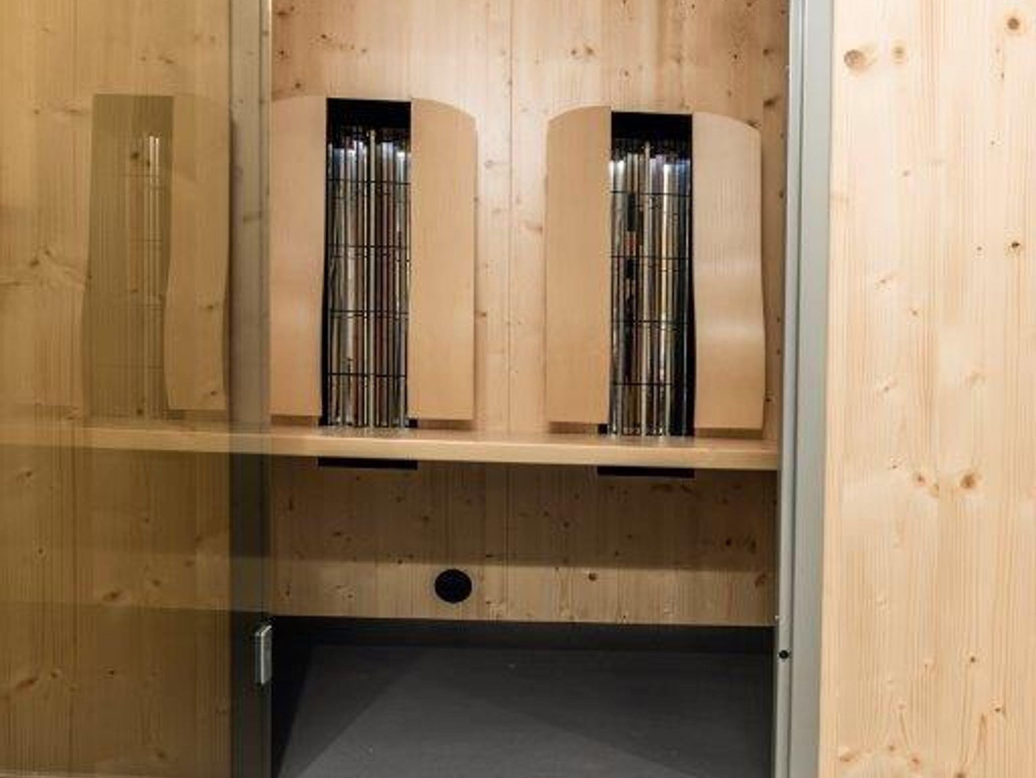 1 geräumiges Badezimmer mit begehbarer Dusche, WC, INFRAROTKABINE für 2 Personen von Physiotherm