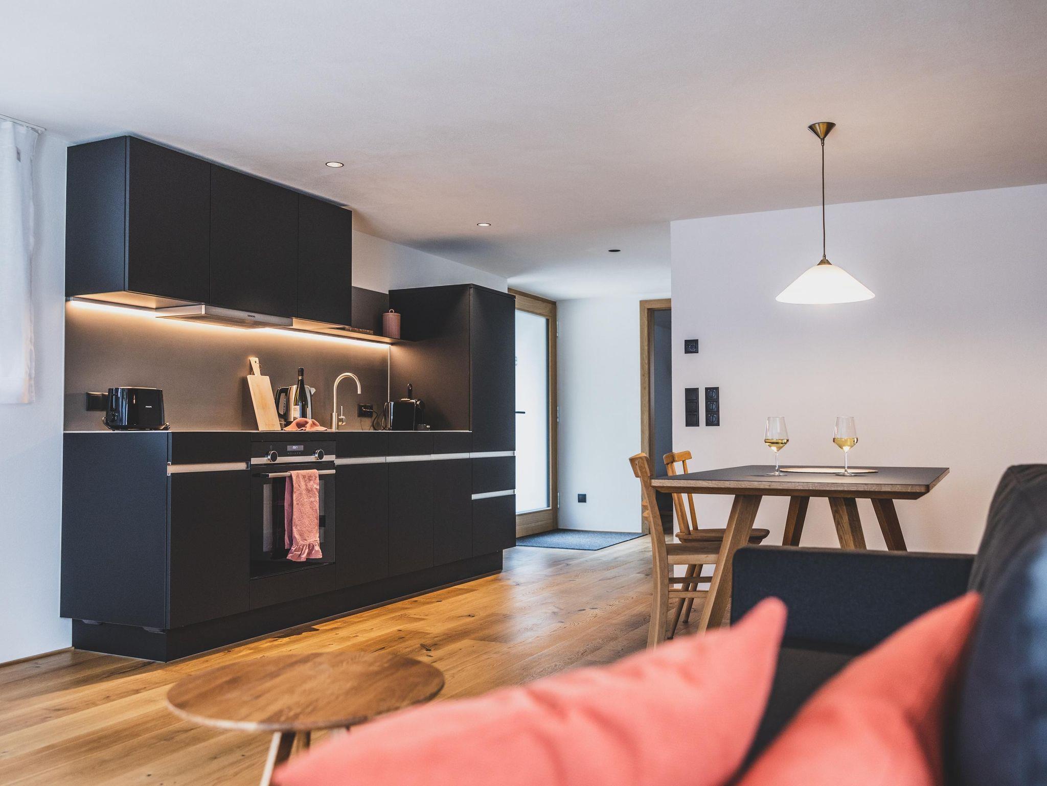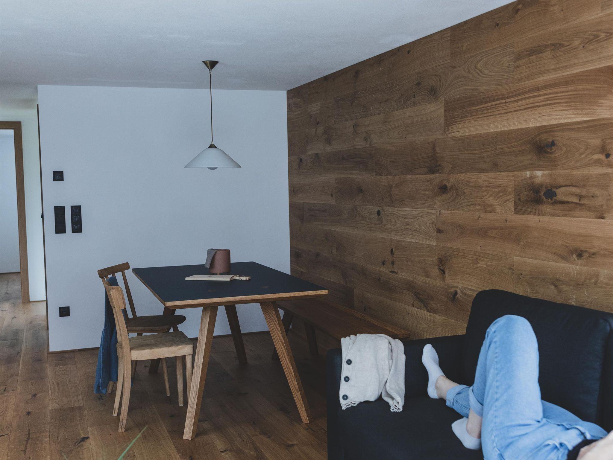 Im Montafonerhaus wurden in Wohn- und Schlafzimmern der ursprüngliche Stil des Hauses erhalten und revitalisiert, Küche und Badezimmer wurden modern und hochwertig gestaltet. Dadurch entstand ein interessanter Kontrast zwischen Alt und Neu.
