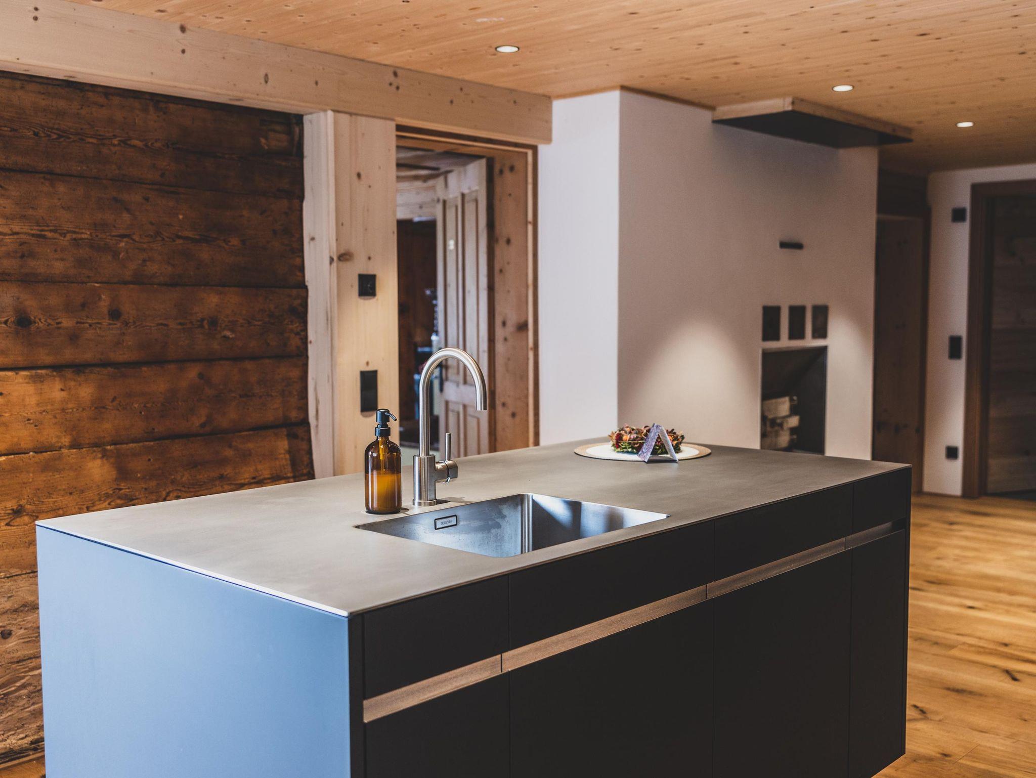 Im Montafonerhaus wurden in Wohn- und Schlafzimmern der ursprüngliche Stil des Hauses erhalten und revitalisiert, Küche und Badezimmer wurden modern und hochwertig gestaltet. Dadurch entstand ein interessanter Kontrast zwischen Alt und Neu.