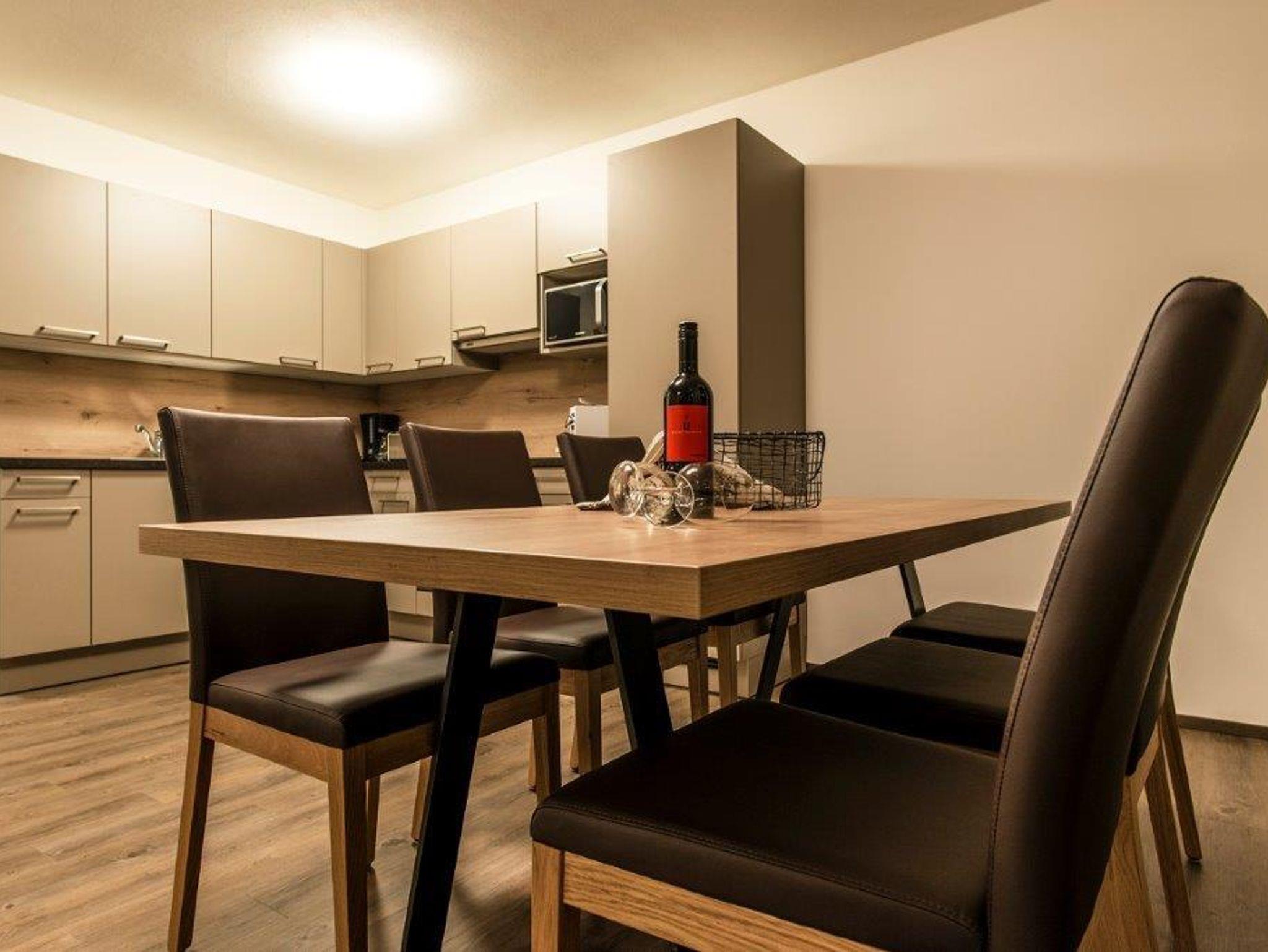 1 geräumige Wohnküche mit hochwertigen Geräten, inkl. Küchenausstattung, großzügiger Essplatz, mit ausziehbarer Komfortcouch für 2 weitere Schlafmöglichkeiten, TV, Musikanlage