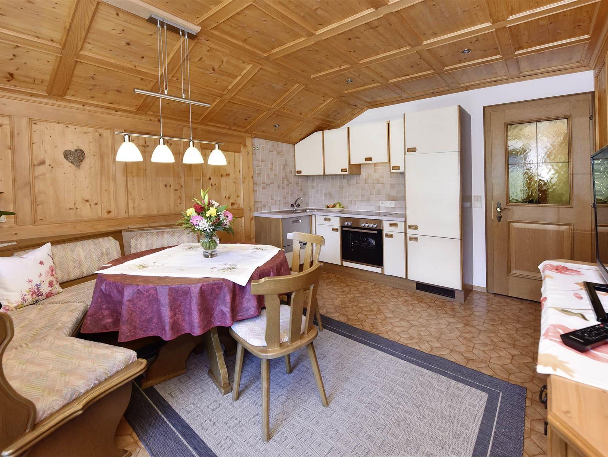 55 m², in sich abgeschlossene, gemütlich-rustikale Wohnung bestehend aus: 2 Schlafzimmer (Doppel- und Zweibett), DU/WC, Wohnküche mit Sitzecke, Balkon (15 m²) mit Gartenmöbeln und einem Vorraum.
