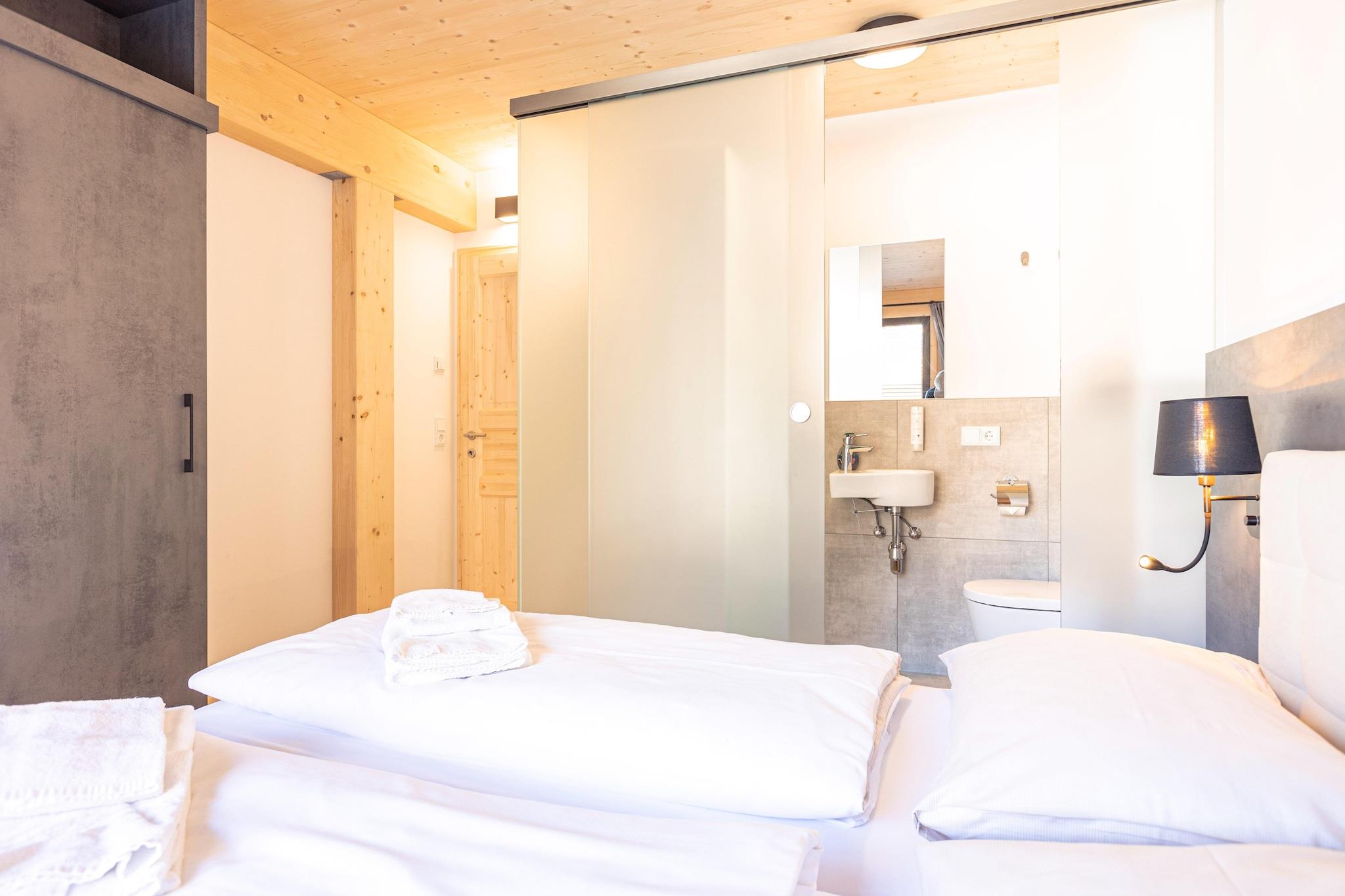 Oplev toppen af komfort og luksus i denne rummelige lejlighed på 112 m², der nemt kan rumme op til 8 gæster. Dette eksklusive tilflugtssted er ideelt til familier eller grupper og tilbyder fire elegant møblerede soveværelser, hver med en komfortabel dobbeltseng til en god nats søvn. Lejligheden har to store badeværelser med forfriskende regnbrusere samt to ekstra badeværelser for ekstra komfort. Der er også et separat gæstetoilet. Den åbne opholdsstue med stilfuldt siddeområde og fladskærms-tv inviterer dig til at slappe af efter en travl dag. Slap af i lejlighedens private finske sauna. Den imponerende terrasse på 70 m² med privat, opvarmet pool, der er tilgængelig året rundt, tilbyder en unik og luksuriøs måde at slappe af på. Det moderne køkken er en kulinarisk drøm, fuldt udstyret med bestik, køkkengrej og essentielle apparater af høj kvalitet, herunder keramisk kogeplade, ovn, køleskab med fryser og opvaskemaskine. Andre faciliteter inkluderer elkedel og brødrister samt en Nespresso-kaffemaskine. Et lille startsæt med opvaskemaskinetabletter, opvaskemiddel (prøve), svamp, affaldsposer, rengøringsmidler og et viskestykke venter på dig ved ankomst. Wi-Fi er inkluderet uden ekstra omkostninger, så du kan holde dig forbundet under hele dit ophold. Det inkluderede MurauCard tilbyder adskillige rabatter.