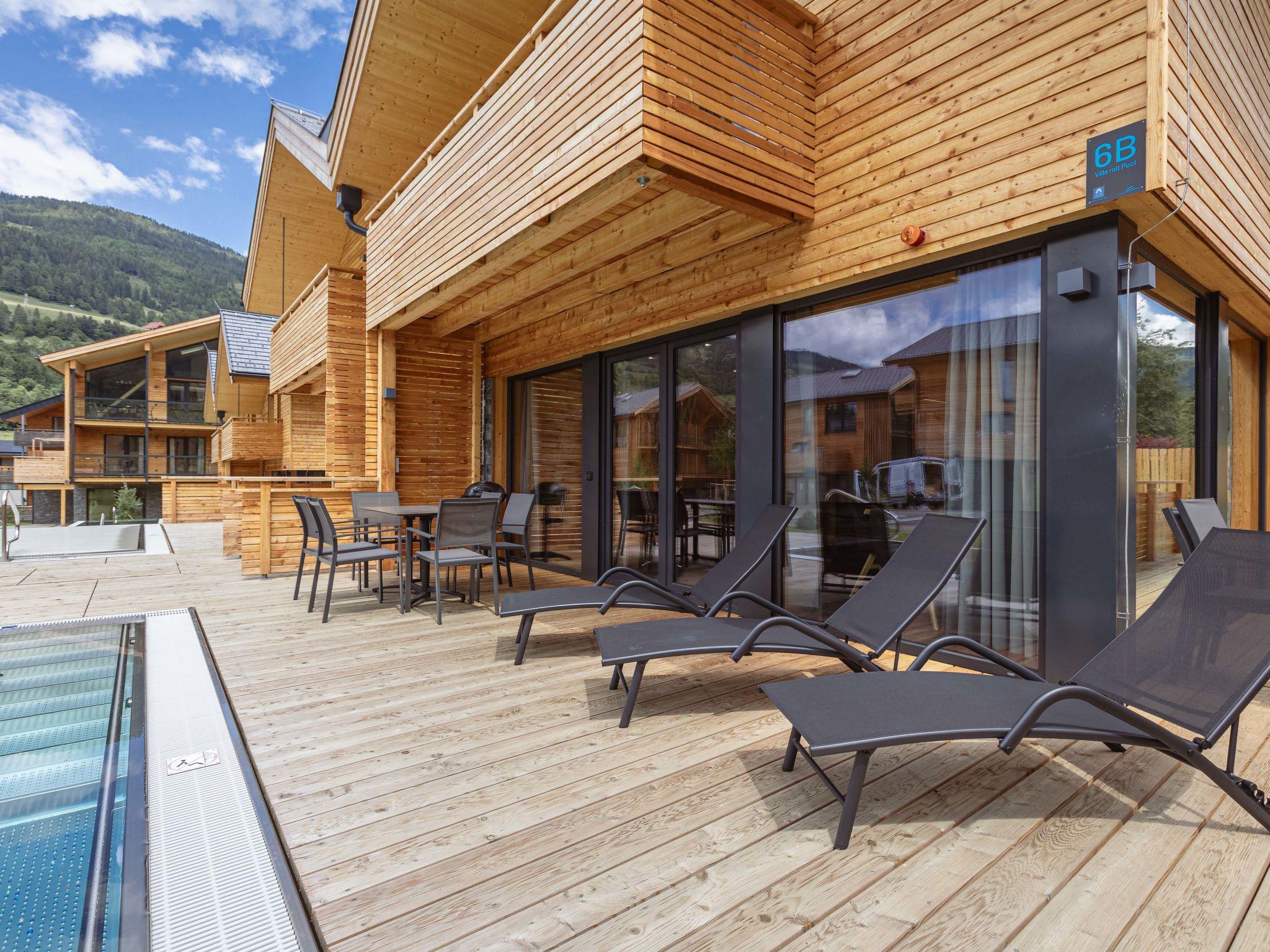 Sankt Georgen: Luxurious resort "Kreischberg Pool Villa b.AlpsResort", built in 2022. 1 km from the centre of Sankt Georgen, in a quiet, sunny position, 150 m from the skiing area. In the house: central heating system. Parking on the premises. Supermarket 1 km, railway station "St Lorenzen" 170 m. Gondola lift, skisport facilities, ski school 150 m. Well-known ski regions can easily be reached: Kreischberg 150 m. Please note: In case of good snow conditions, the house is accessible on skis. The holiday properties may differ in living space, floorplan, equipment and furnishing.