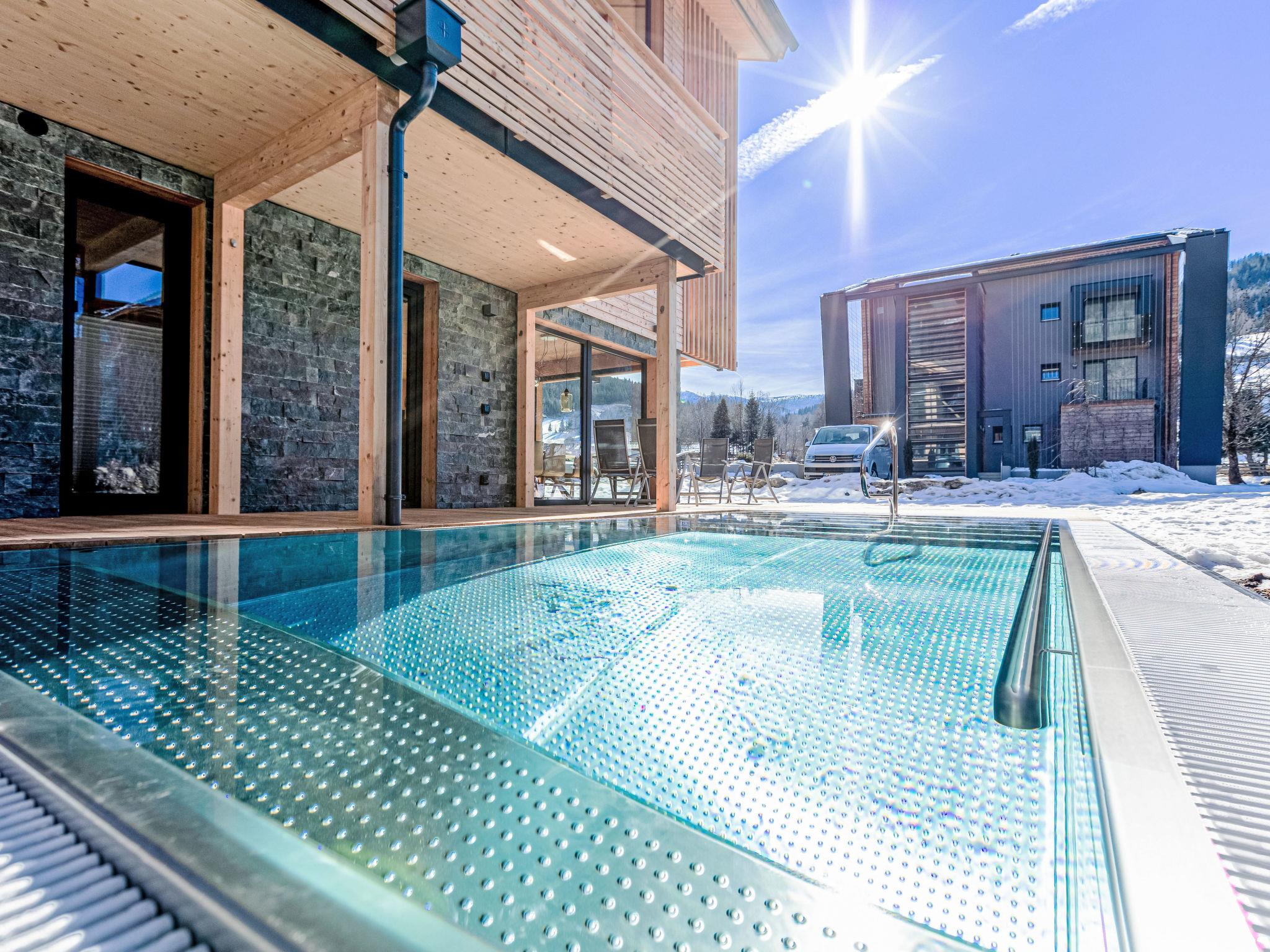 Sankt Georgen: Luxurious resort "Kreischberg Pool Villa b.AlpsResort", built in 2022. 1 km from the centre of Sankt Georgen, in a quiet, sunny position, 150 m from the skiing area. In the house: central heating system. Parking on the premises. Supermarket 1 km, railway station "St Lorenzen" 170 m. Gondola lift, skisport facilities, ski school 150 m. Well-known ski regions can easily be reached: Kreischberg 150 m. Please note: In case of good snow conditions, the house is accessible on skis. The holiday properties may differ in living space, floorplan, equipment and furnishing.