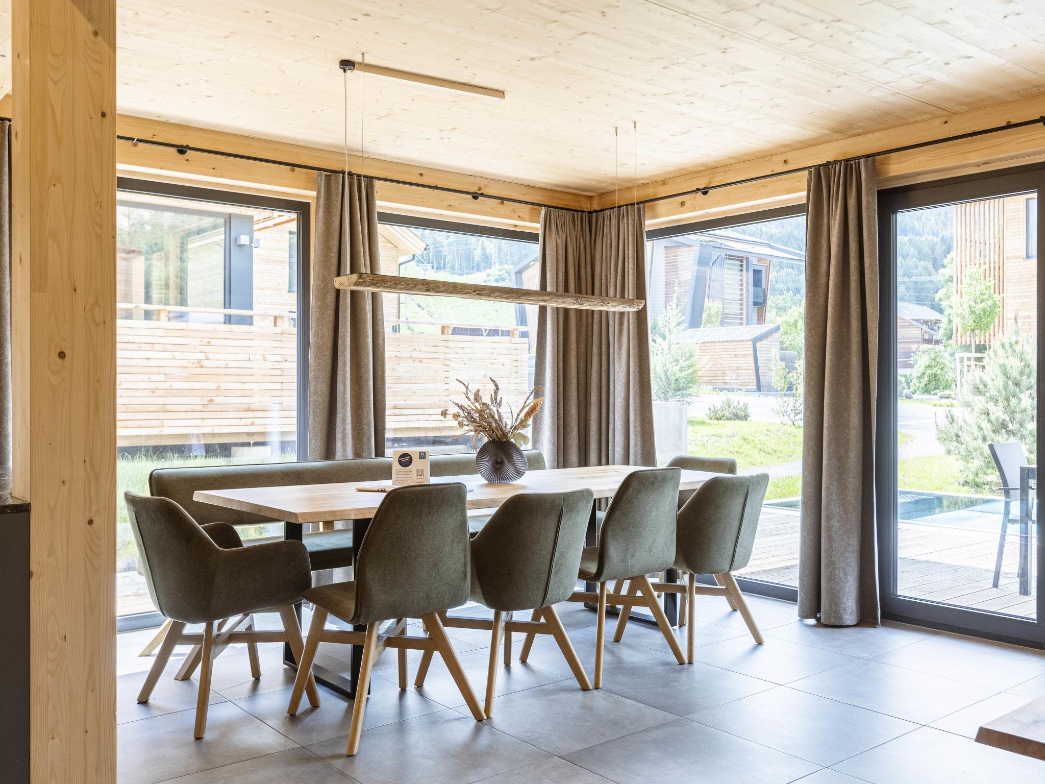 Sankt Georgen: Luxurious resort "Kreischberg Pool Villa b.AlpsResort", built in 2022. 1 km from the centre of Sankt Georgen, in a quiet, sunny position, 150 m from the skiing area. In the house: central heating system. Parking on the premises. Supermarket 1 km, railway station "St Lorenzen" 170 m. Gondola lift, skisport facilities, ski school 150 m. Well-known ski regions can easily be reached: Kreischberg 150 m. Please note: In case of good snow conditions, the house is accessible on skis. The holiday properties may differ in living space, floorplan, equipment and furnishing.