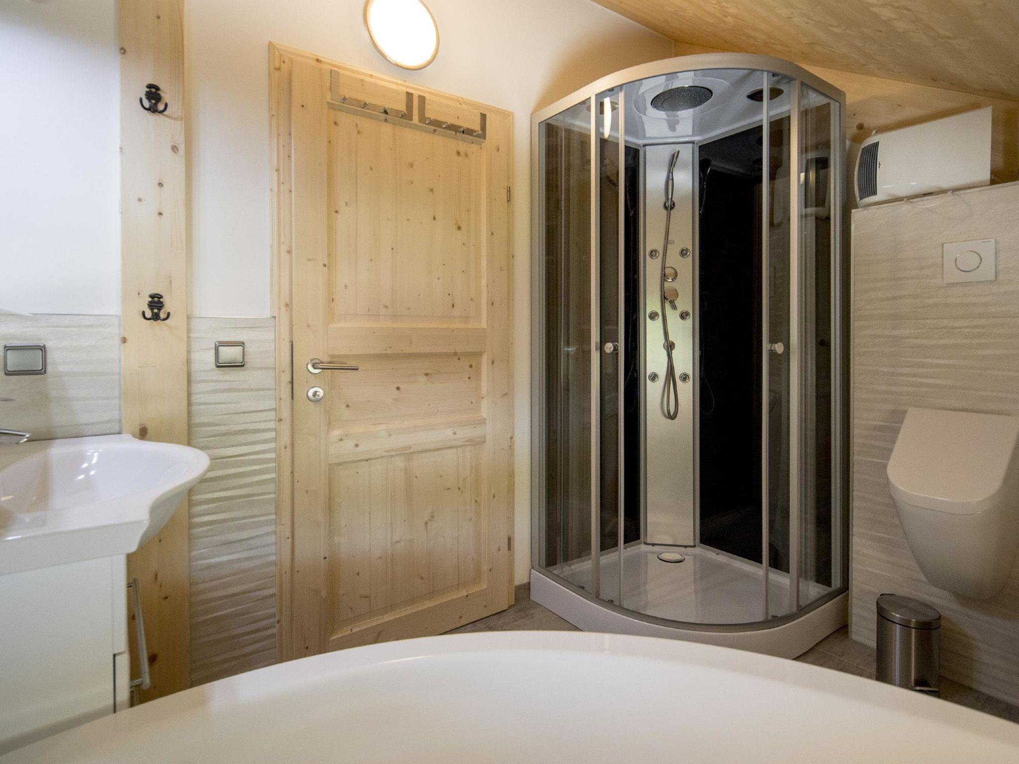 "Chalet 4 Schlafzimmern, Sauna & SwimSPA", 5-room chalet 100 m2 on 2 levels. Bright, comfortable and wooden furniture furnishings: entrance hall. Living/dining room with dining table and satellite TV (flat screen). 3 double bedrooms. 1 room with 1 bed and 1 x 2 bunk beds. Open kitchen (oven, dishwasher, 4 ceramic glass hob hotplates, microwave, electric coffee machine). 2 baths or showers/WC, hydro massage bath. Balcony, terrace. Very beautiful view of the mountains, the ski run and the countryside. Facilities: sauna. Internet (WiFi, free). Please note: non-smoking house. Smoke alarm, fire extinguisher. These chalets have a SwimSpa.