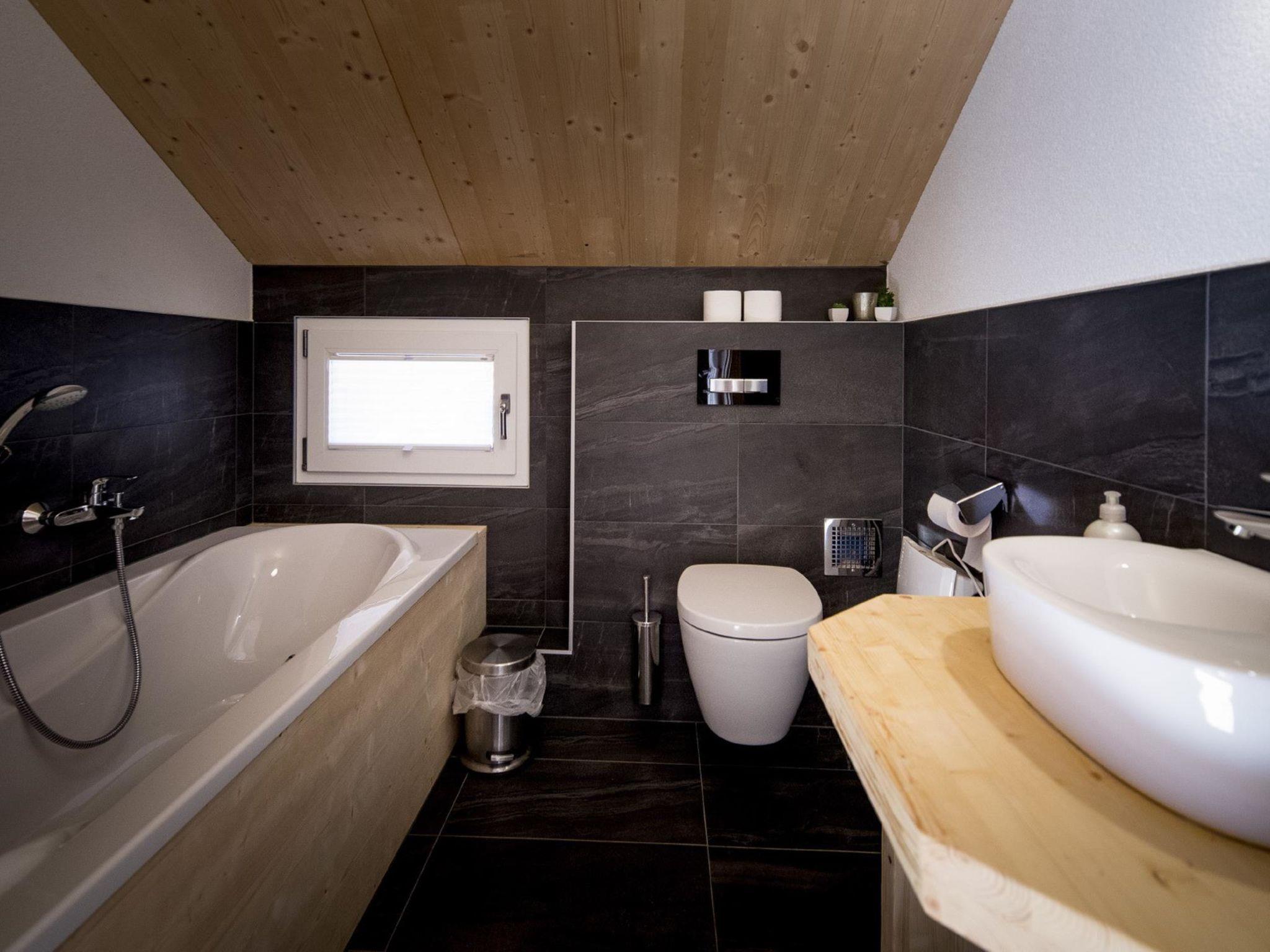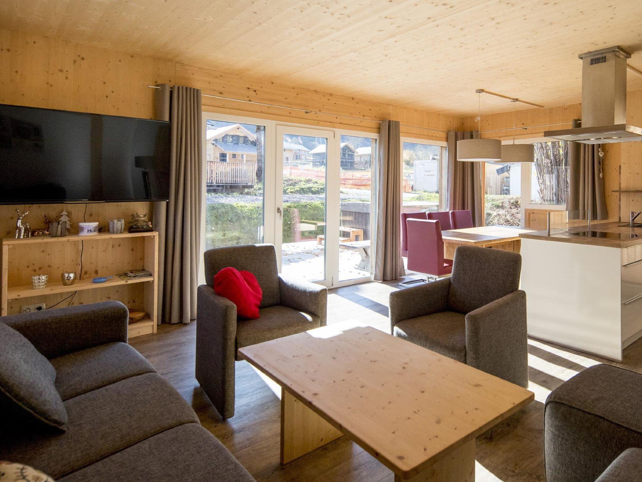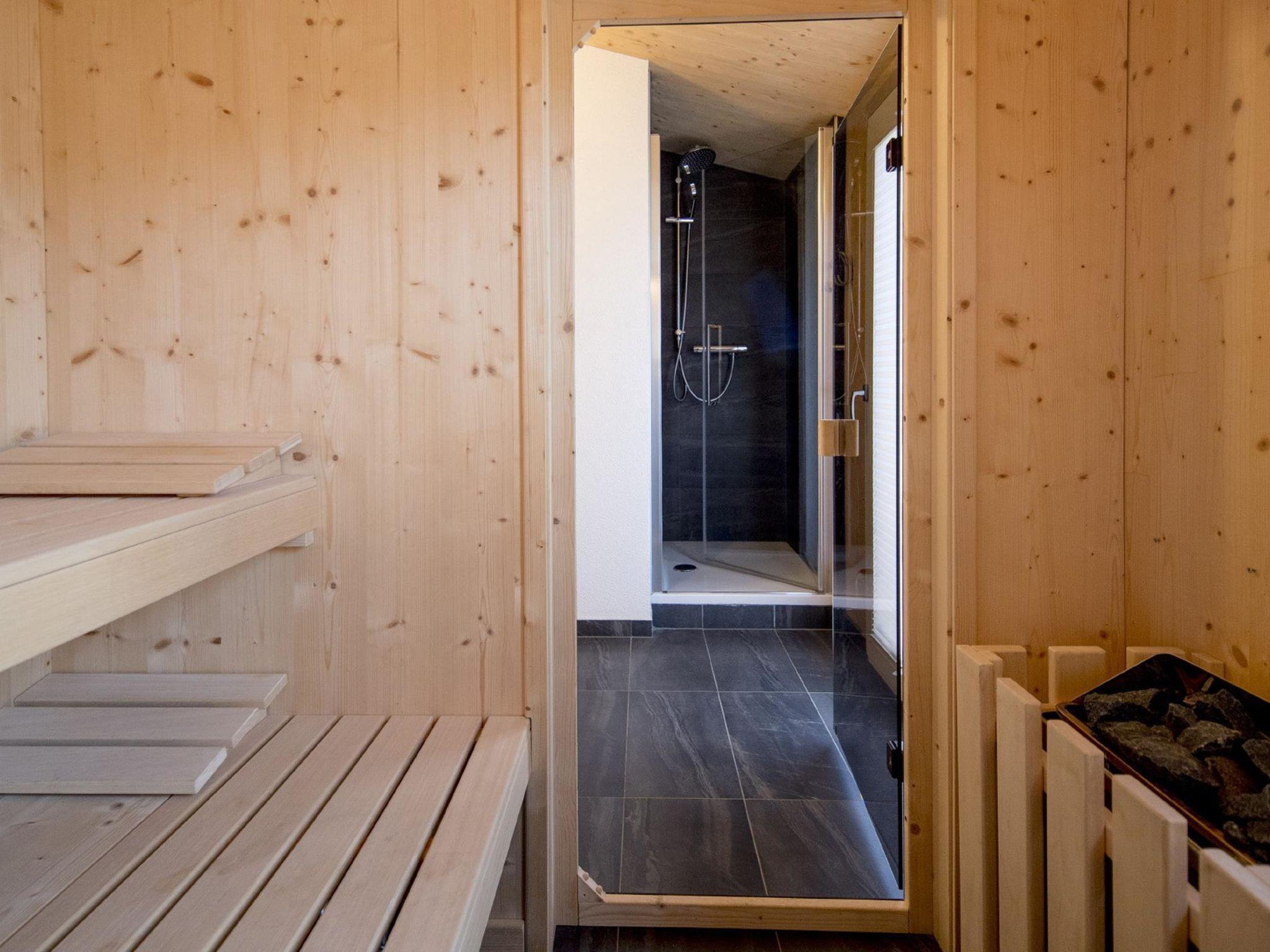 "Sup.4 SZ Sauna o.IR-Sauna+Sprudelbad", 5-room chalet 135 m2 on 2 levels. Bright, comfortable and wooden furniture furnishings: entrance hall. Living/dining room with dining table and satellite TV (flat screen). 3 double bedrooms. 1 room with 1 bed and 1 x 2 bunk beds. Open kitchen (oven, dishwasher, 4 ceramic glass hob hotplates, microwave, electric coffee machine). 2 bathrooms, sep. WC, double hand-basin, hydro massage bath. Balcony, terrace. Very beautiful view of the mountains and the ski run. Facilities: sauna. Internet (WiFi, free). Please note: non-smoking house. Smoke alarm, fire extinguisher. Private bubble baths on the terrace. The chalets are individually furnished.
