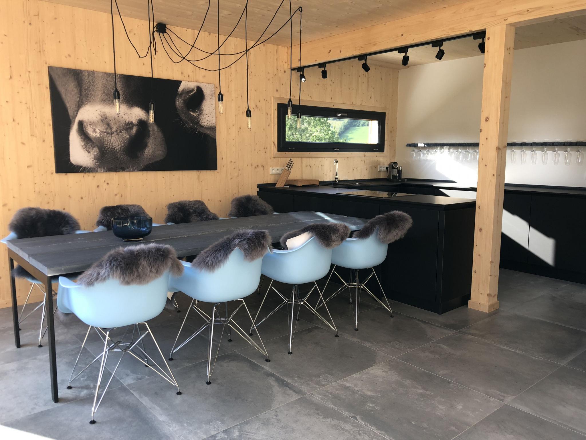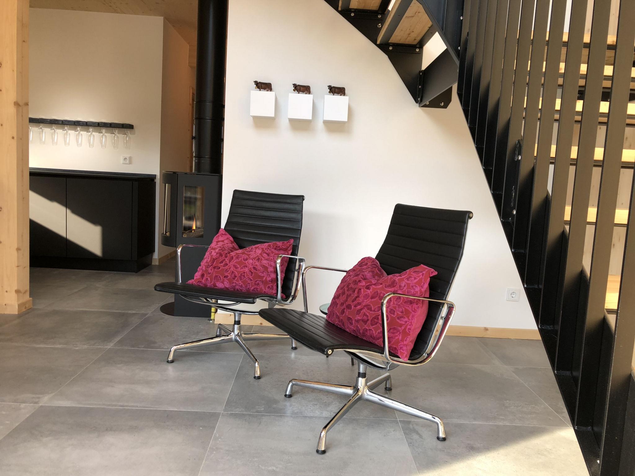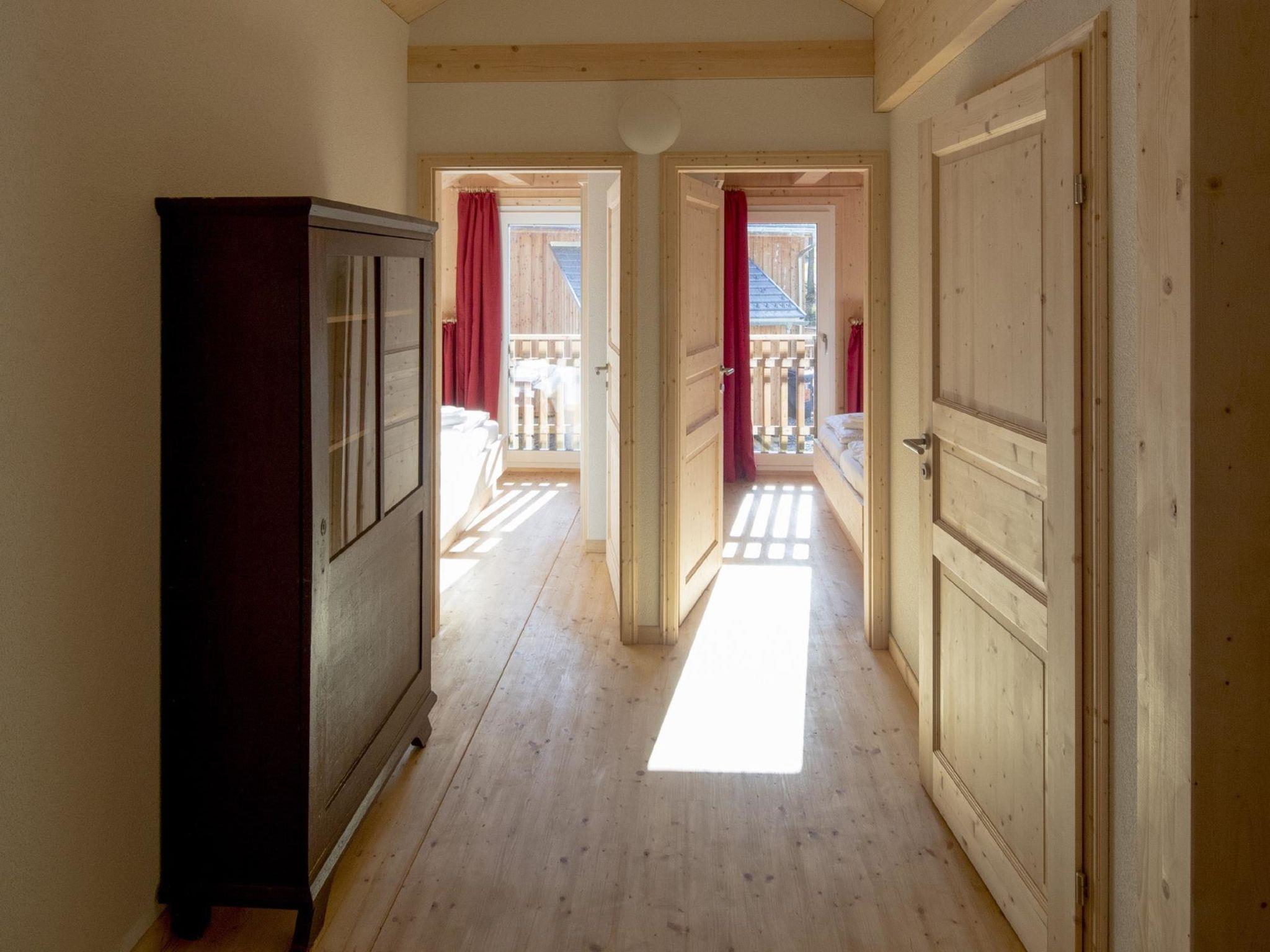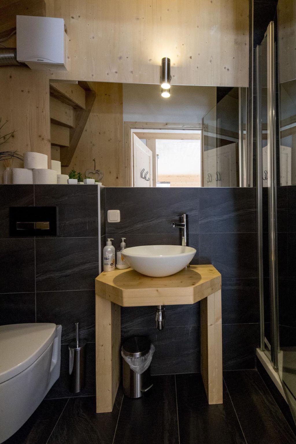 "Sup.4 SZ Sauna o.IR-Sauna+Sprudelbad", 5-room chalet 135 m2 on 2 levels. Bright, comfortable and wooden furniture furnishings: entrance hall. Living/dining room with dining table and satellite TV (flat screen). 3 double bedrooms. 1 room with 1 bed and 1 x 2 bunk beds. Open kitchen (oven, dishwasher, 4 ceramic glass hob hotplates, microwave, electric coffee machine). 2 bathrooms, sep. WC, double hand-basin, hydro massage bath. Balcony, terrace. Very beautiful view of the mountains and the ski run. Facilities: sauna. Internet (WiFi, free). Please note: non-smoking house. Smoke alarm, fire extinguisher. Private bubble baths on the terrace. The chalets are individually furnished.