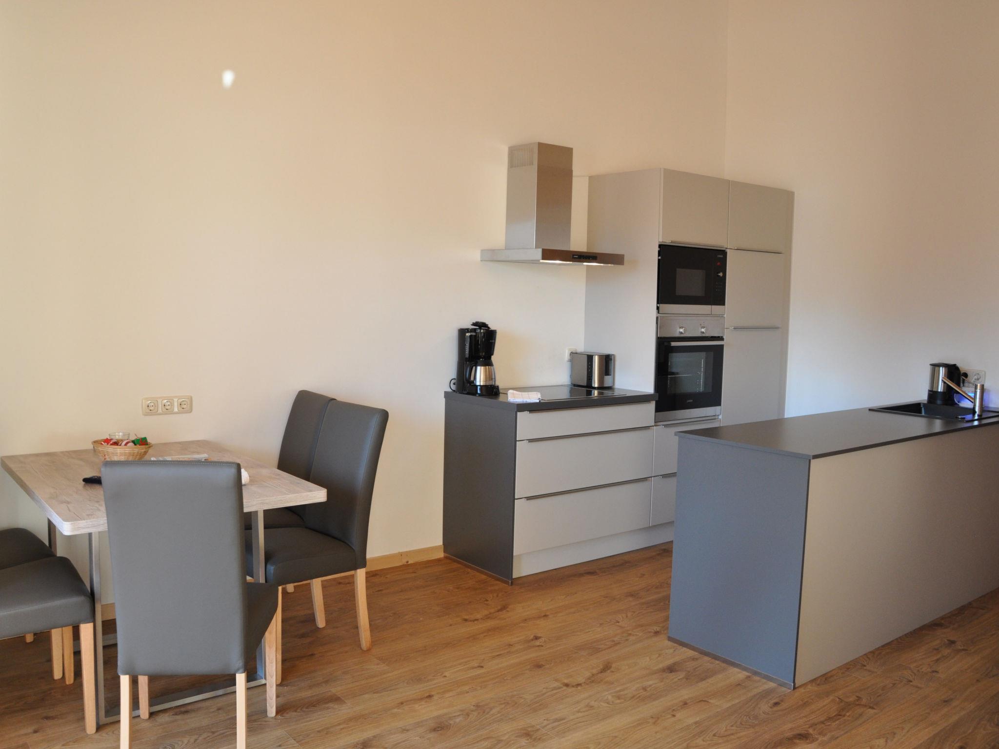 "für 2 Personen mit Sauna", 2-room apartment 45 m2. Bright, cosy furnishings: living/dining room with dining table and satellite TV (flat screen). 1 double bedroom. Kitchenette (dishwasher, 4 ceramic glass hob hotplates, toaster, kettle, electric coffee machine). Bathroom, sep. WC. Heating. Terrace 16 m2. Terrace furniture. Beautiful view of the countryside. Facilities: sauna, hair dryer. Internet (WiFi, free). Please note: non-smokers only. Maximum 1 pet/ dog allowed. The property is one of a type of property or apartment. The apartment is on the 1st floor of the Alps Resort office building!