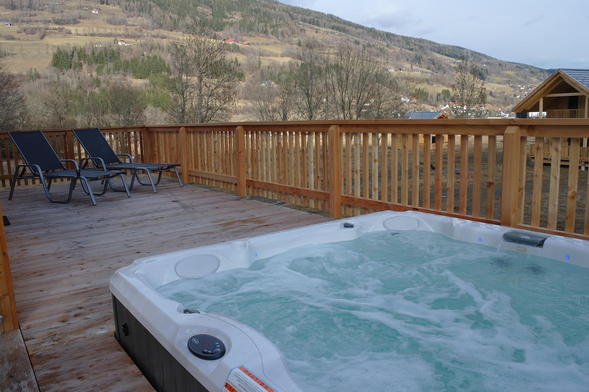 Indbydende hytte med spabad