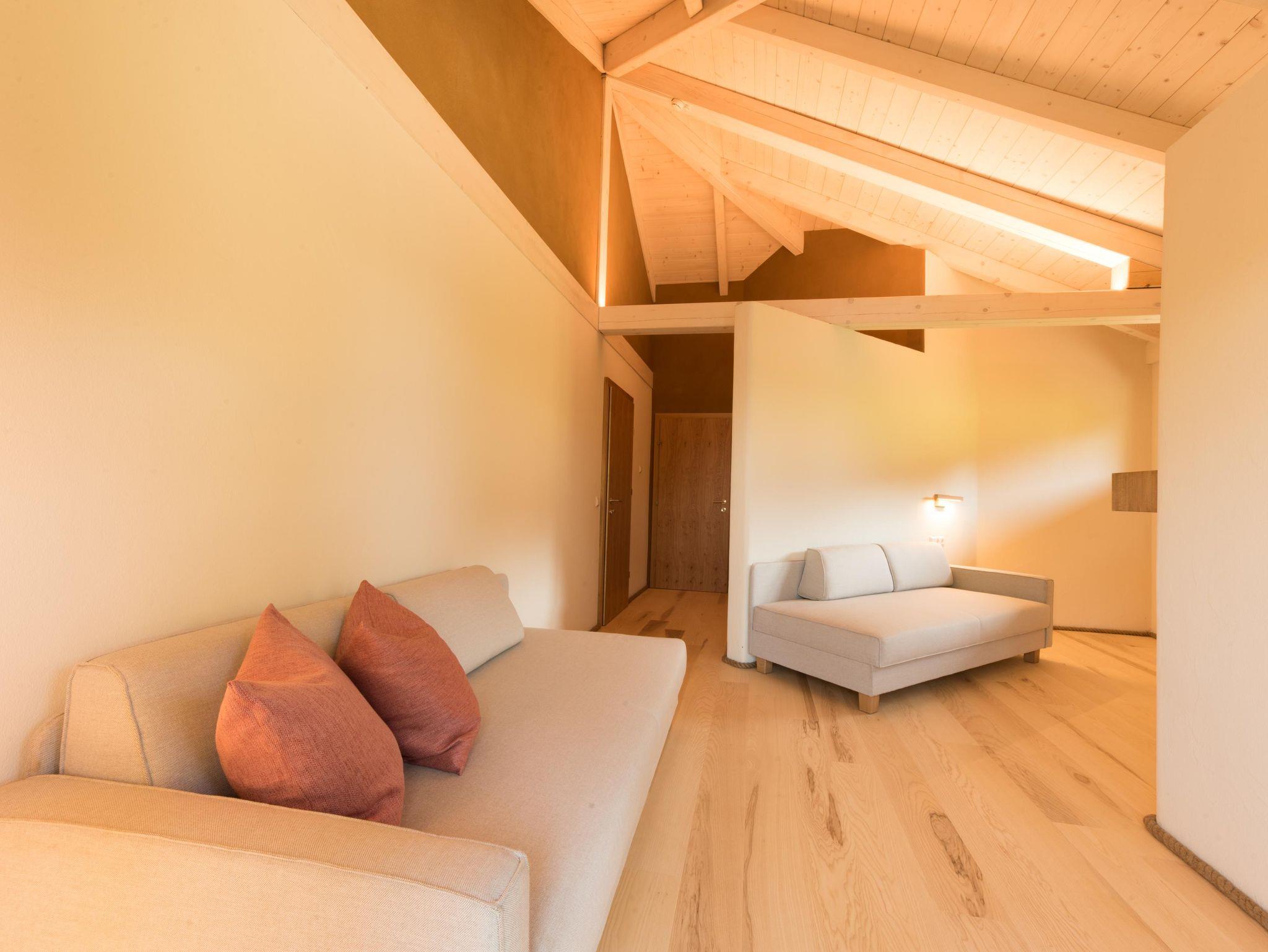 Gemütlichkeit und Raum, mit wunderbarem Blick über den Längsee. Vollholzmöbel, Lehmwände, feine Stoffe. Getrennter Schlaf- und Wohnbereich. Für alle mit dem Wunsch nach Raum und Weitblick.