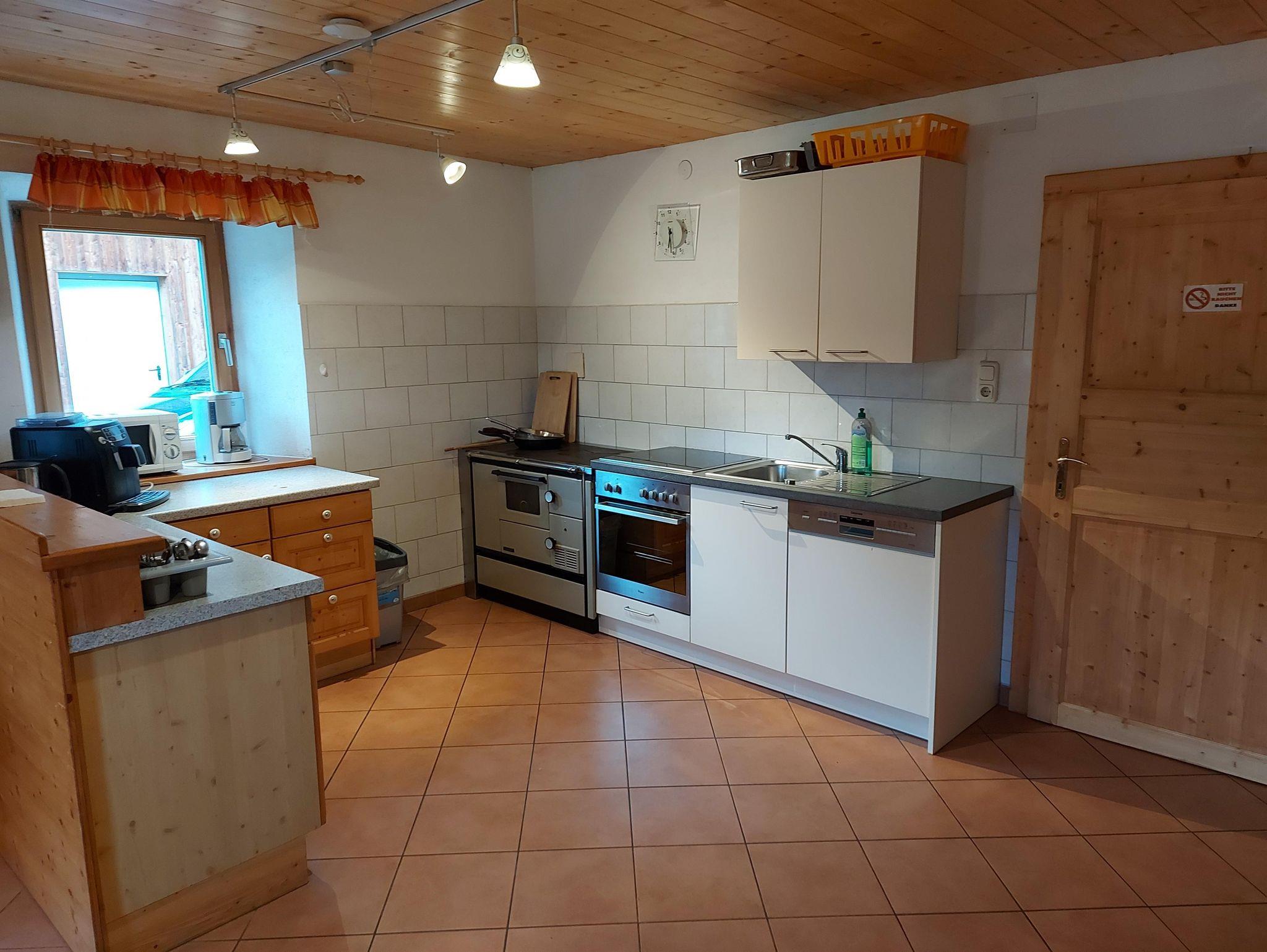 Große Wohnküche mit Geschirrspüler, Holzherd, Elektroherd mit Backofen, Kühlschrank mit Gefrierfach, Kaffeemaschine, Wasserkocher, Mikrowelle. Sat-TV, WLAN. Sitzbänke und Griller vor dem Haus.