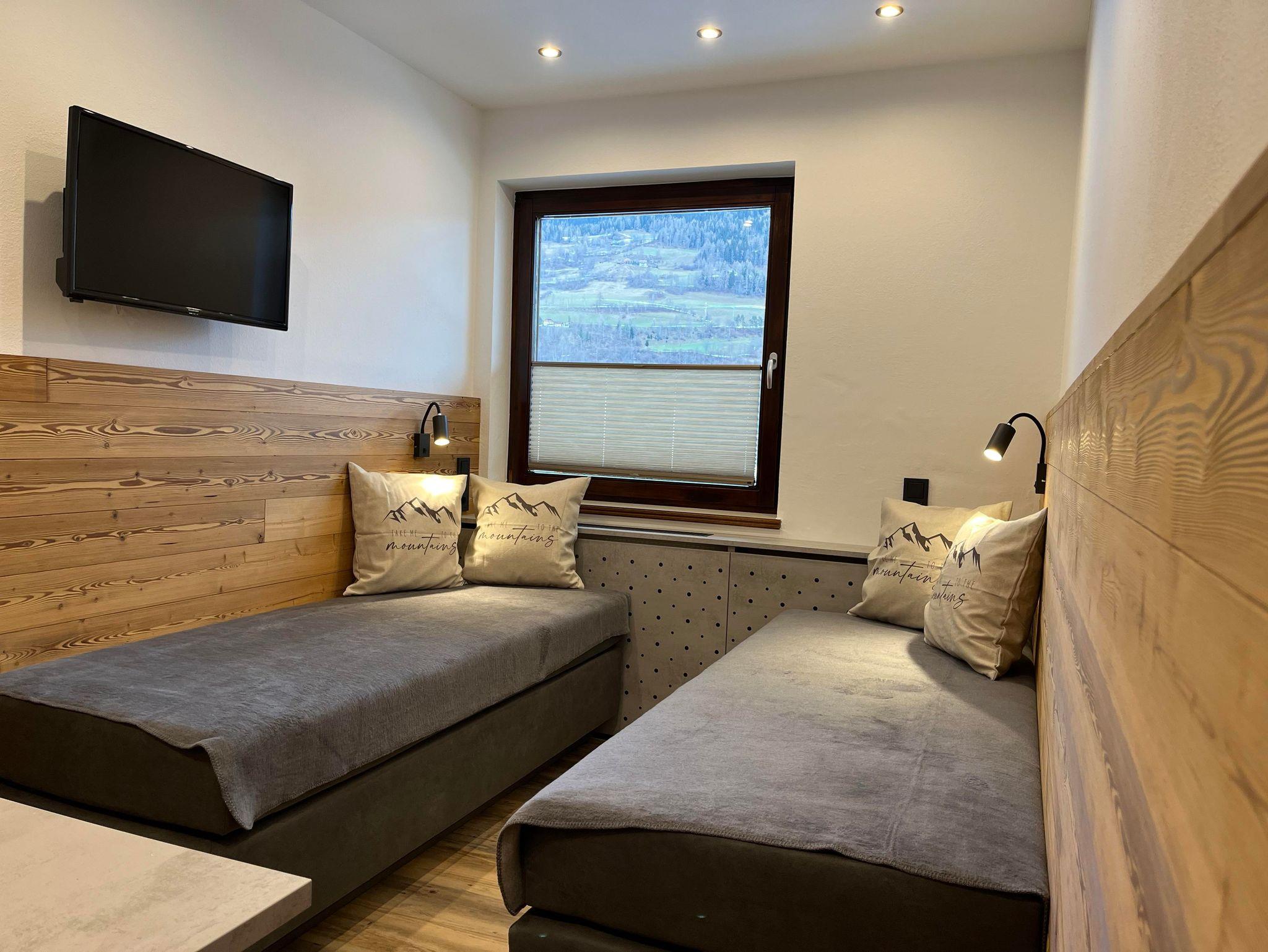 Komplett NEU renovierte Ferienwohnung Gstoder mit Blick zur Talabfahrt und Talstation für 4 Personen 1 Schlafzimmer für 2 Personen mit einem sehr großen Balkon und Gartenmöbel, mit 2 Kabel-Flach-TV, W-LAN gemütliches Wohnschlafzimmer mit 2 getrennten Betten für 2 Personen, Sitzgarnitur, DU/WC, Haarfön, 2 große Vorräume mit Garderobe. Küche mit Ceran Kochfeld, Kühlschrank inkl. Gefrierfach, Mikrowellenherd, Nespresso - Kaffeemaschine, Toaster und Wasserkocher. Größe der Wohnung ca. 55 m2. Ohne Frühstück (Verpflegung)