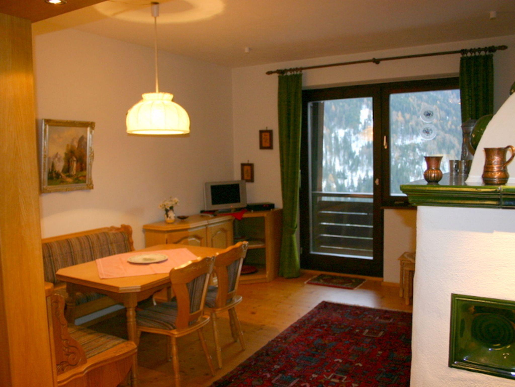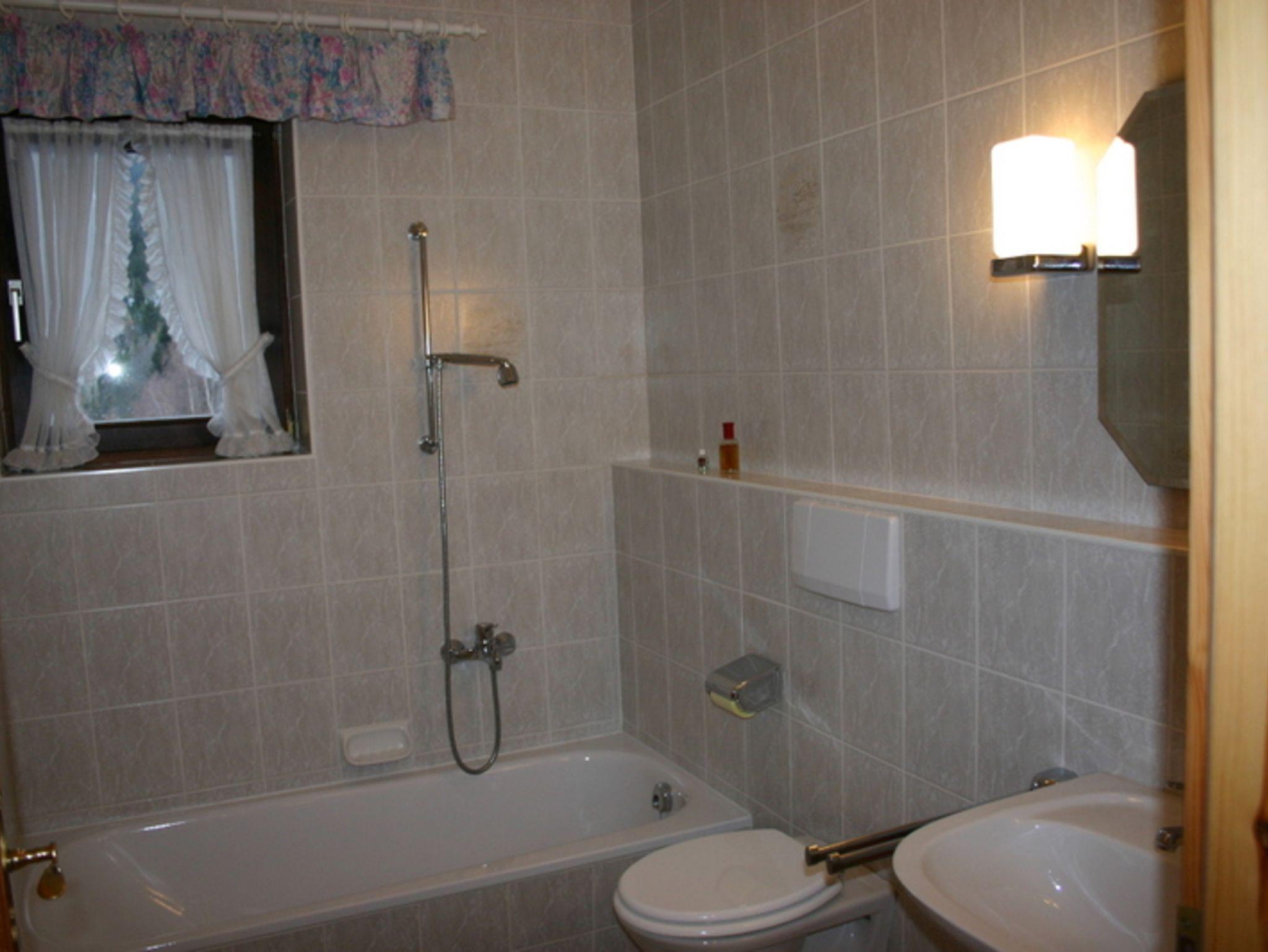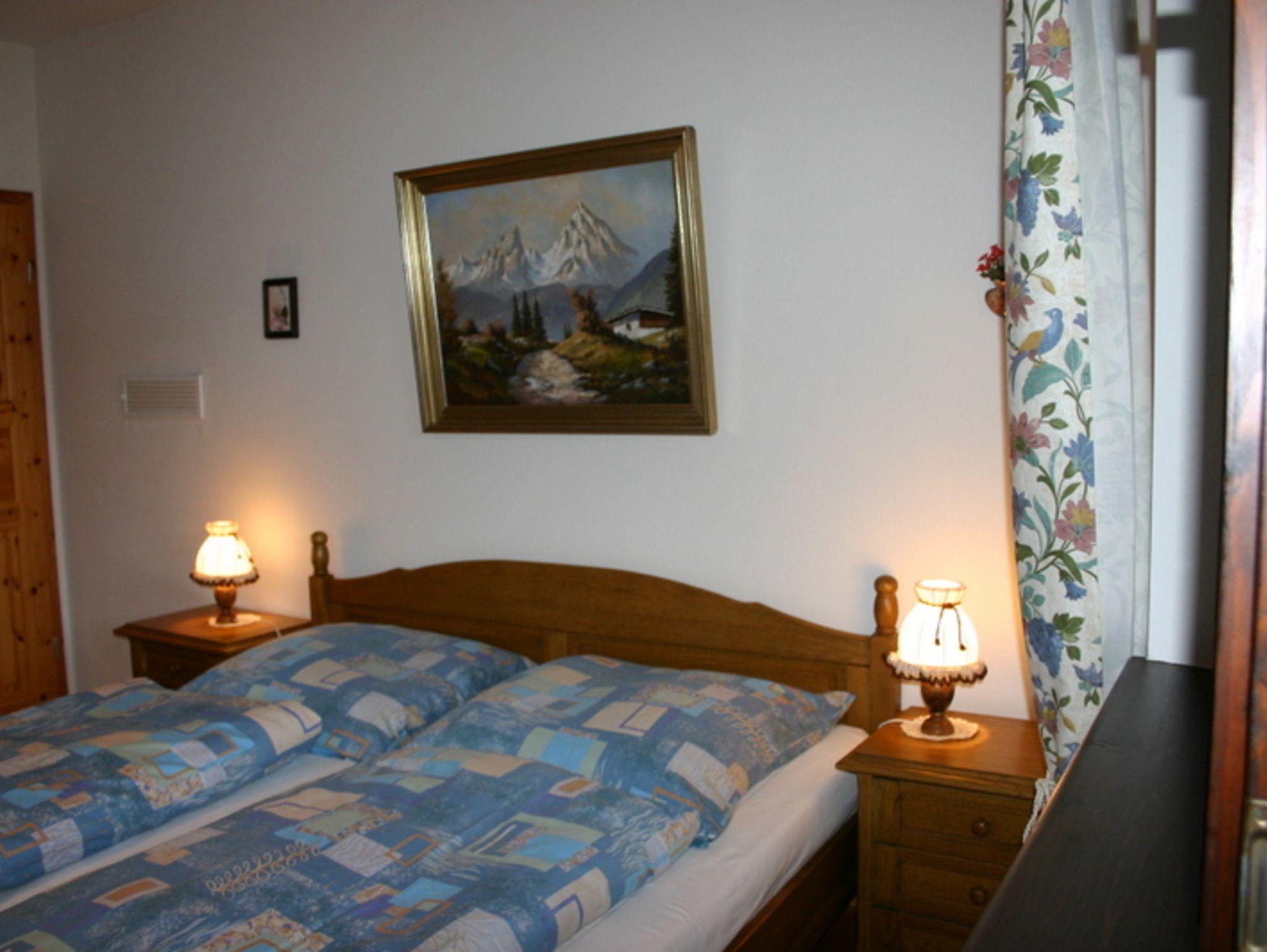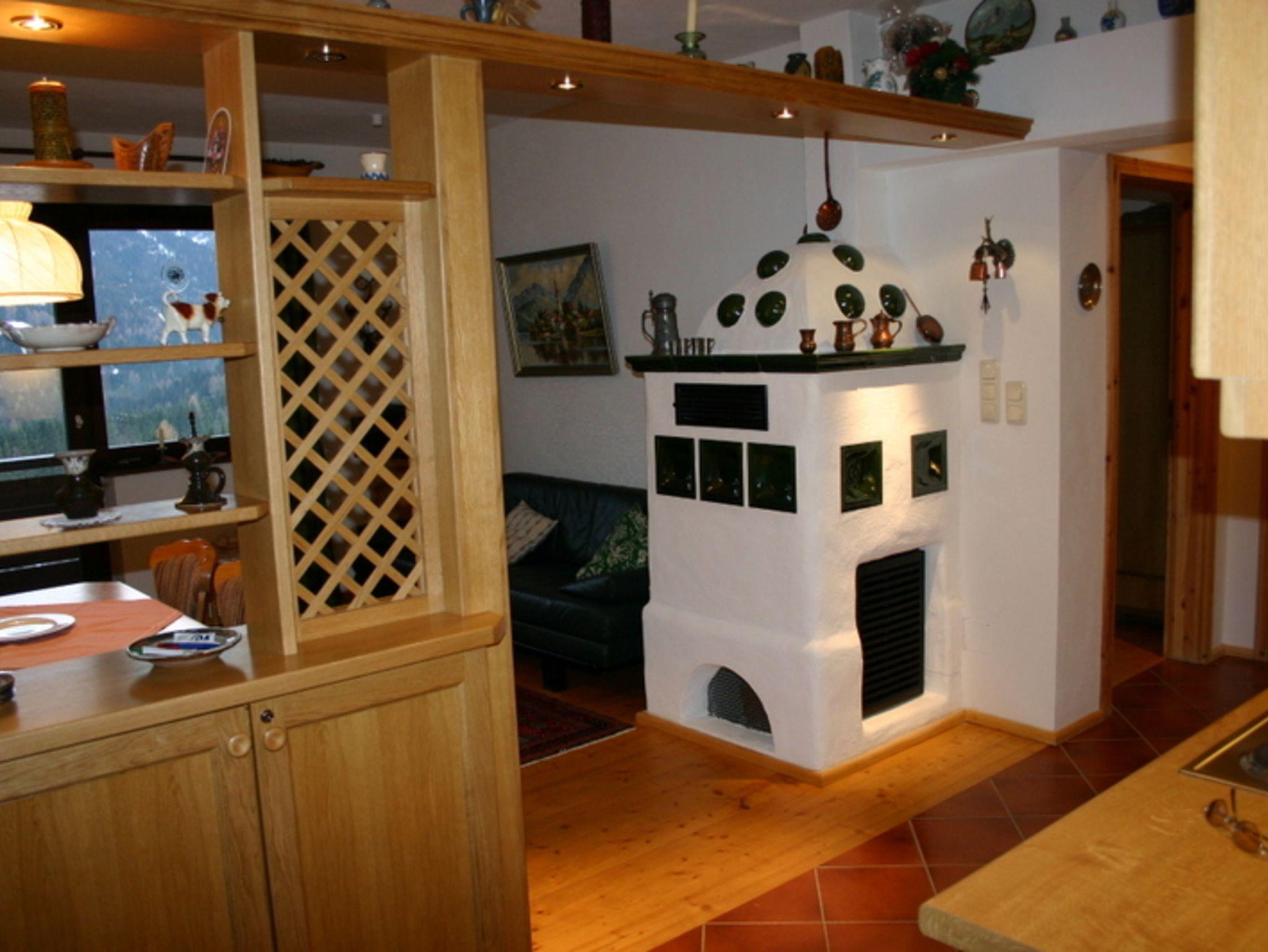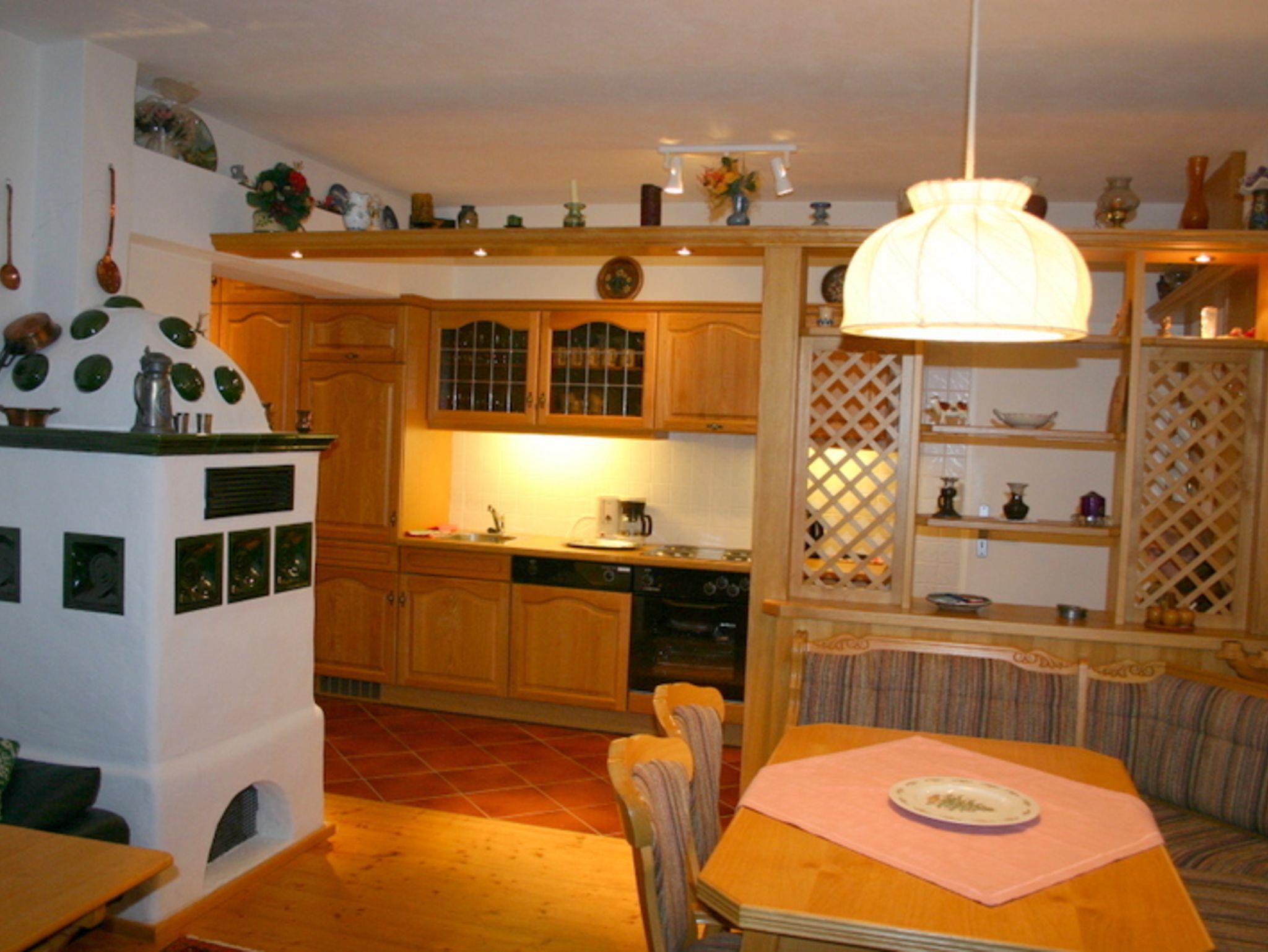 Die Wohnung verfügt über Wohnzimmer mit Kachelofen, Küchenzeile mit 4 Sterne-Kühlschrank, Geschirrspüler, Herd, Kaffeemaschine, Toaster, SAT-TV, Radio, Doppelschlafcouch, Schlafzimmer mit Doppelbett und Einzelbett, Bad mit Wanne und WC, Fußbodenheizung im Fliesenbereich, Holzklappläden und einem riesigen Südost-/Südwestbalkon.