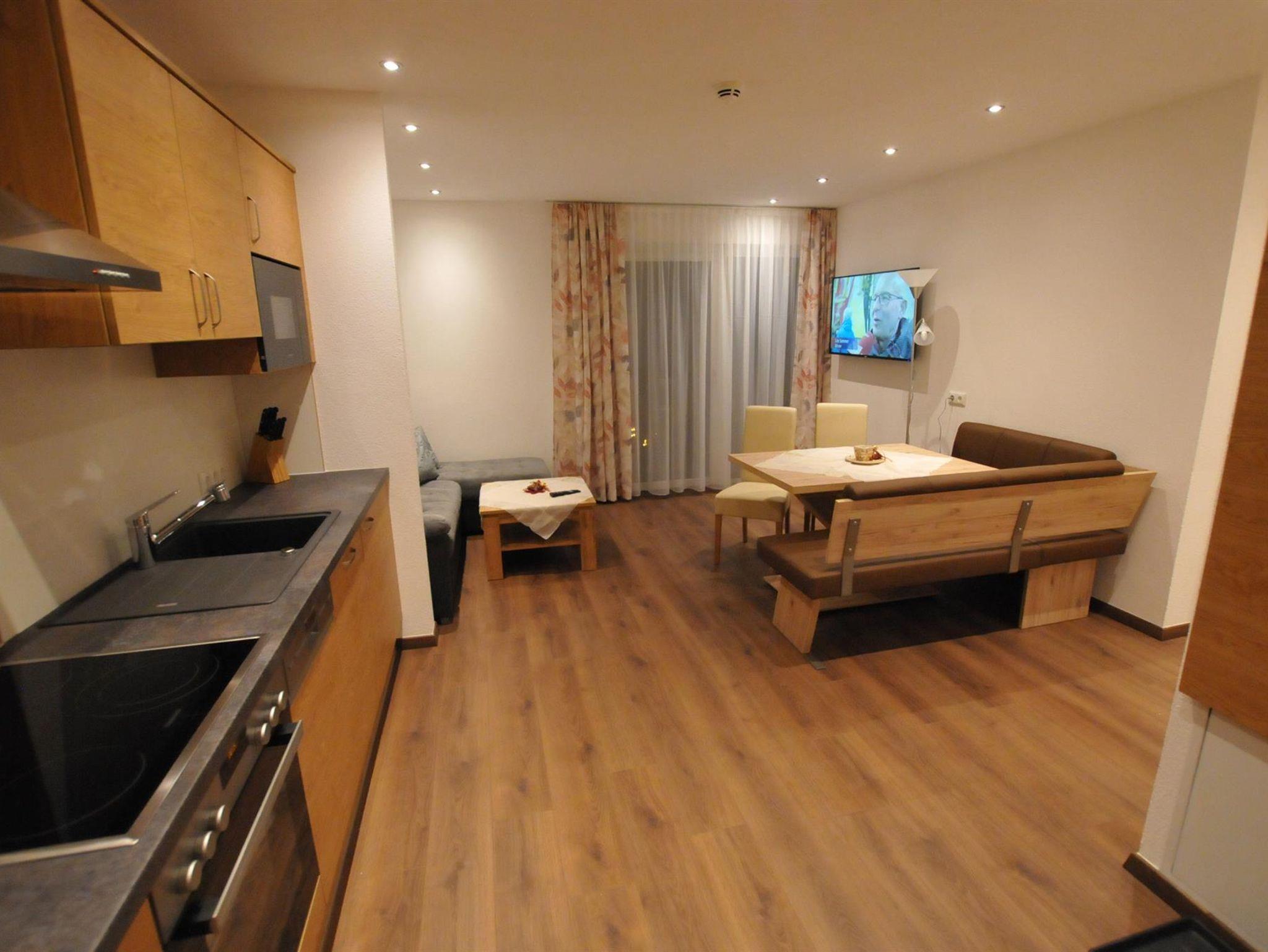 Das Appartement besteht aus 2 getrennten Schafzimmern mit Boxspringbetten, Dusche / WC, Küche mit Essbereich (Tisch mit Bank und Stühlen), Wohnbereich mit Couch und Flat-TV, kostenloses W-LAN und Balkon.