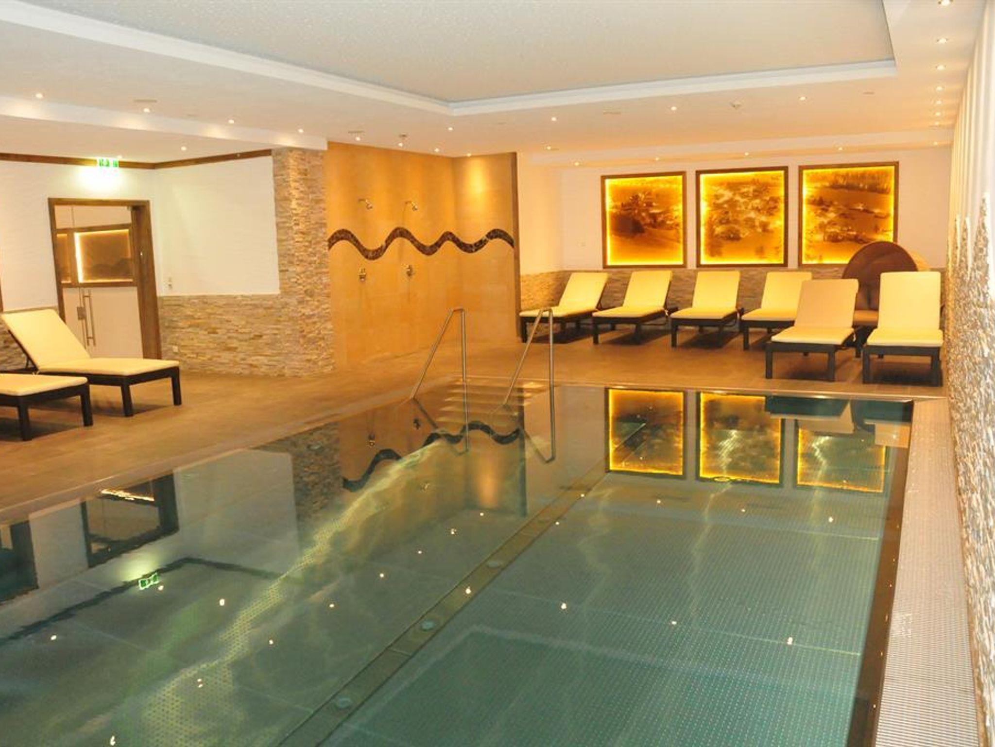 Genießen Sie unseren modernen Wellnessbereich: Hallenbad, Saunen, Infrarot-Stühle, Relax-Pool, Ruheraum und einer Lounge
