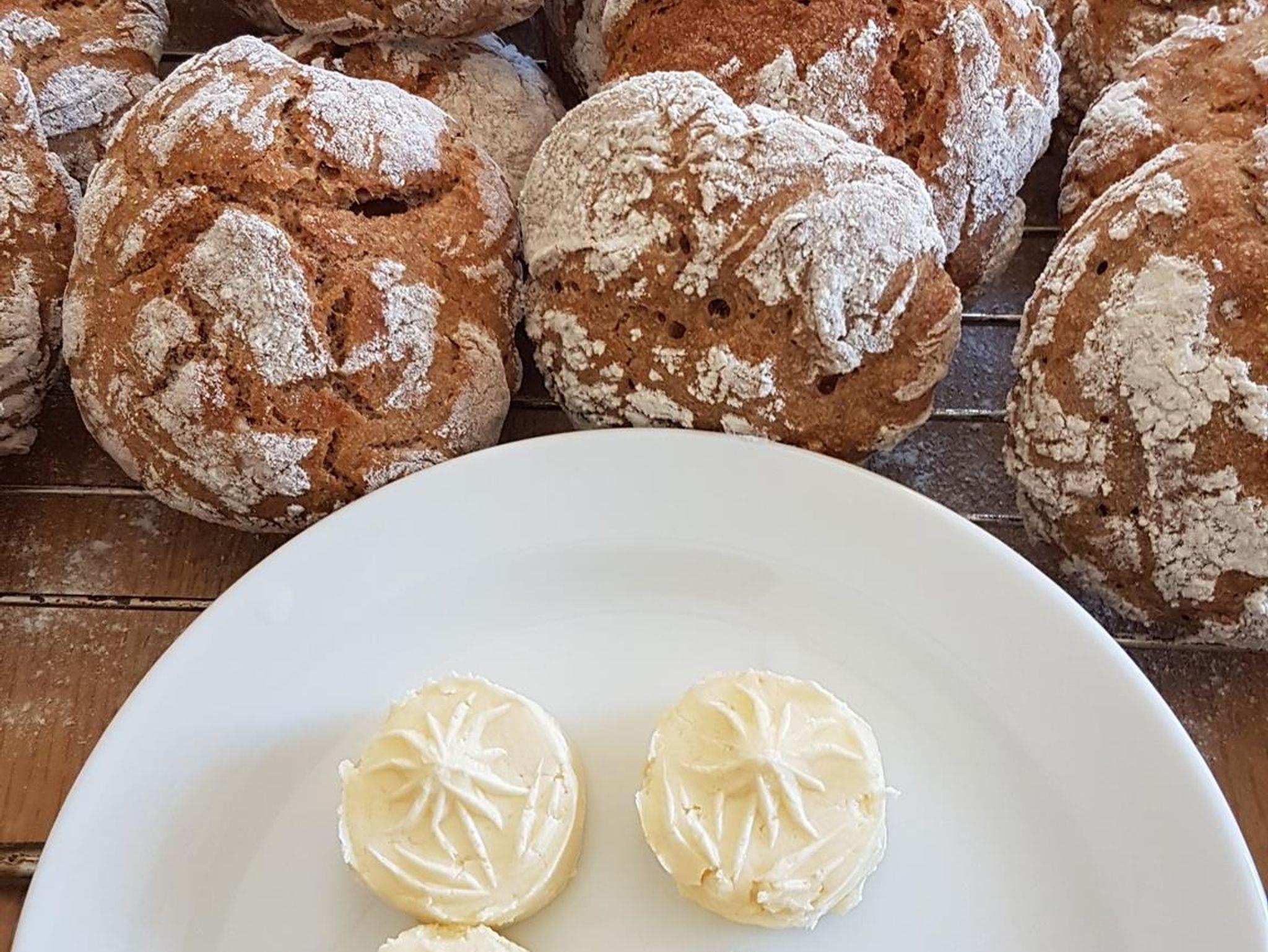 Frühstücksbuffet mit viel selbstgemachten Produkten aus eigener Erzeugung w.z.b.Marmelade,Butter,Brot genießen Sie in unsere alten Bauernstube,die sich auch gut eignet für gemütlichen Stunden.