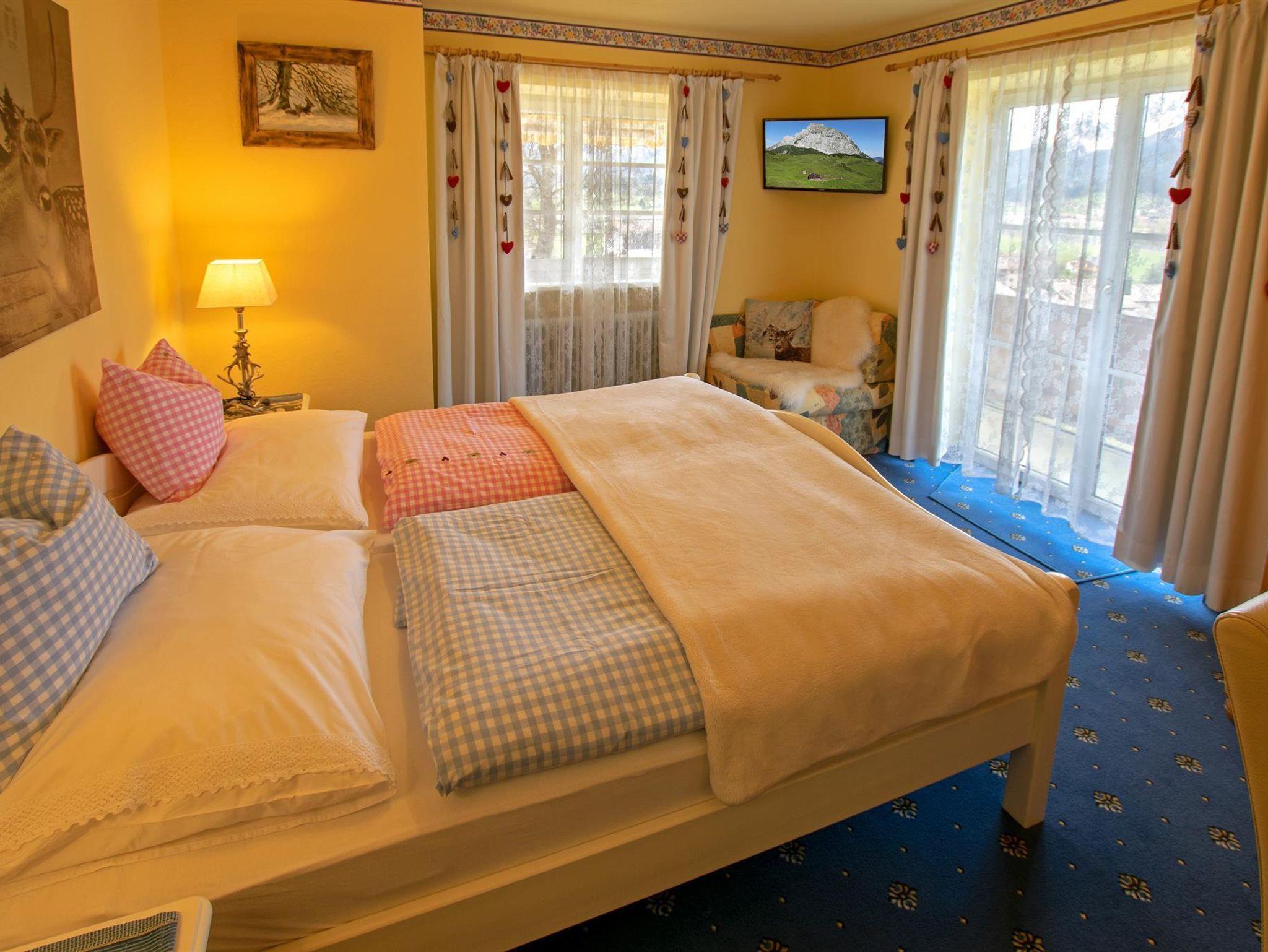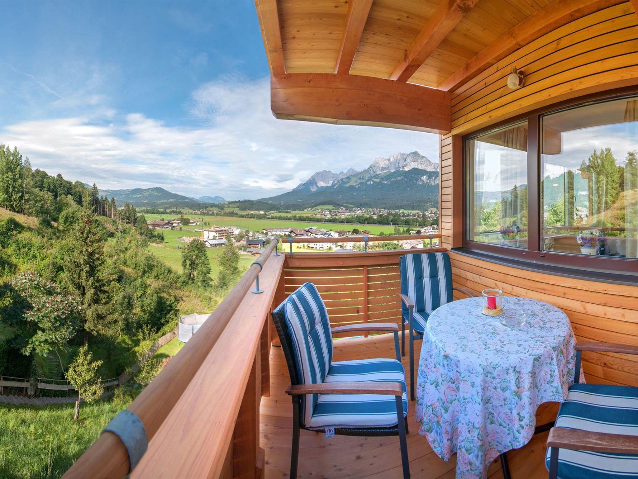 Das neu renovierte, sonnseitig ausgerichtete Ein-Zimmer Appartement „Sport“ für 2 Erwachsene und 2 Kinder verfügt über eine abgegrenzte Küche mit großer Sitzecke und einen überdachten Südbalkon mit Morgensonne. Der Wohn-/Schlafraum mit wunderbarem Kaiserblick erfüllt Urlaubsträume.