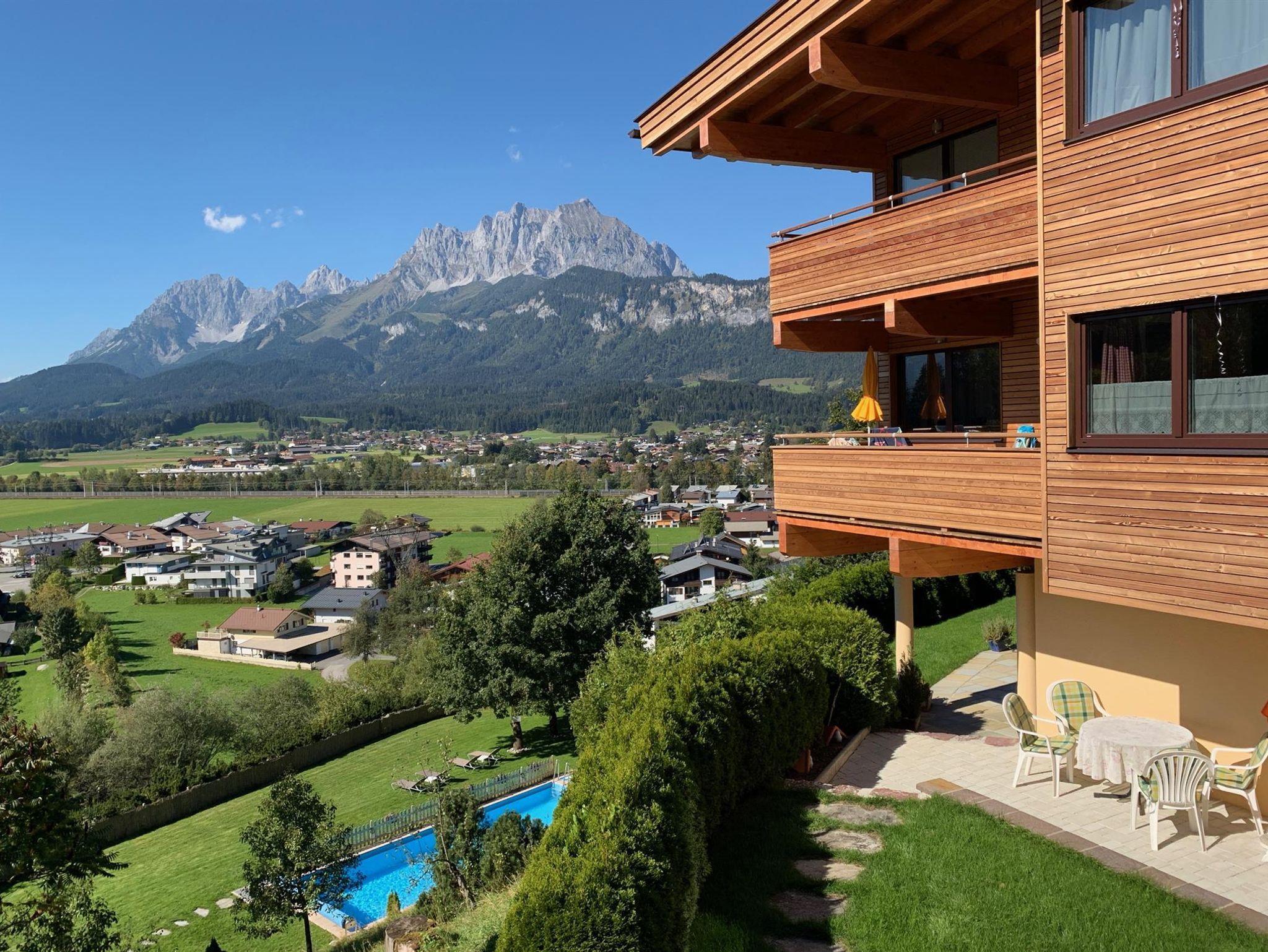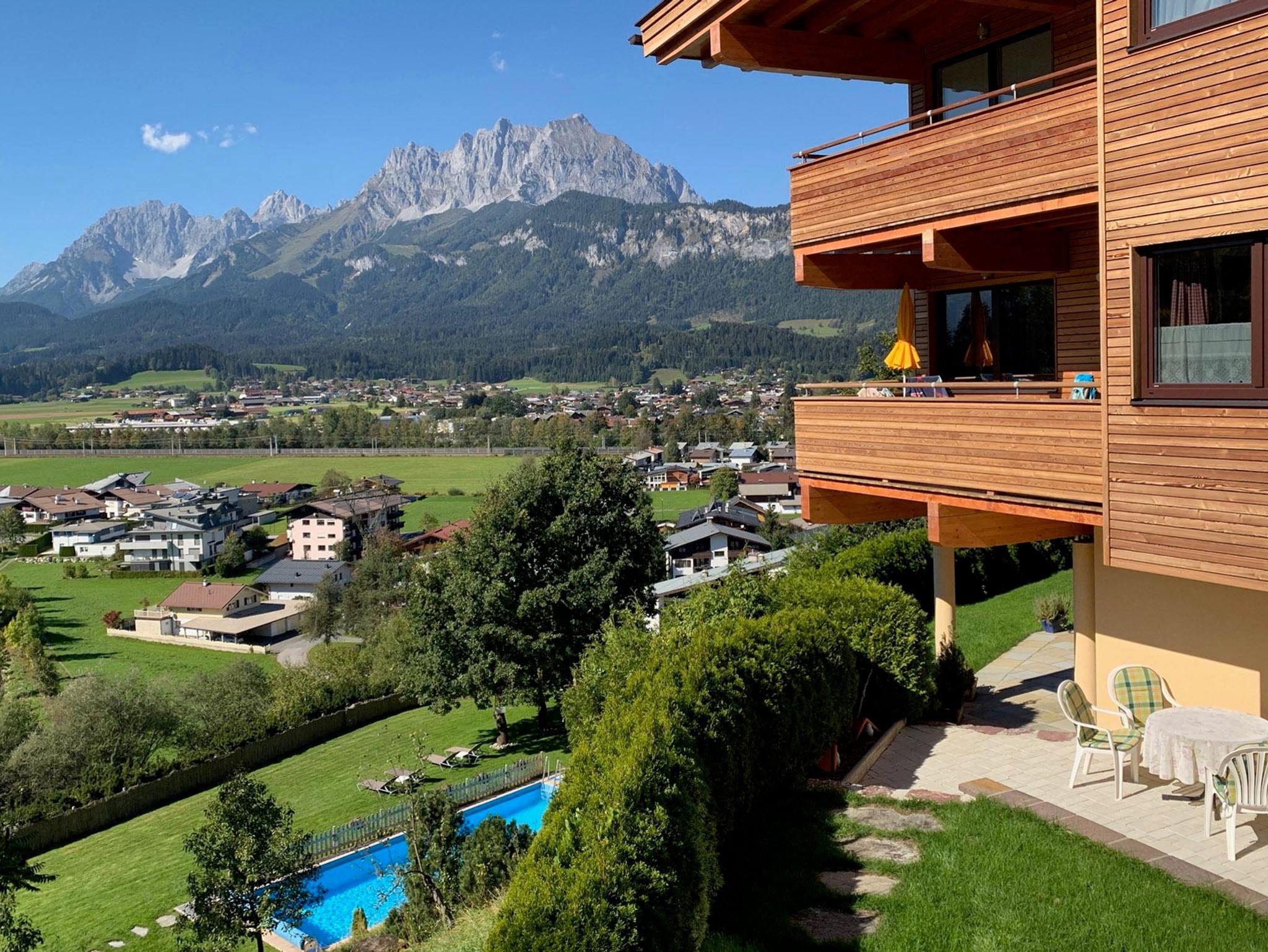 Aparthotel Sonnleitn – Traumlage in den Kitzbüheler Alpen! Am Hang des Kitzbüheler Horns mit schönster Aussicht zum Wilden Kaiser befindet sich in ruhiger Südwesthanglage – ca. 30 Meter über St.Johann das „Sonnleitn“.