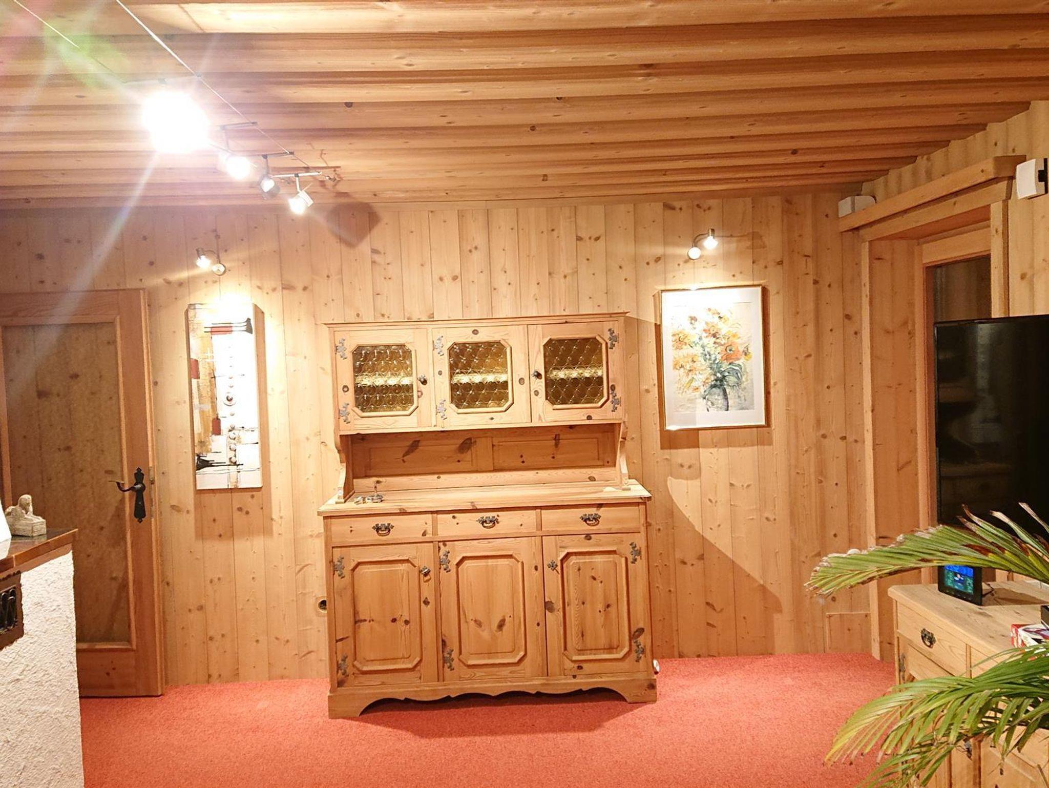 Geräumiges Chalet für max. 10 Pers., 4 Schlafzimmer sowie 2 Wohn-Schlafräume. Südseitiger Garten, Grillmöglichkeit, überdachter Veranda mit Sitzecke, Durchreiche zur Küche. Badezimmer mit Doppelwaschtisch, Handtuchtrockner, Dusche, sep. WC. Küche mit Sitzecke, Geschirrspüler, Cerankochfeld, Mikrowelle, Backofen, Kühlschrank mit Tiefkühlfach. Das Haus ist mit einer Wohnraumlüftung ausgestattet. Abstellplatz für Ski, Fahrräder, Koffer. Überdachter Parkplatz vor dem Chalet.
