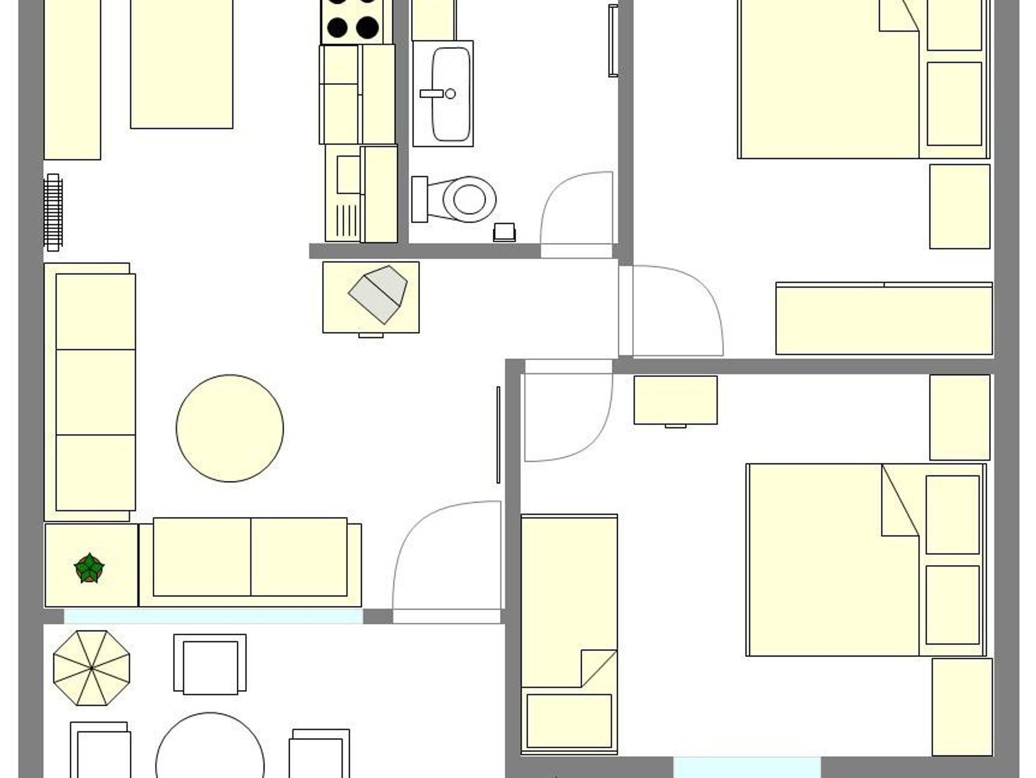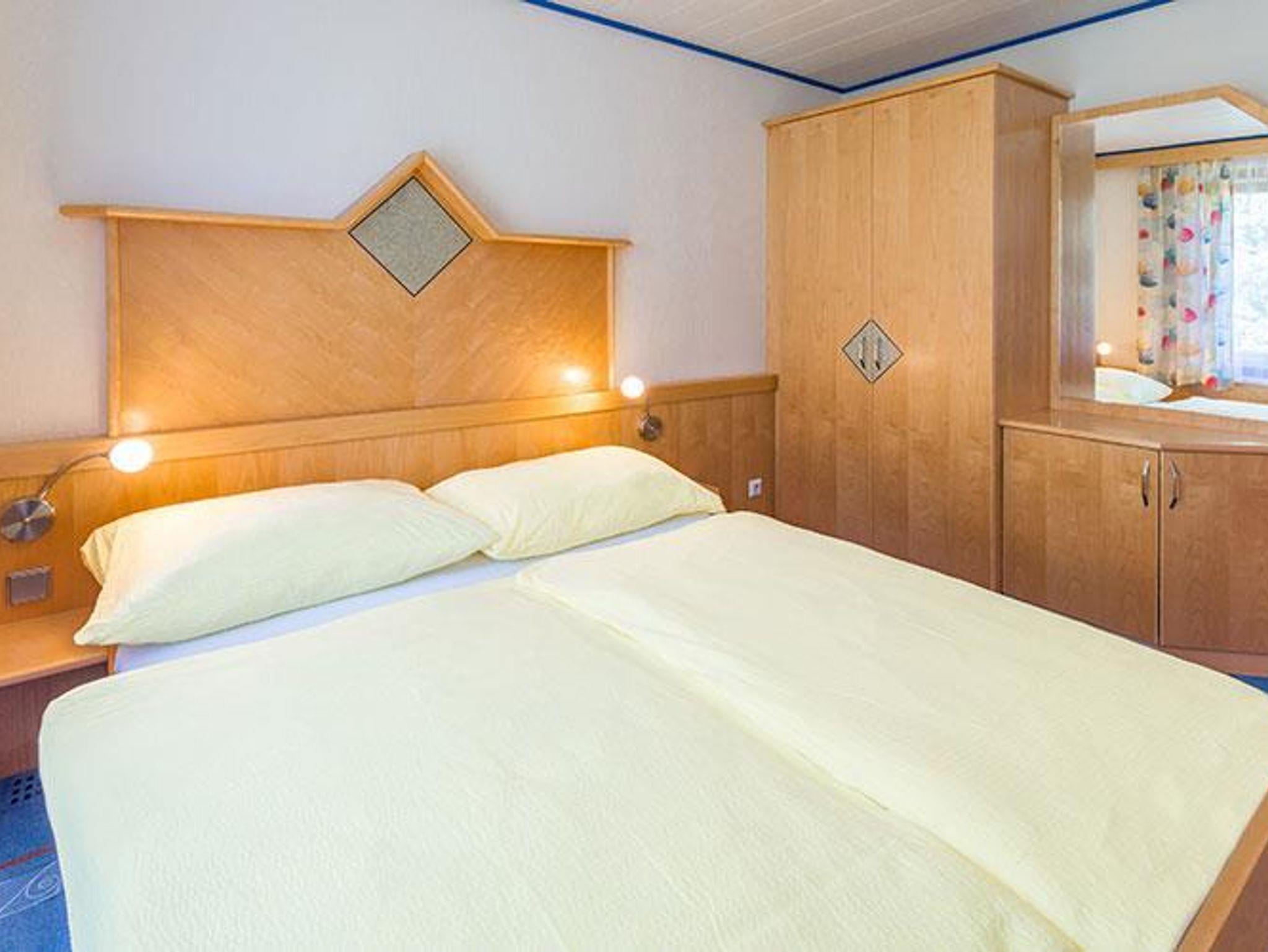 Ausstattung: Zwei getrennte Schlafzimmer mit zwei und drei Betten und Granit- bzw. Marmorböden, großes Wohnzimmer mit Schlafgelegenheit, Küche, Bad, WC, Terrasse mit Gartenmöbel und Sonnenschirm. Komplett ausgestatteter Haushalt mit Farb-SAT-TV, gratis Internetzugang, E-Herd, Backrohr, Mikrowelle, Kühl-Gefrierkombination, Kaffeemaschine, eigener Holzkohlengrill, E-Heizung. Kinderbetten und Hochstühle sind auf Wunsch kostenlos erhältlich. Zum Bungalow gehört ein eigener versperrbarer und überdachter Fahrradabstellplatz mit Lademöglichkeiten für E-Bikes.