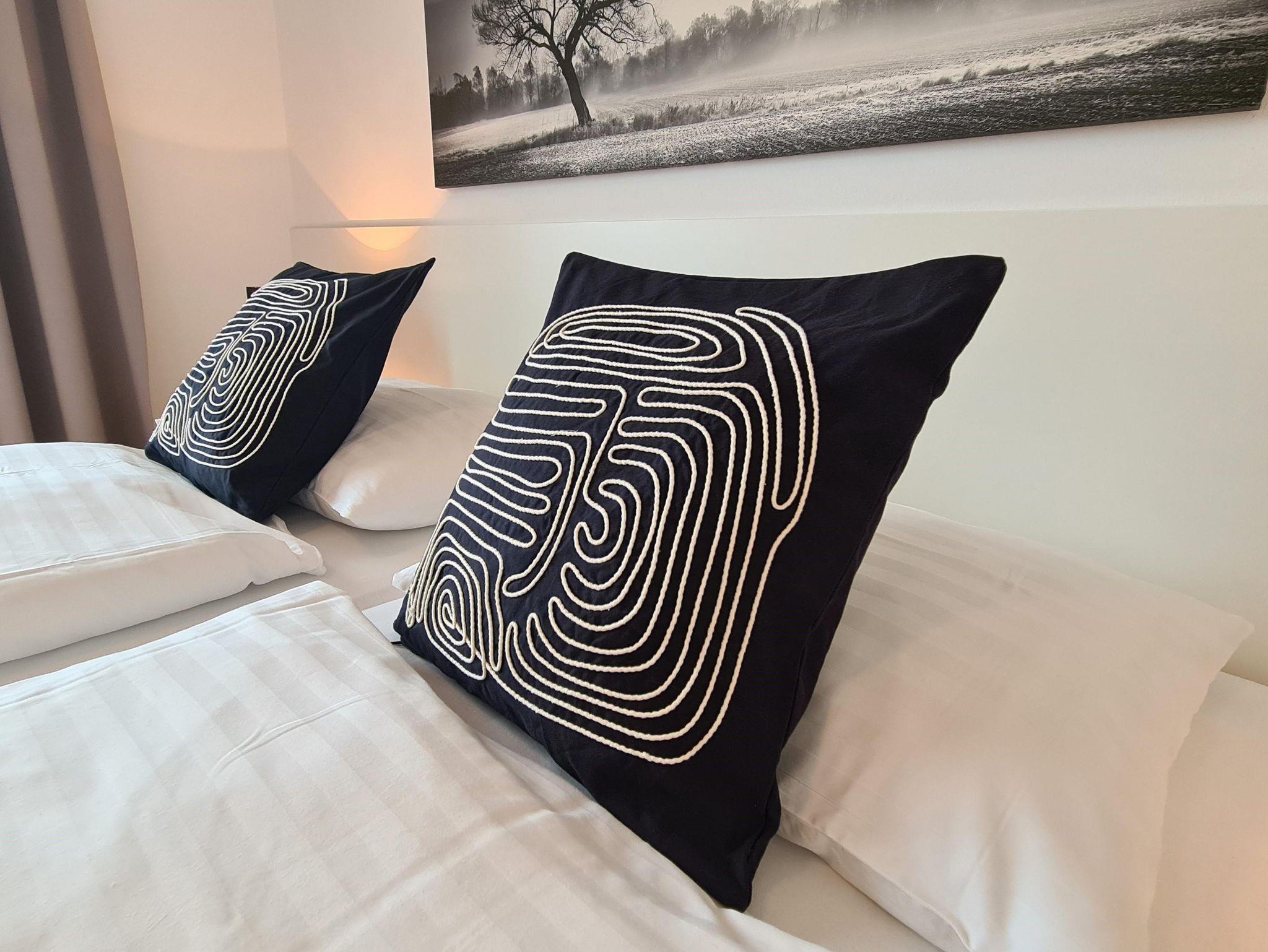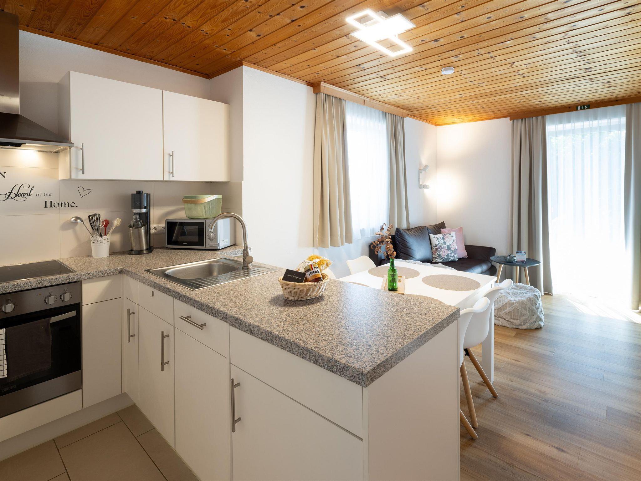 Die Wohnungen bestehen aus einem Vorraum, zwei Doppelzimmer, Badezimmer/WC,Fön, einem Wohnzimmer mit ausziehbarer Couchgarnitur, Esstisch, LCD-TV mit Musikkanal, Internet über W-LAN, komplett ausgestatteter Küche mit Mikrowelle, Geschirrspüler, Backofen, Kaffeemaschine, Sodastream uvm. sowie einen großen Balkon mit Terrassenmöbel. Bett- u. Tischwäsche, Geschirr- u. Handtücher werden bereitgestellt. Auf Wunsch Zustellbett, Kinderbett (Gitterbett) und Hochstuhl. Waschservice gegen Gebühr im Haus.