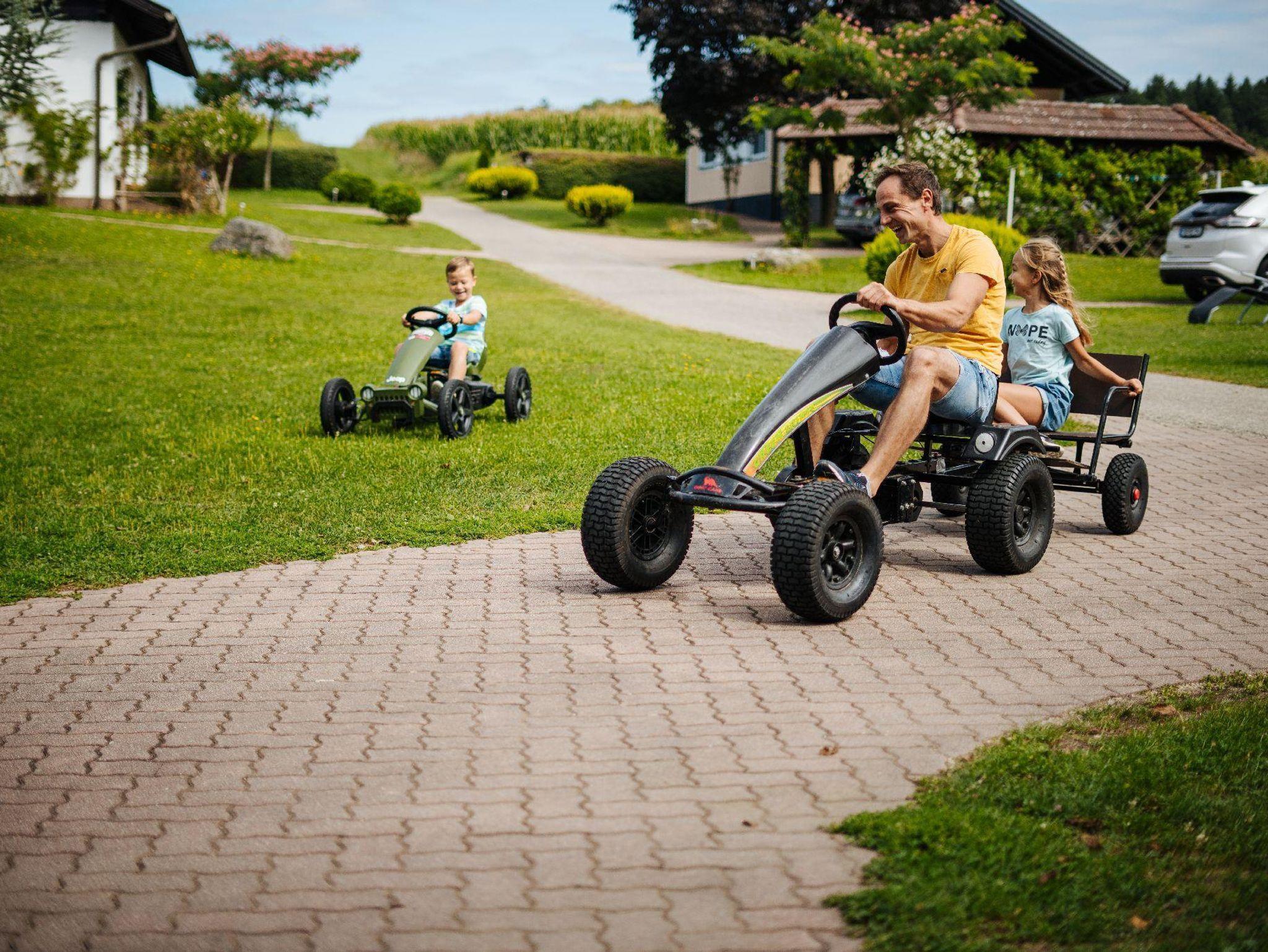 Genießen Sie auf unserem riesigen Hof-Areal die Ruhe, während sich die Kids bei den Streicheltieren oder am großen Spielplatz austoben.