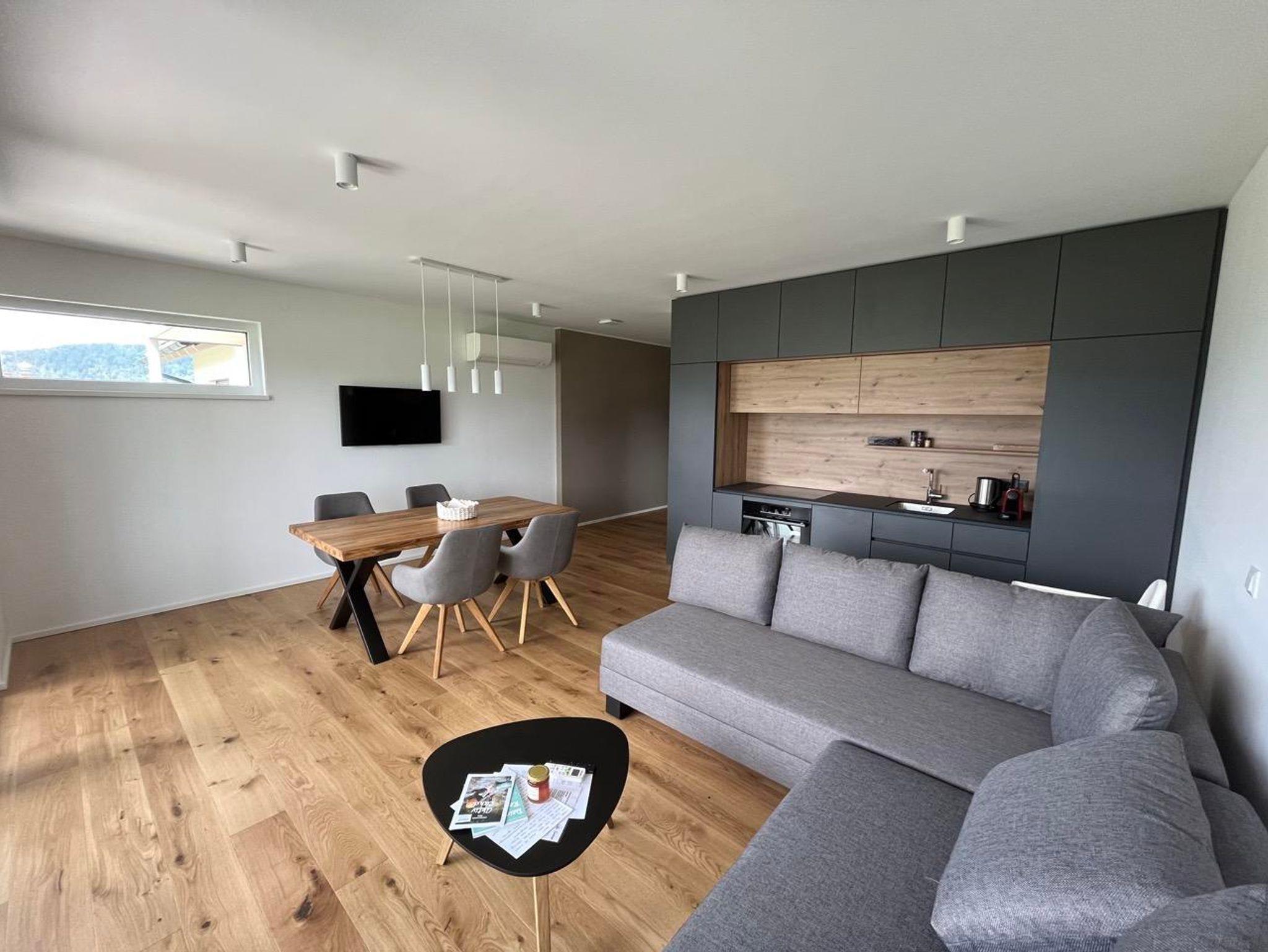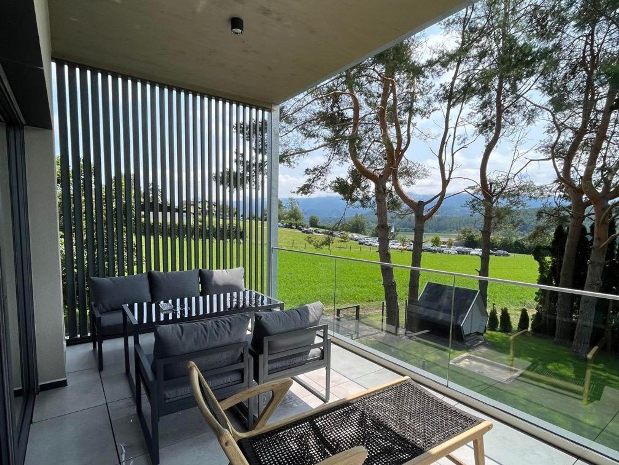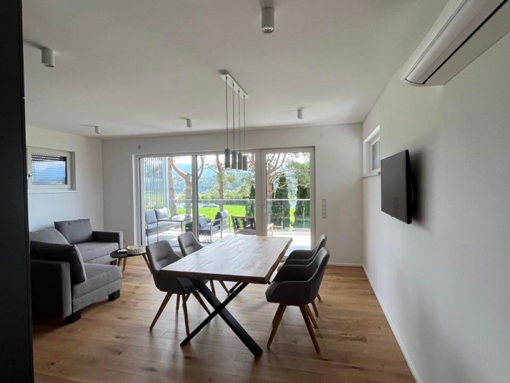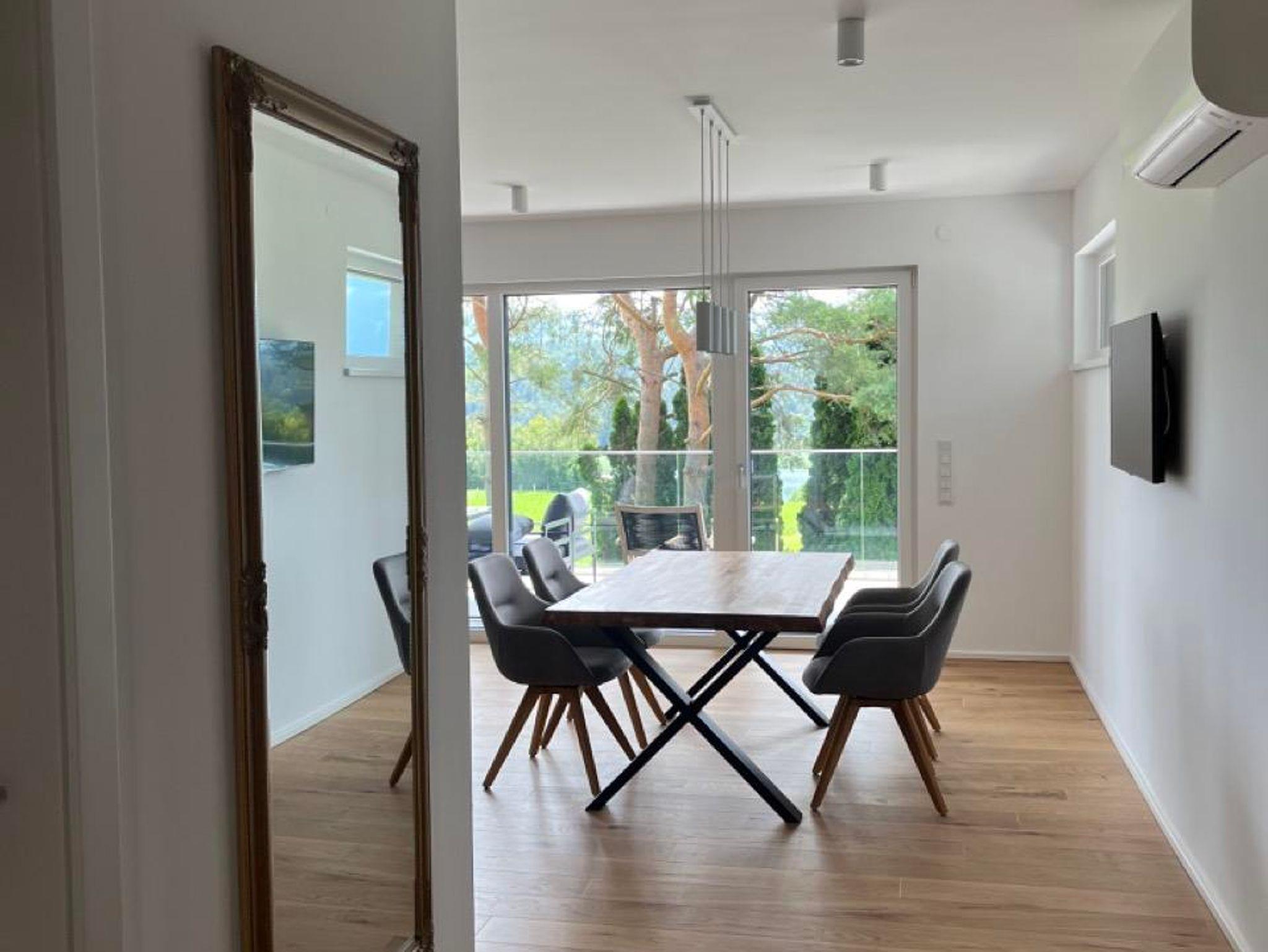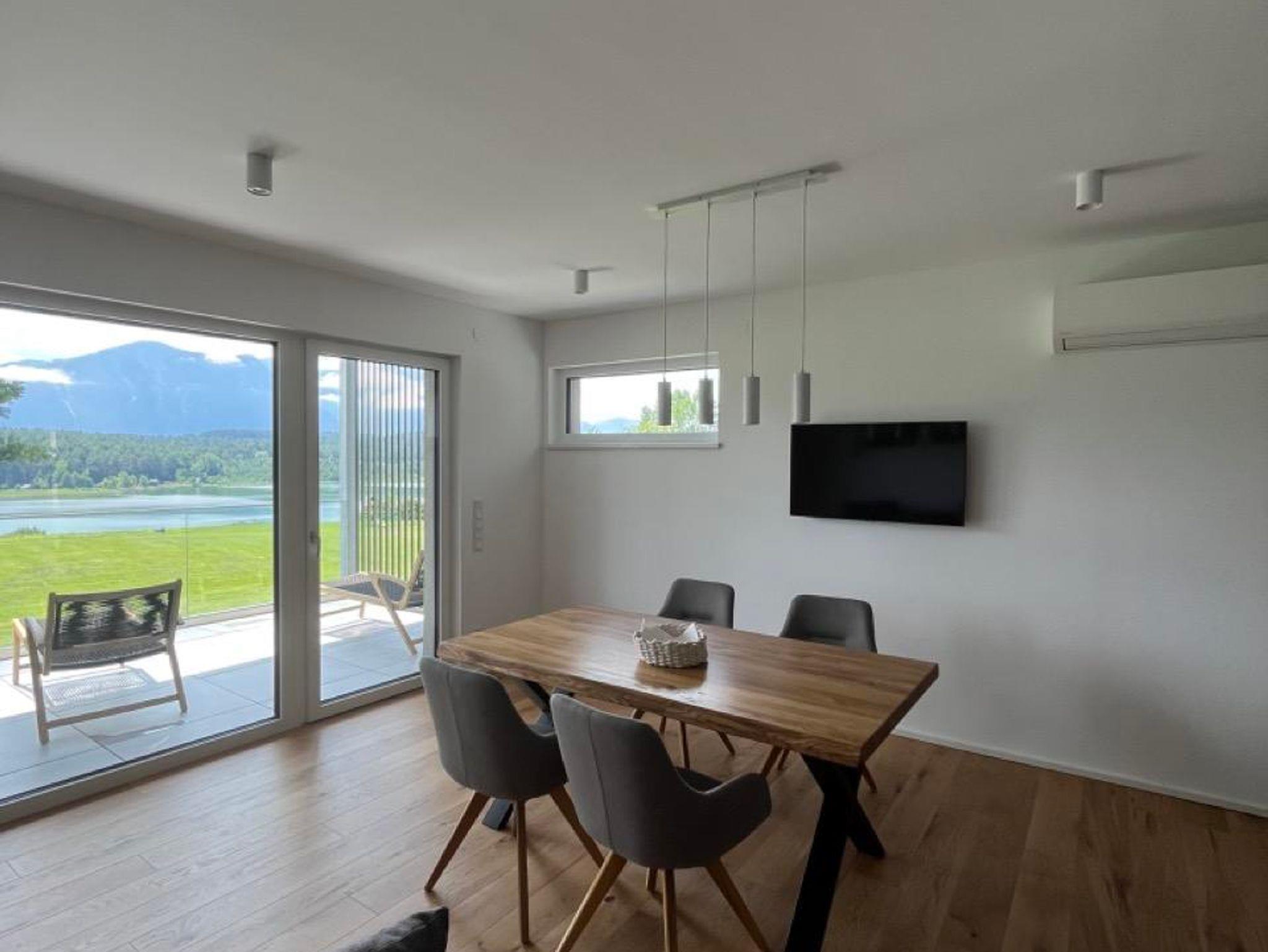 Das Appartement 4 befindet sich im 1. Stock, ist 55m2 groß und verfügt über eine 20m2 große überdachte Terrasse mit Blick auf den See. Die Terrasse ist mit Gartenmöbeln ausgestattet und lädt zum Verweilen, mit Aussicht auf die Karawanken, ein.