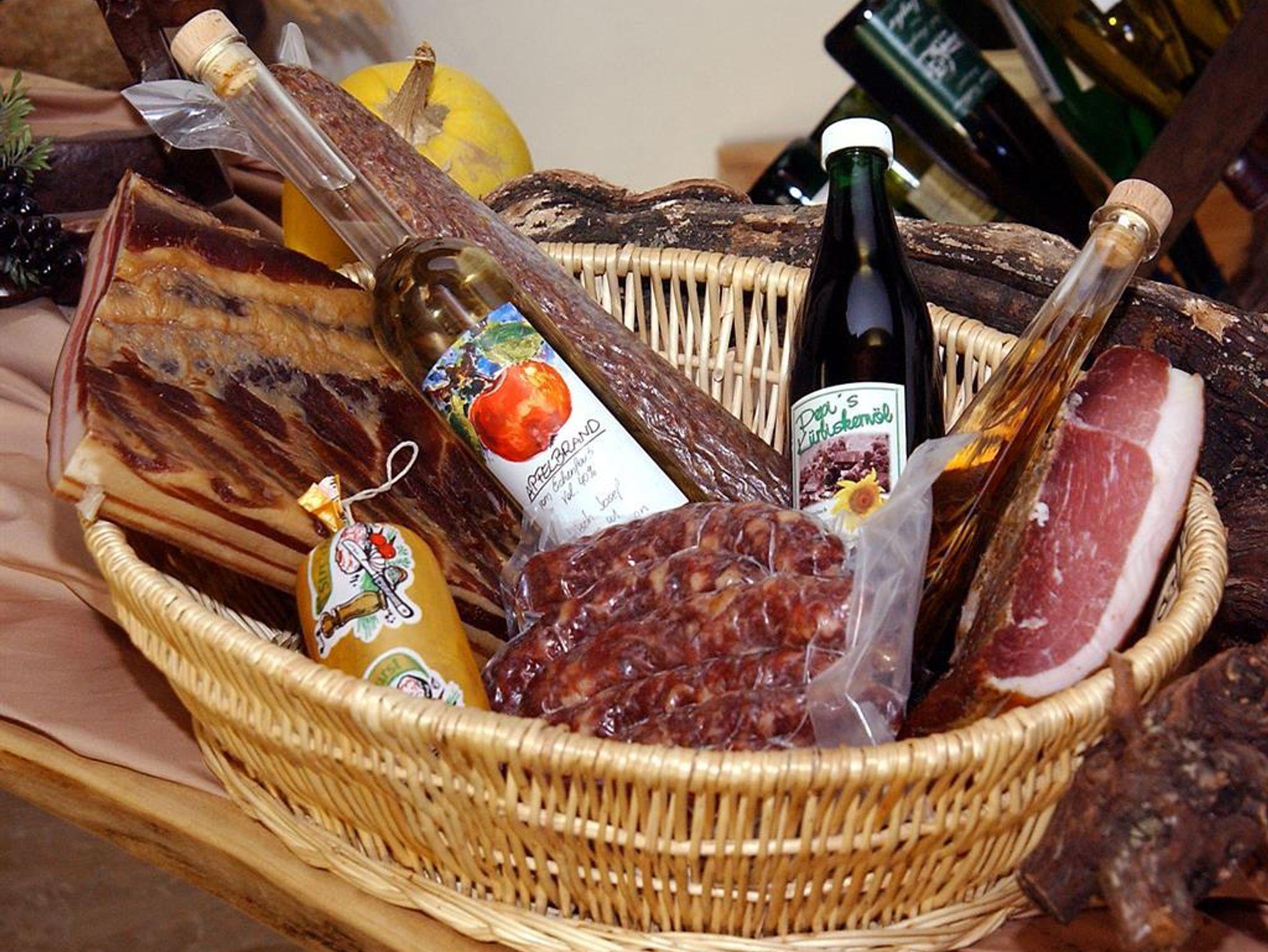 Unsere Halbpension besteht aus einem reichhaltigen Frühstücksbuffet, einem Mittagsimbiss und einem 4-gängigen Abendmenü. Außerdem gibt es in der Hauptsaison wöchentlich einen Grillabend. Durch die eigene Landwirtschaft können wir sehr viel selbst produzieren ( Salami, Speck, Apfelsaft, Most, Schnäpse........).