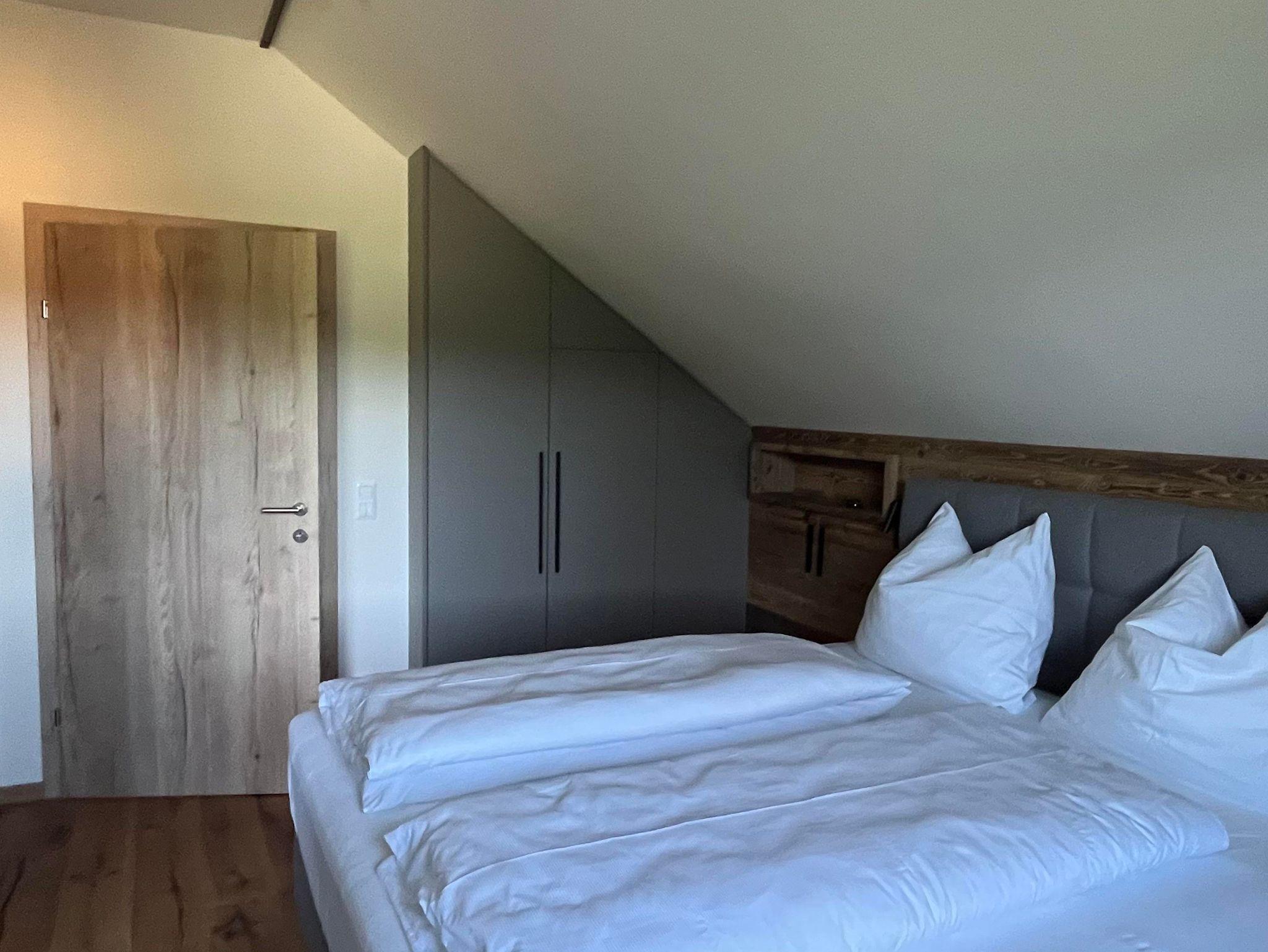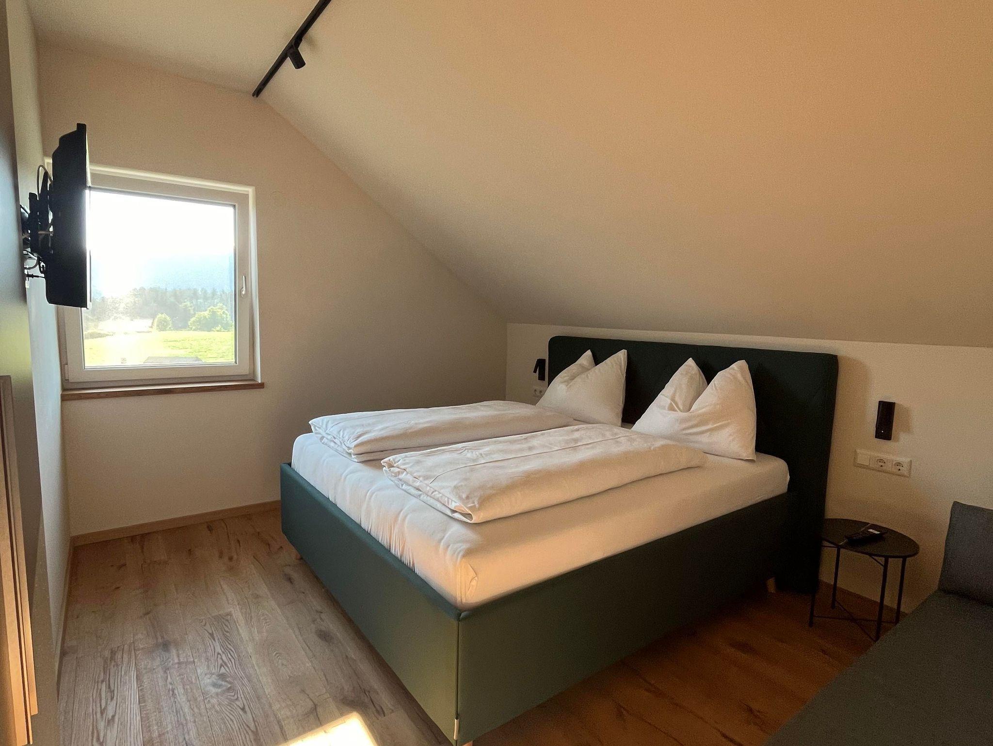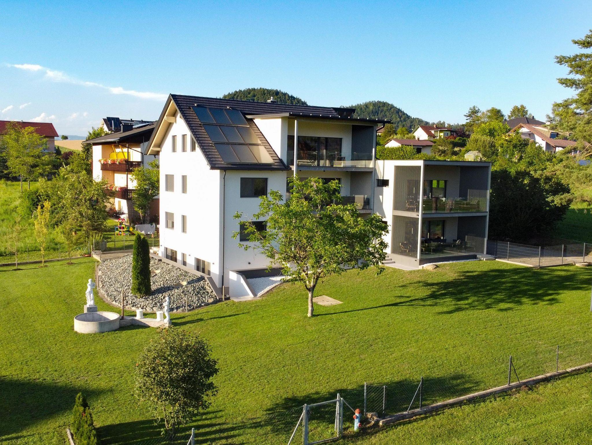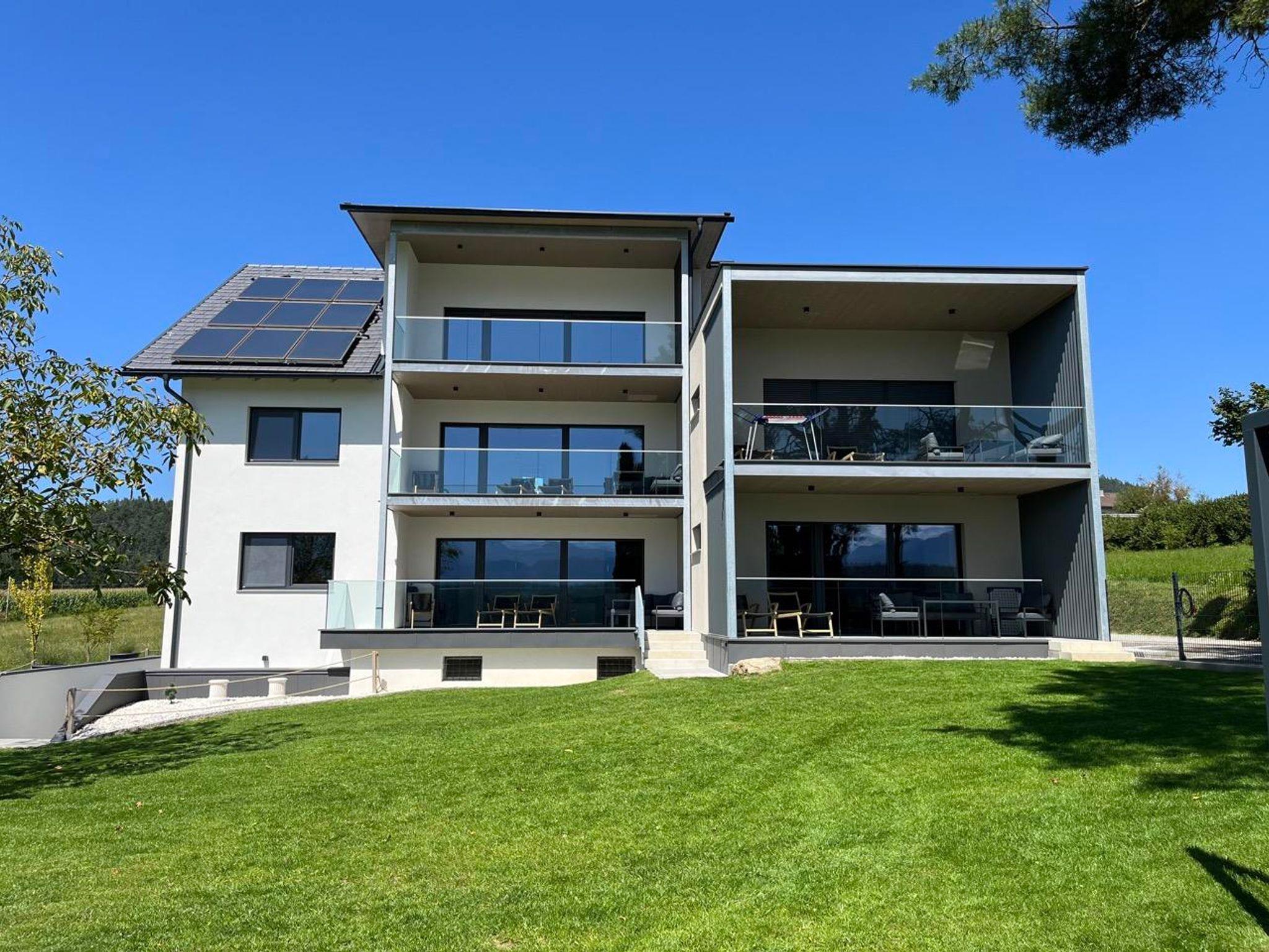 Das Penthouse-Appartement befindet sich im 2. Stock, ist 85 m² groß, verfügt über eine 20 m² große überdachte Terrasse mit Blick auf den See und ist das Highlight unseres Hauses. Die Terrasse ist mit Gartenmöbeln ausgestattet und lädt zum Verweilen, mit Aussicht auf die Karawanken, ein.