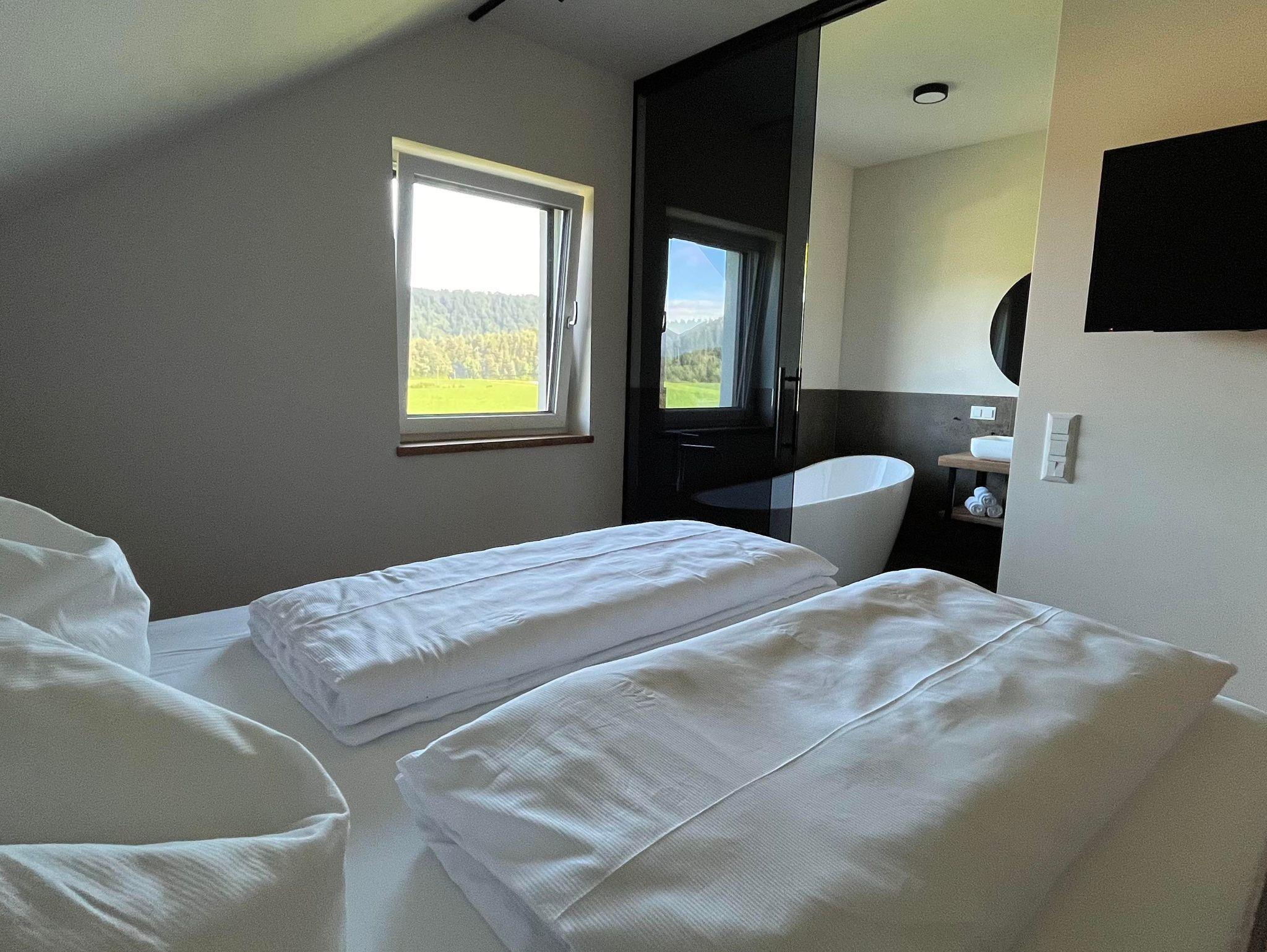 Das Appartement verfügt über zwei helle und komfortablen Doppelzimmer, ein gemütliches Einzelzimmer, über zwei Bäder und 2 WCs. Ein Highlight in diesem Appartement ist, neben dem Ausblick, die freistehende Badewanne im Badezimmer. Für die kleinen Gäste ist es möglich ein Gitterbett und einen Hochstuhl zu bekommen. Alle Fenster können mit elektrischer Jalousie abgedunkelt werden und weisen Insektengitter auf.