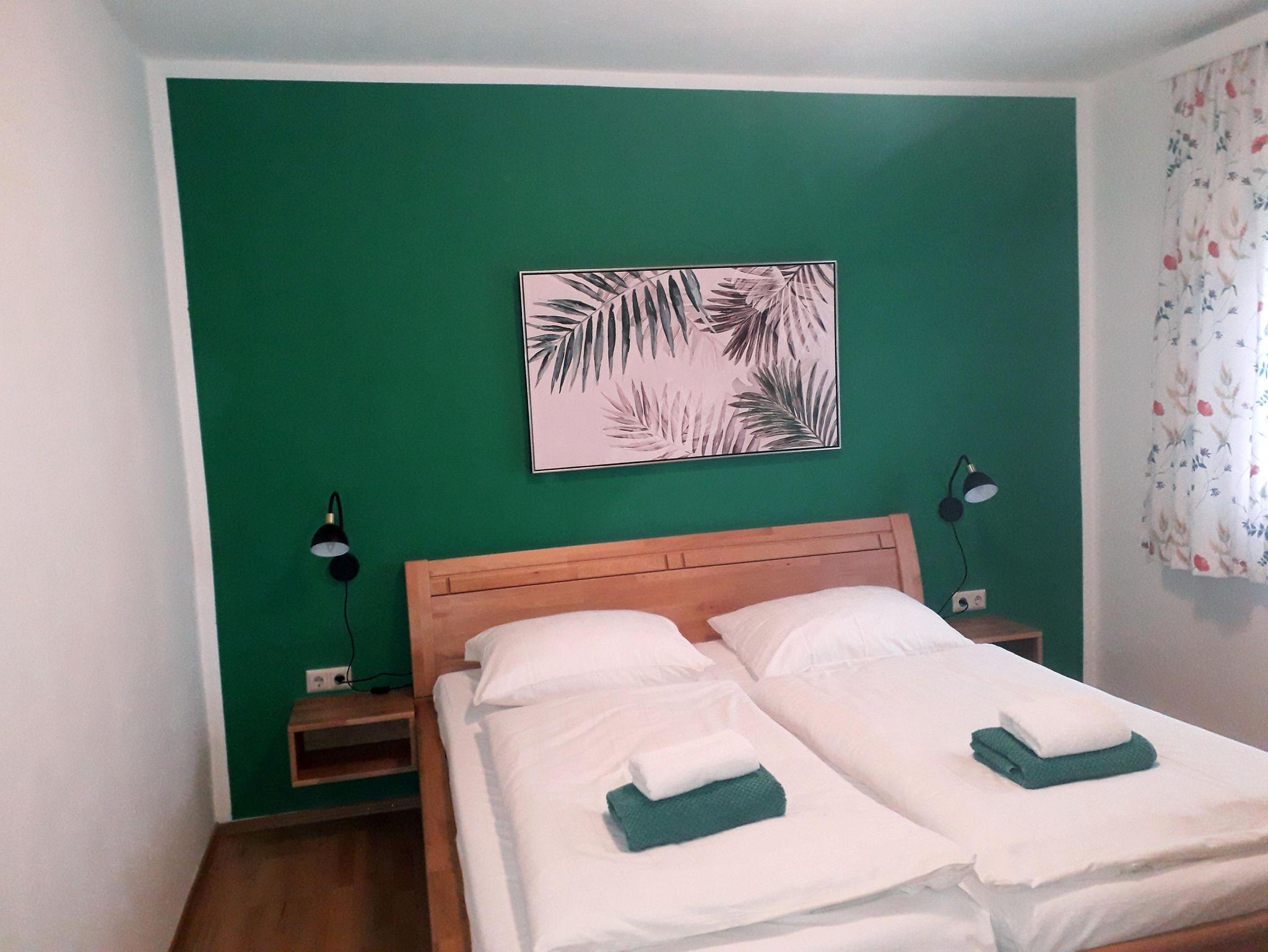 Unsere schöne gelbe Ferienwohnung mit 2 getrennten Schlafzimmer, moderner Wohnecke, Safe und neuer Küche mit Geschirrspüler, Backrohr erwartet Sie. Geniessen Sie Urlaub mit Seeblick! Herrliche Möglichkeit um Ihre Mahlzeiten direkt am Balkon einzunehmen mit wunderschönen Panoramablick. Großzügige Liegewiese direkt vor der Ferienwohnung. Schlafzimmer sind mit Rollos und Insektenschutzgitter ausgestattet. 2 Liegestühle und 1 Sonnenschirm sind in dieser Wohnung für Sie reserviert.