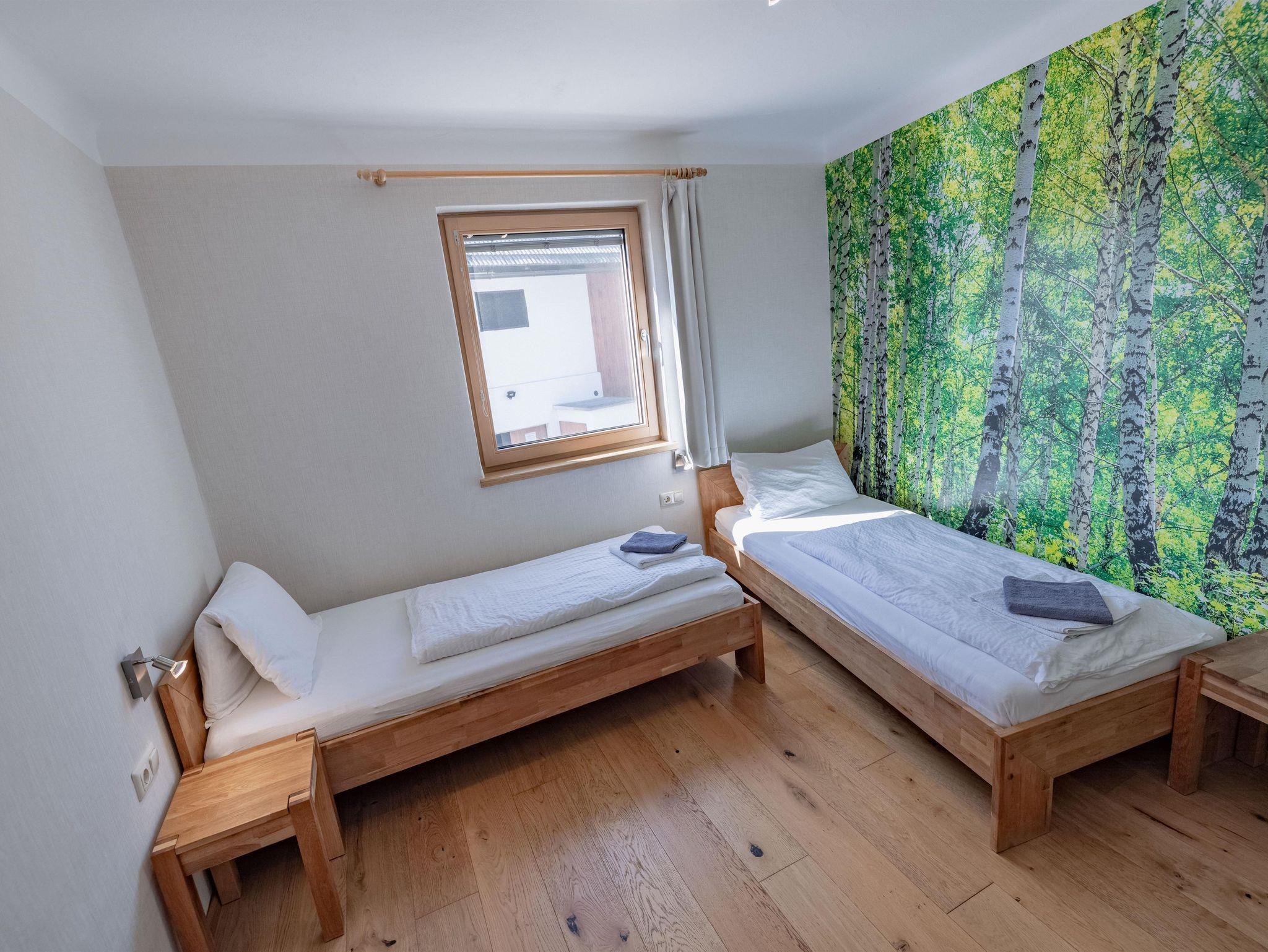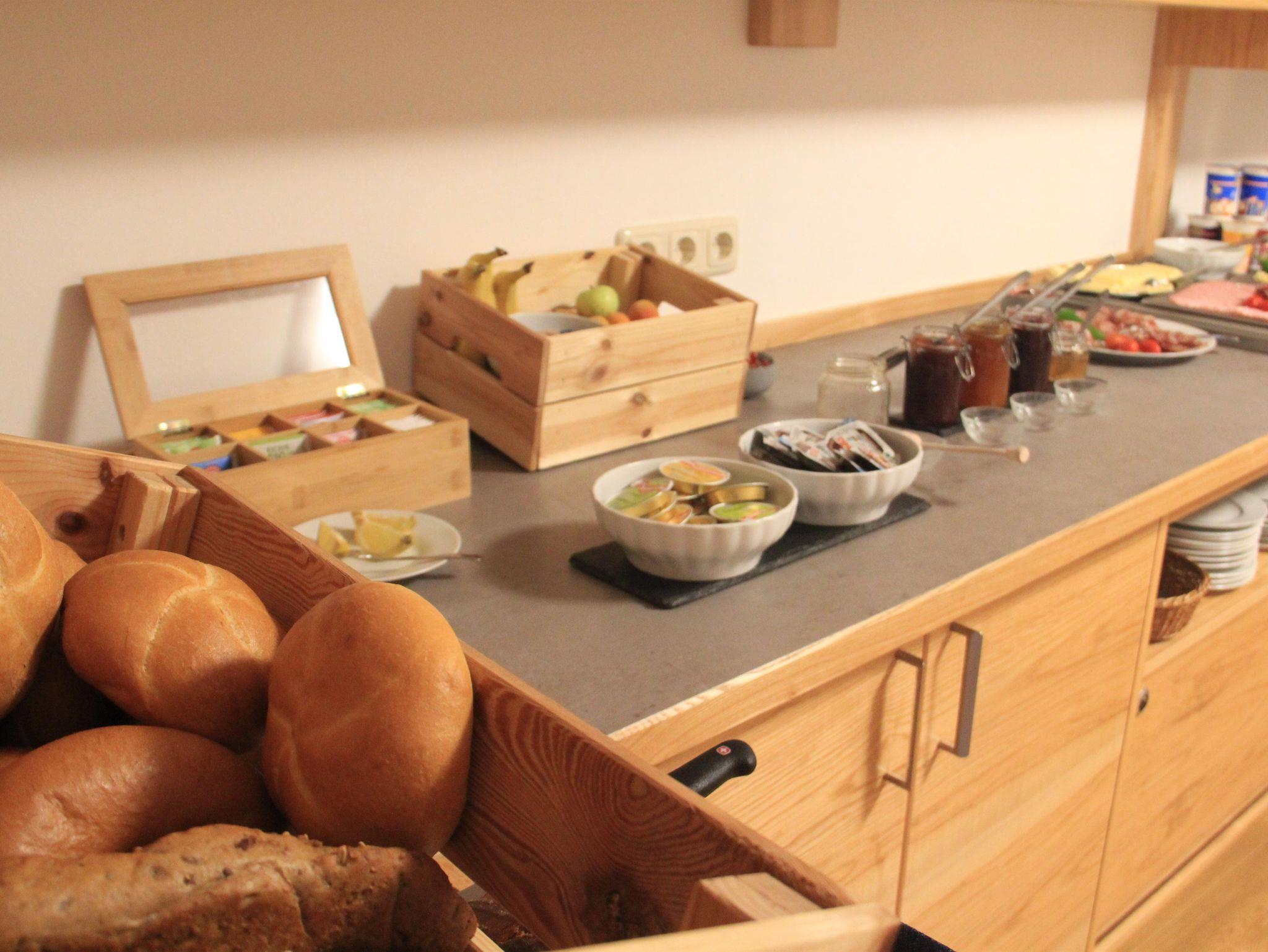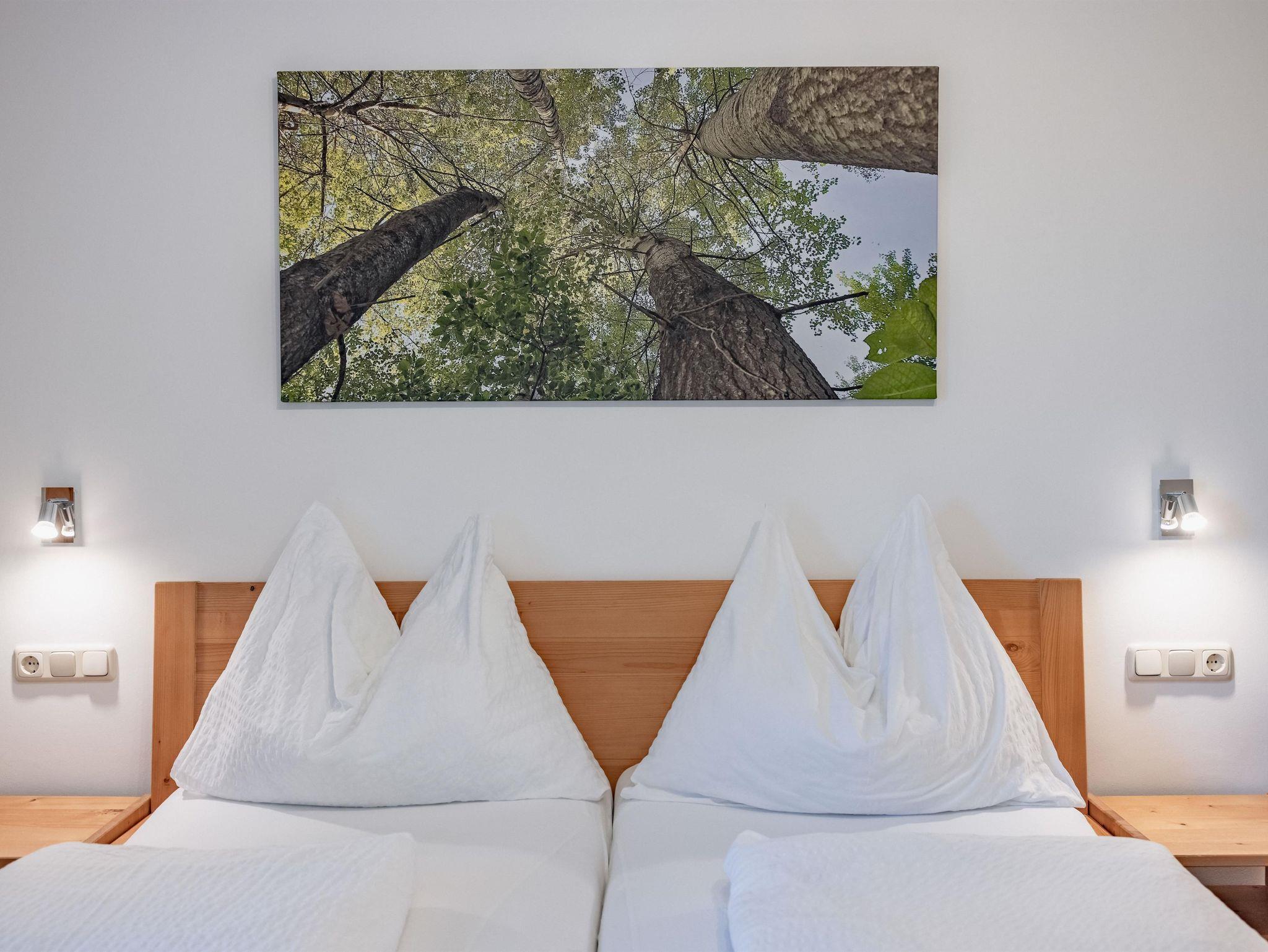 Gemütlich eingerichtetes Familienzimmer bestehend aus 2 Schlafräumen, DU/WC und Balkon nach Osten mit Ausblick in den Streuobstgarten.